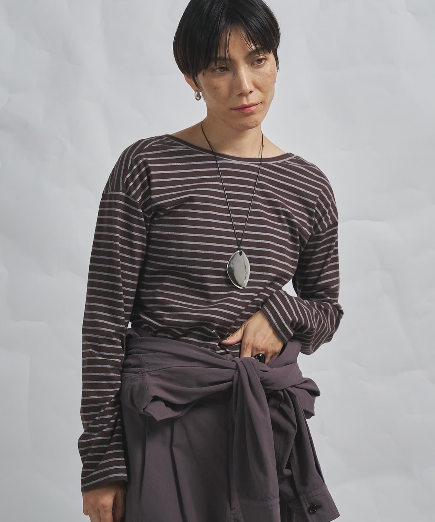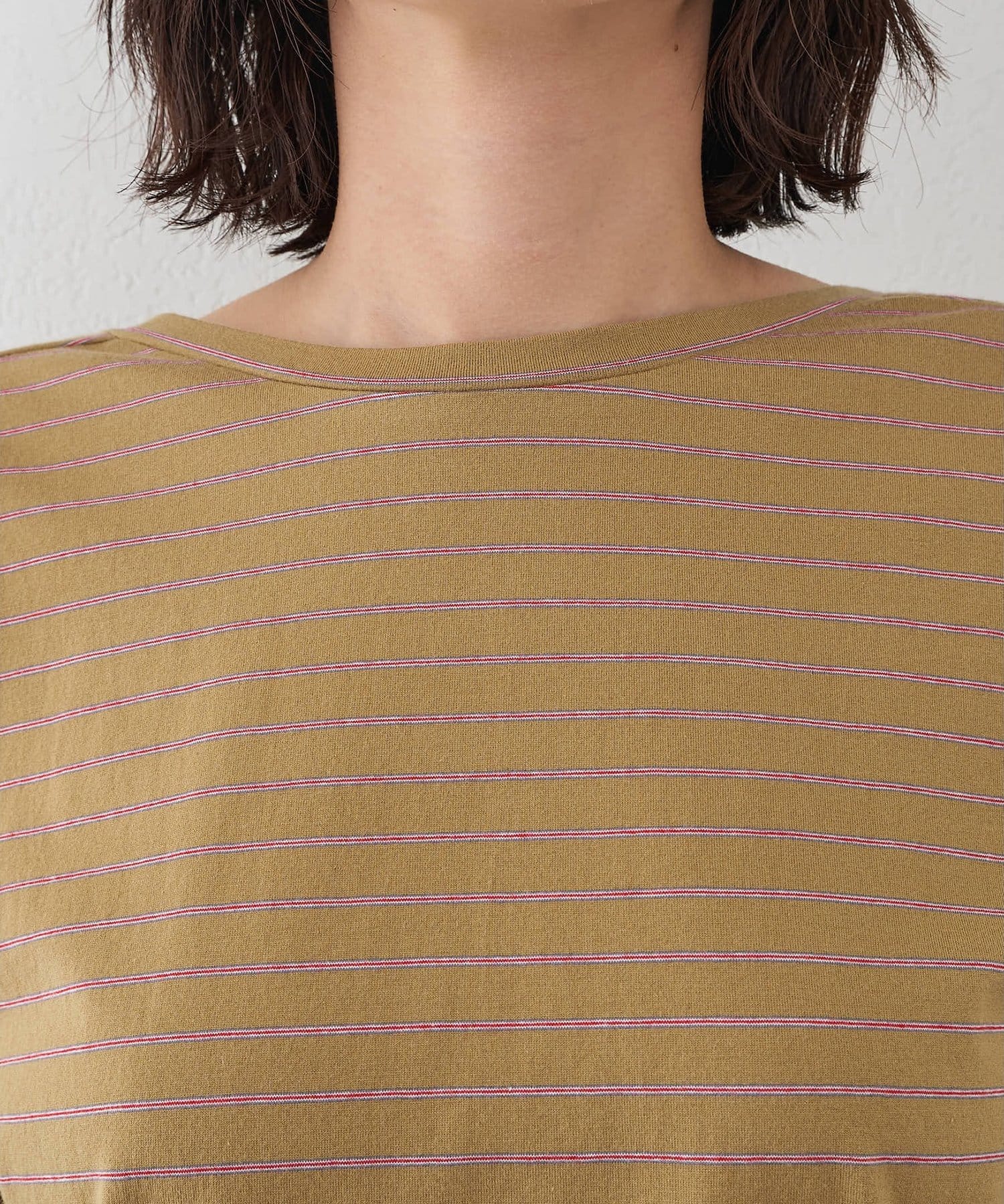 ■ブランドオリジナルで編み立てたハイゲージ天竺ボーダー素材を使用。