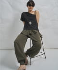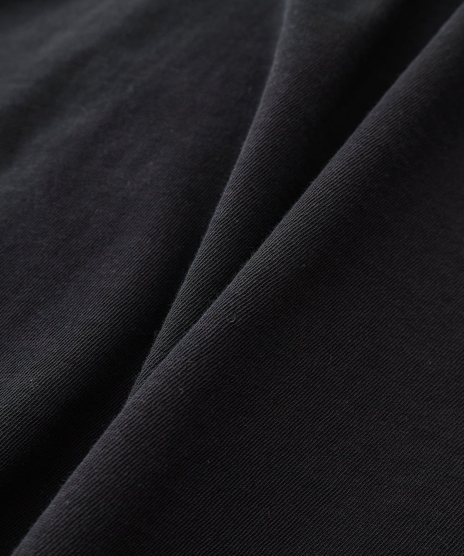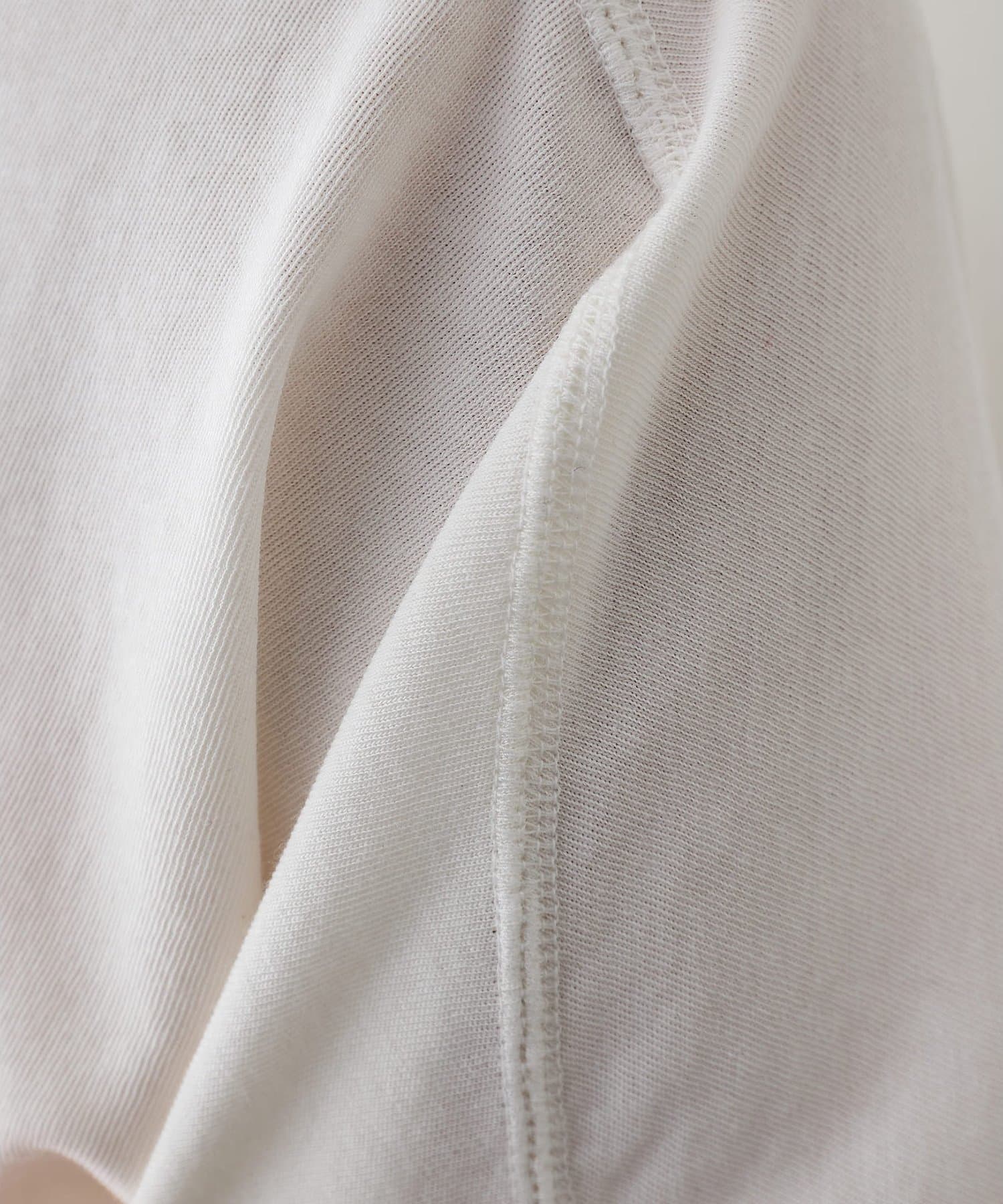 ■強撚糸を引きそろえてツイル目に編立てた、ドライなタッチの天竺素材を使用。