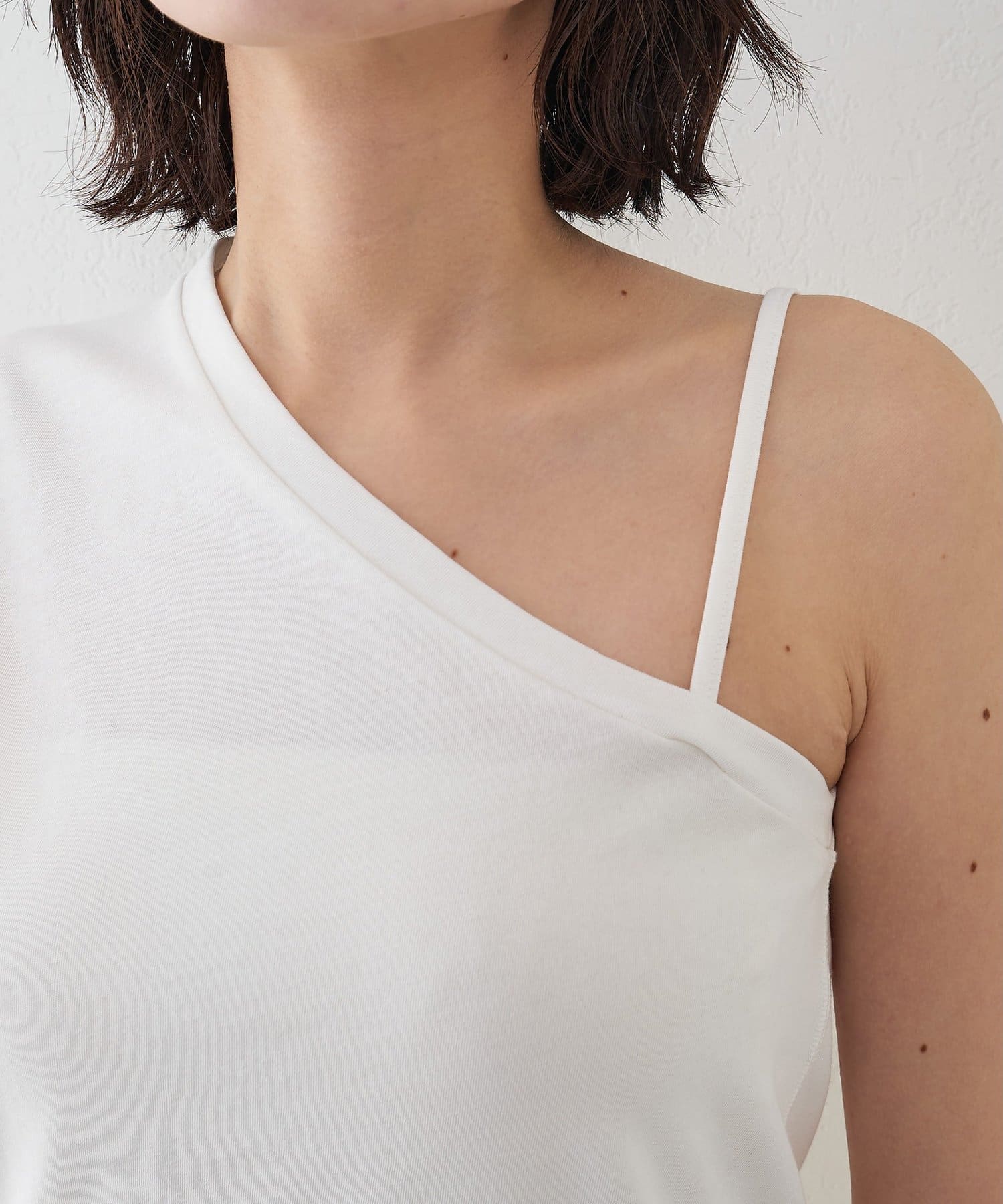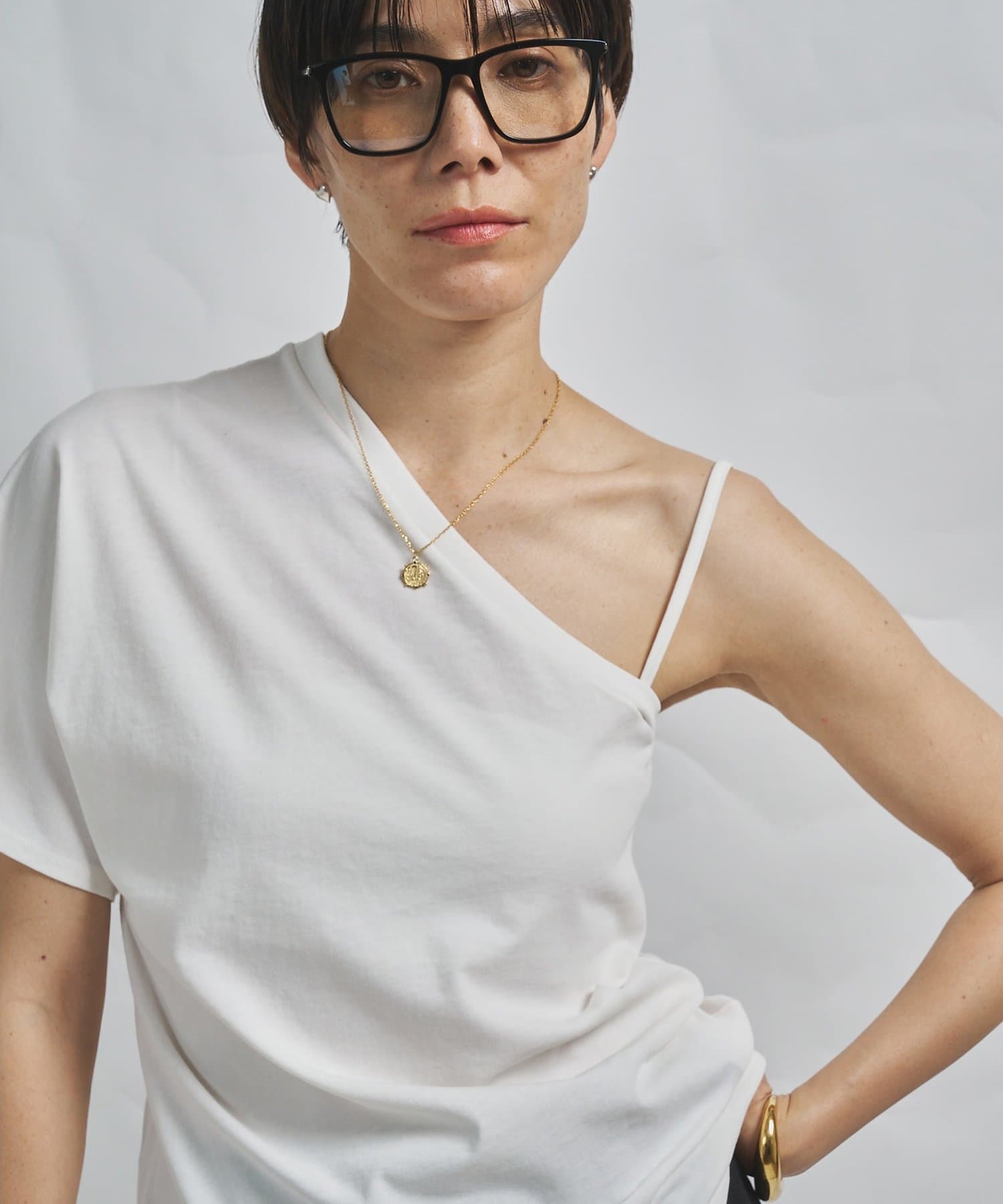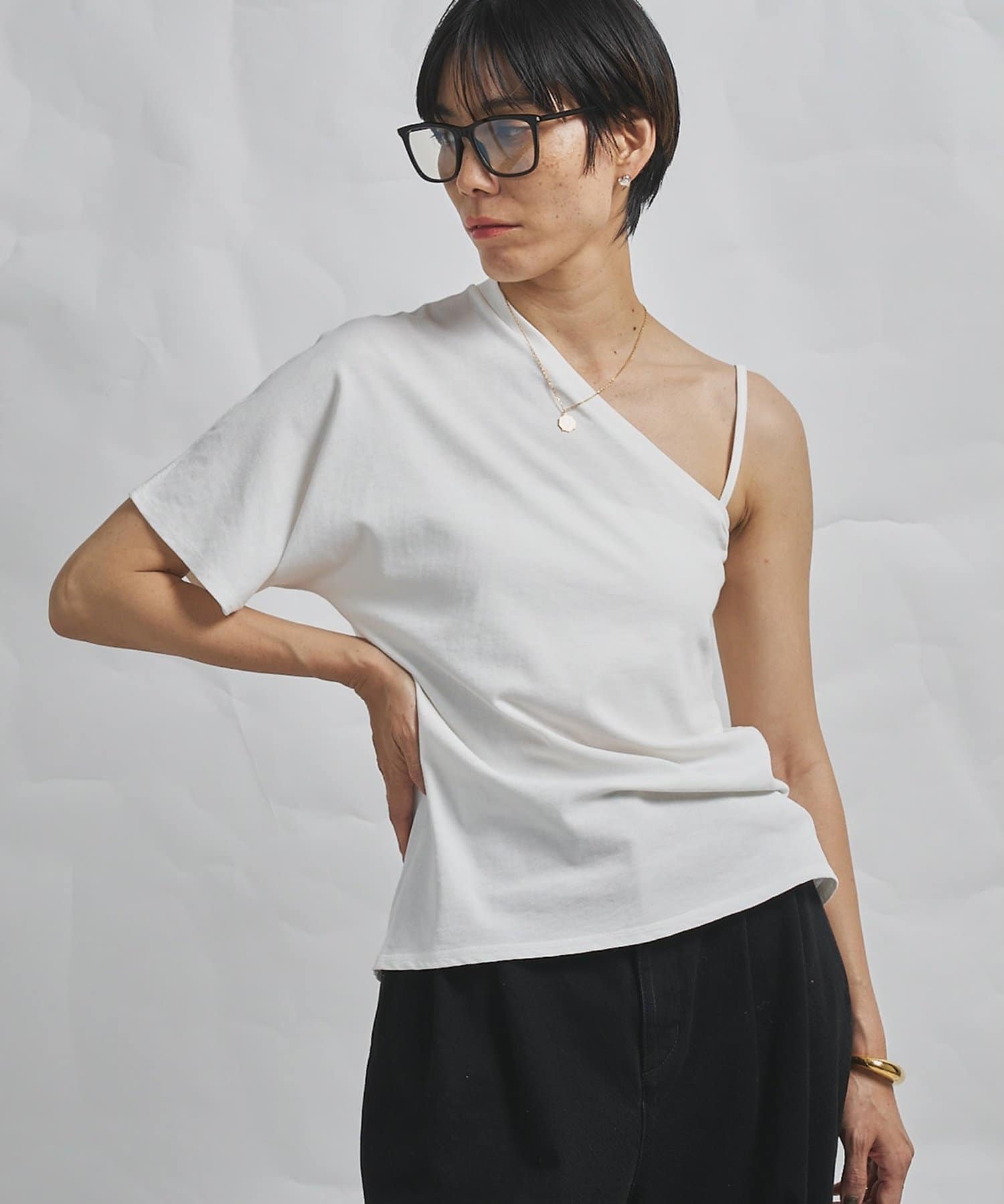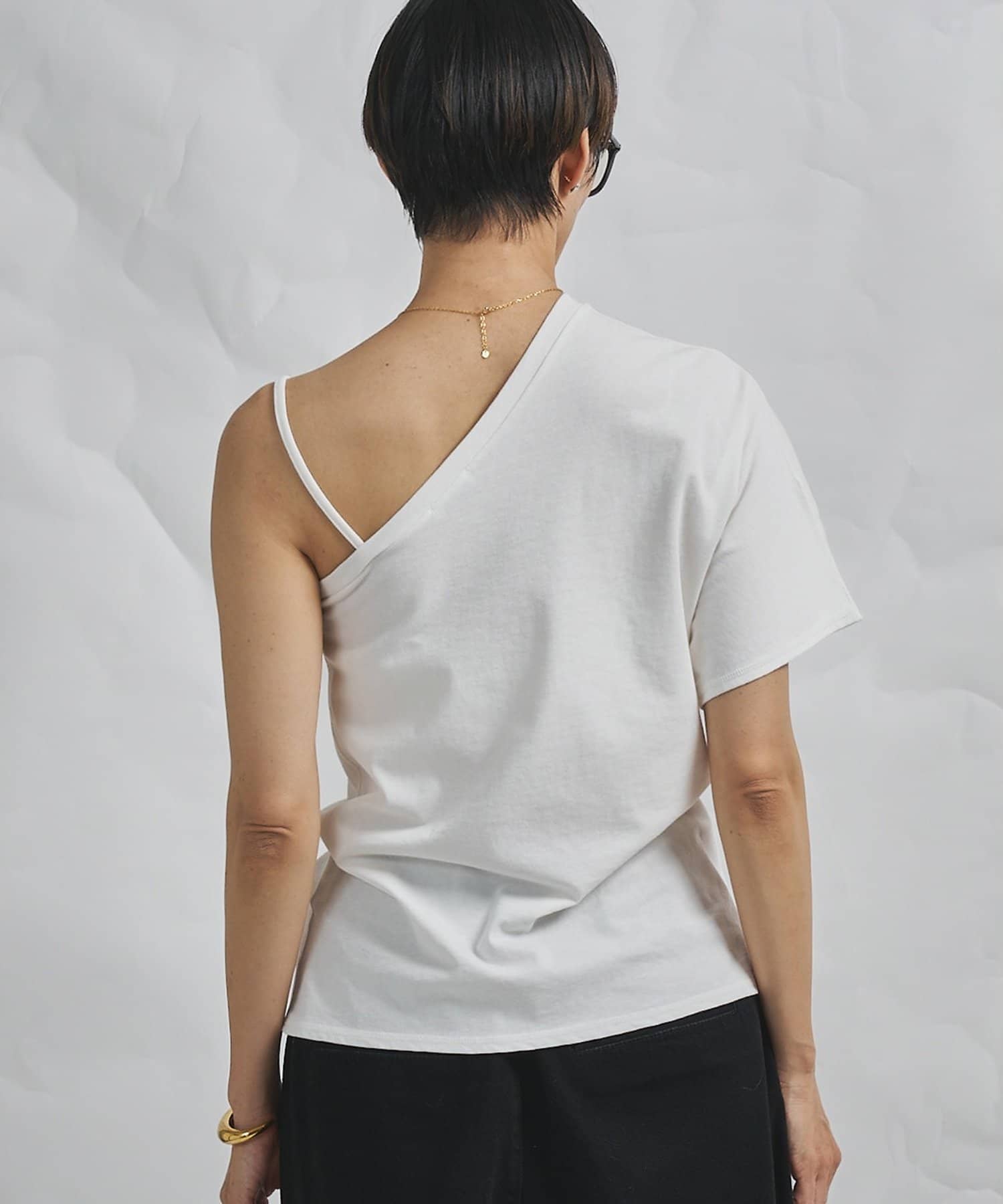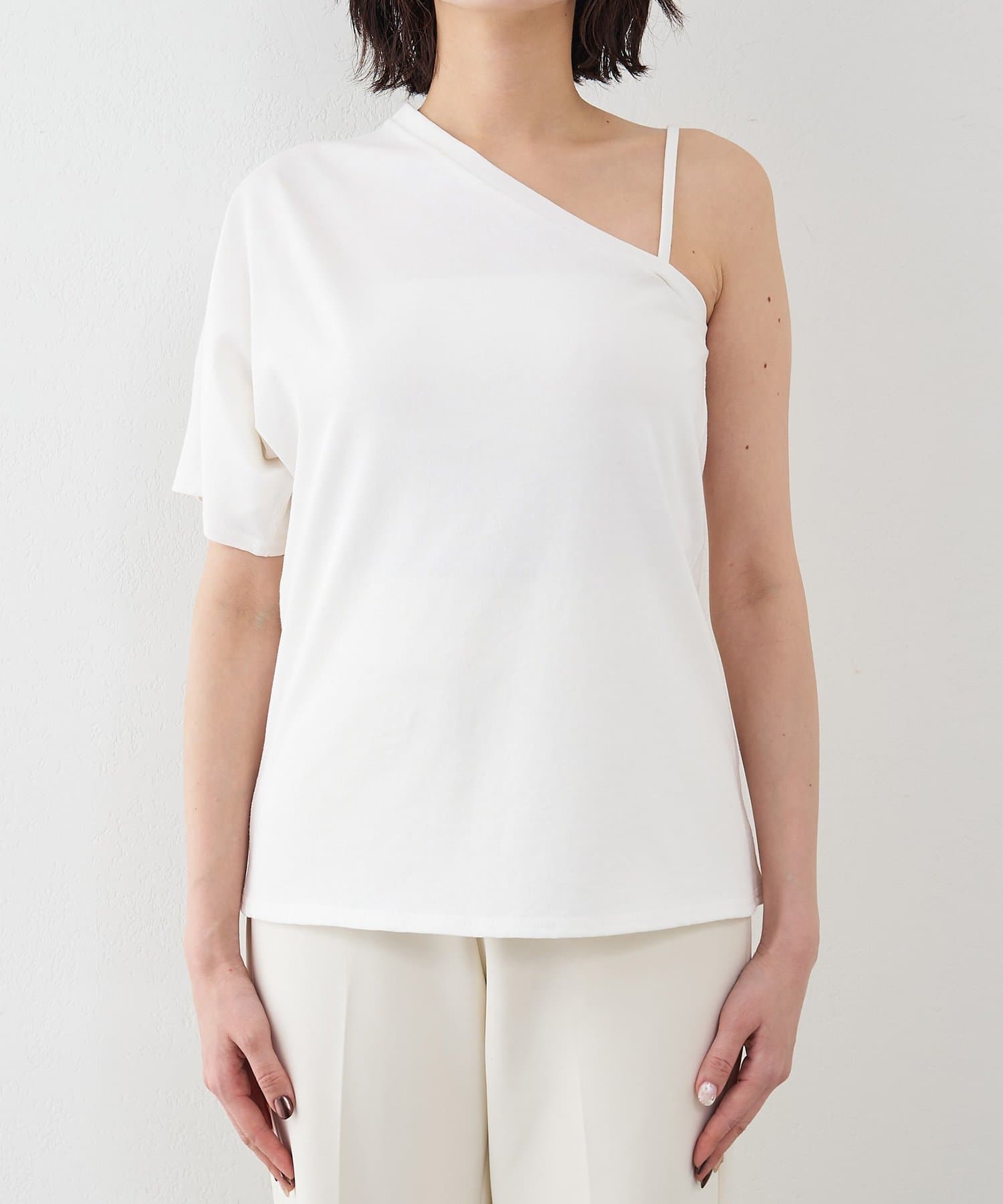 ■アシンメトリーなデザインが目を惹くワンショルダーカットソー。