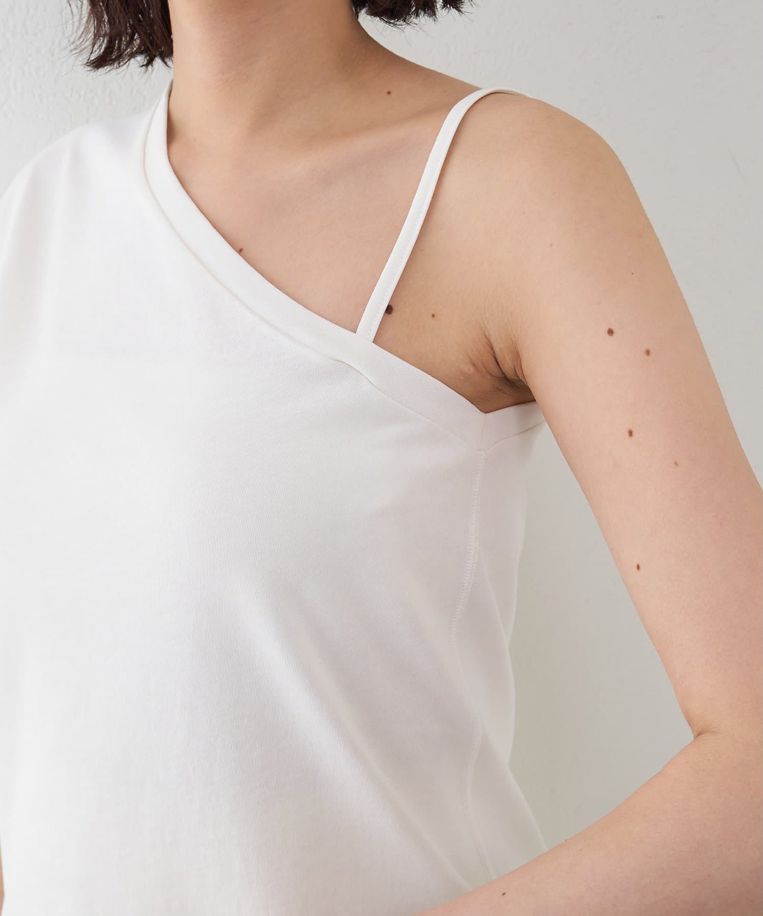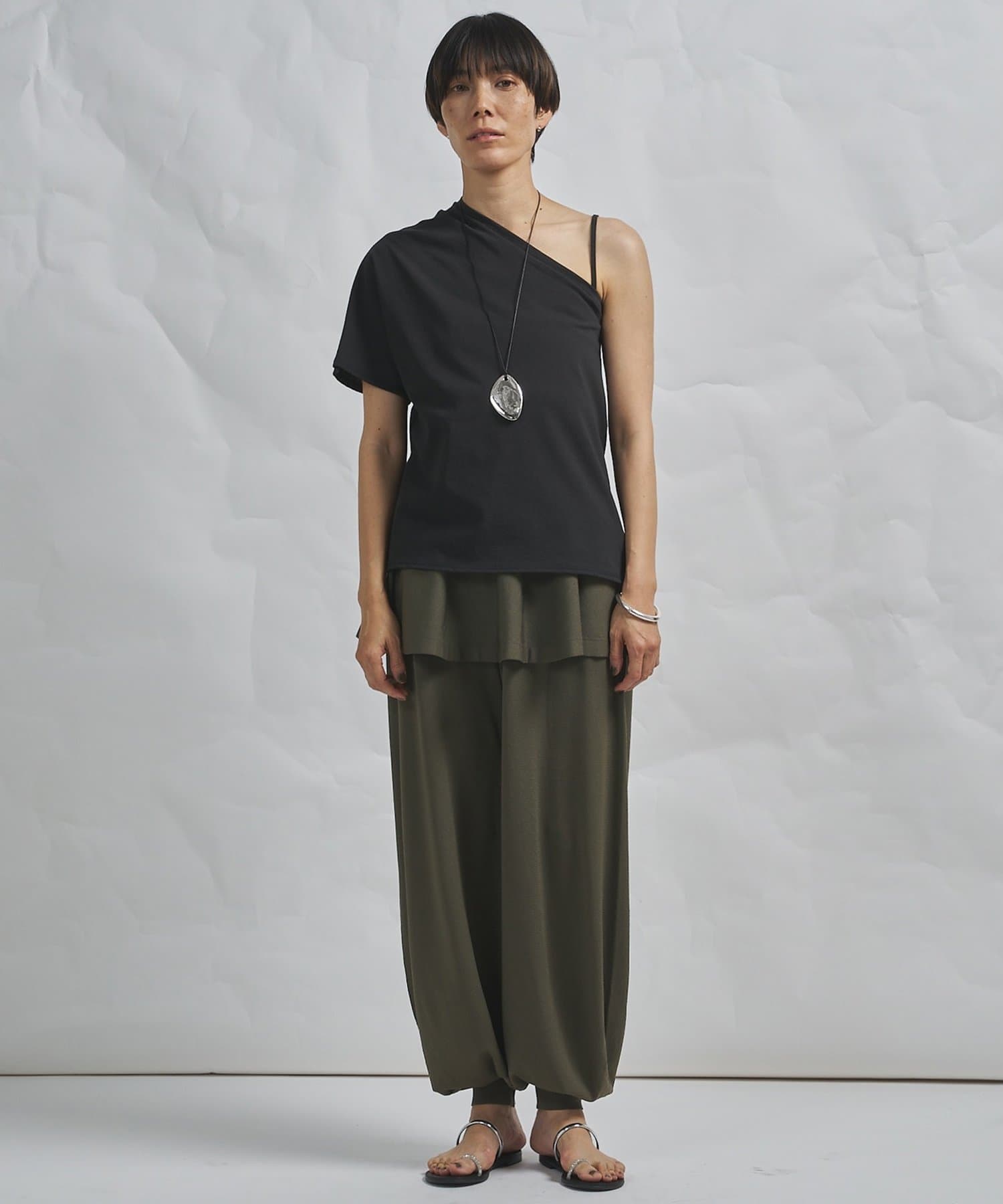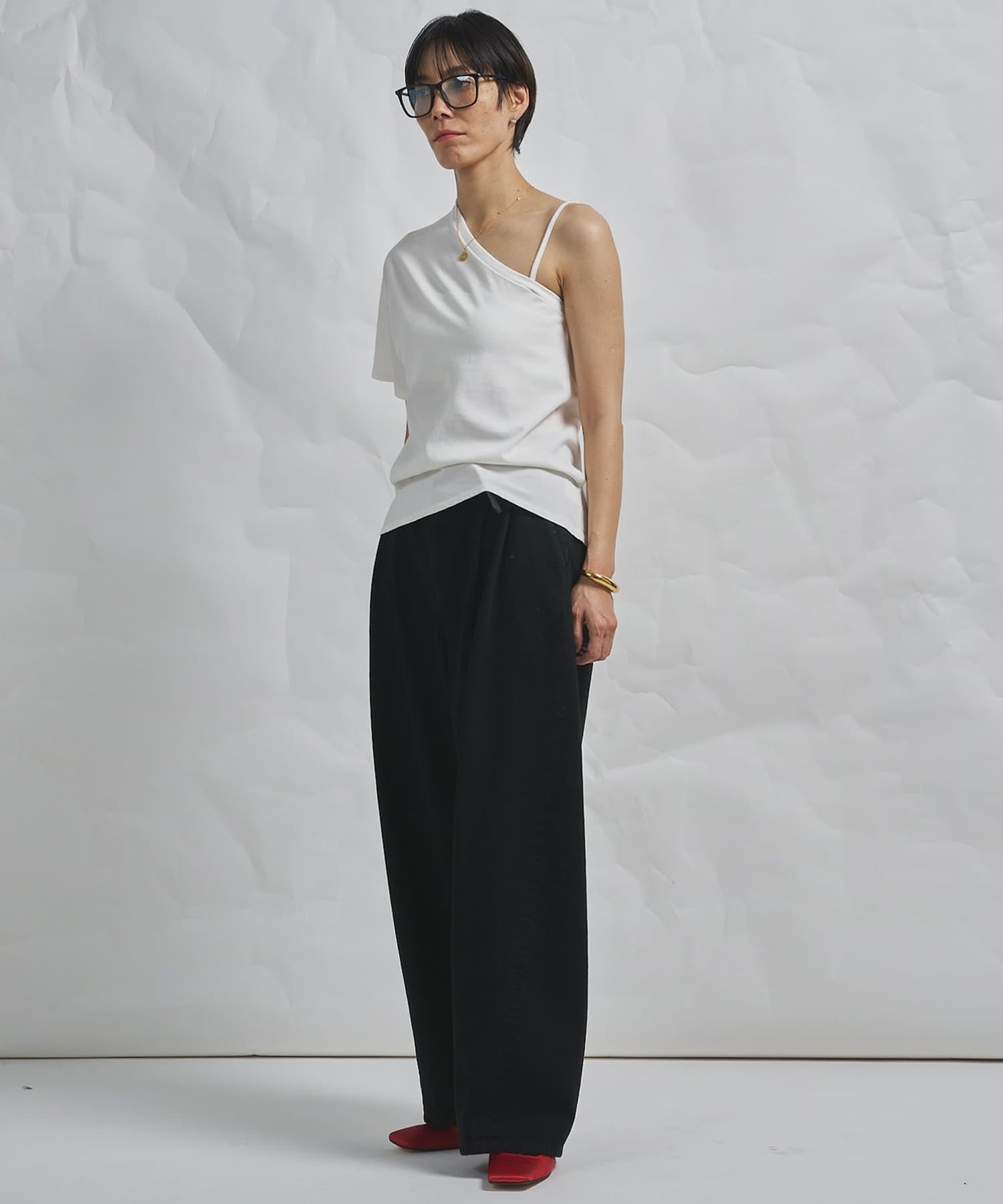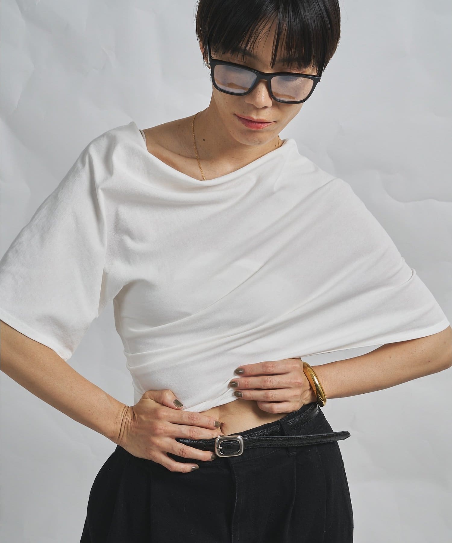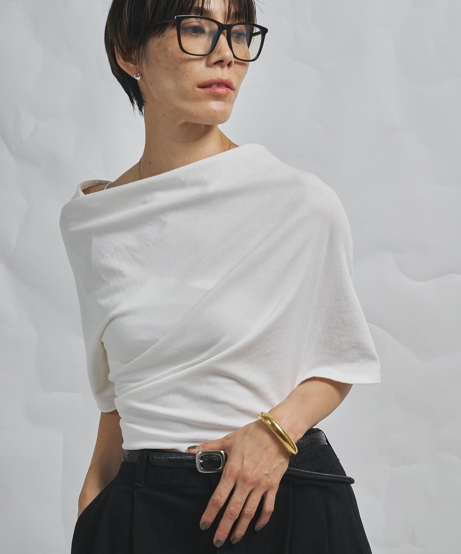 ■アシンメトリーなデザインが目を惹くワンショルダーカットソー。