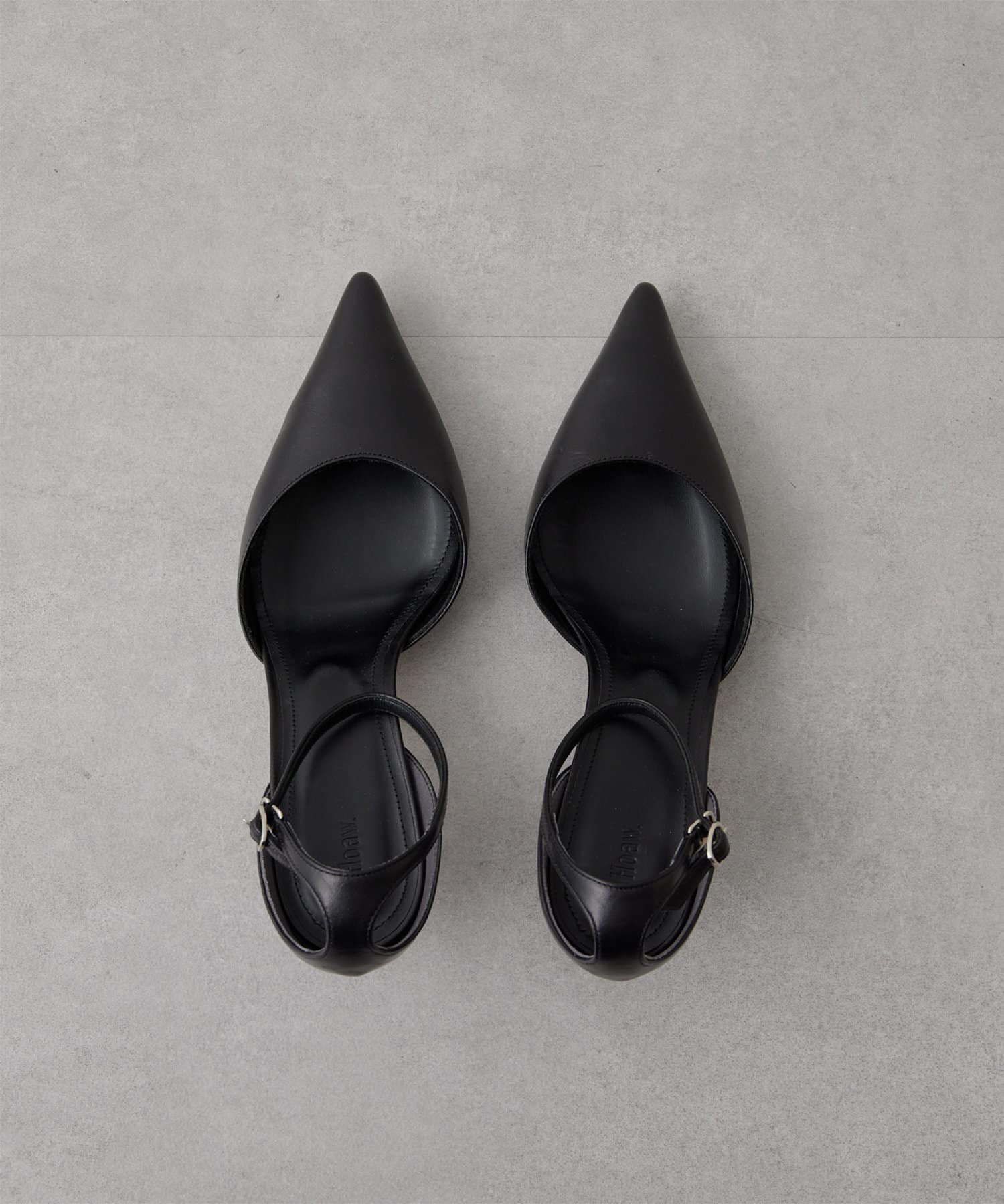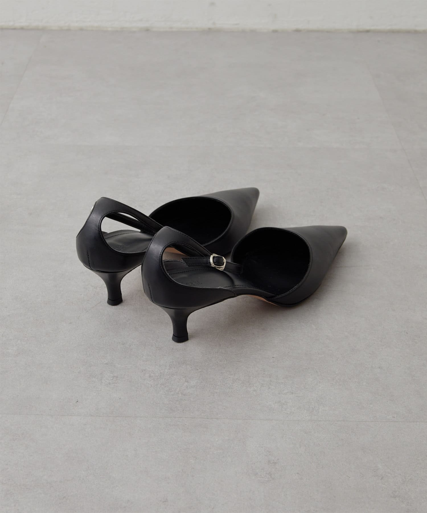 ■アンクルストラップ+シャープなポインテッドトゥでありながら、足先をしっかり包み込む安定感のある履き心地が魅力。