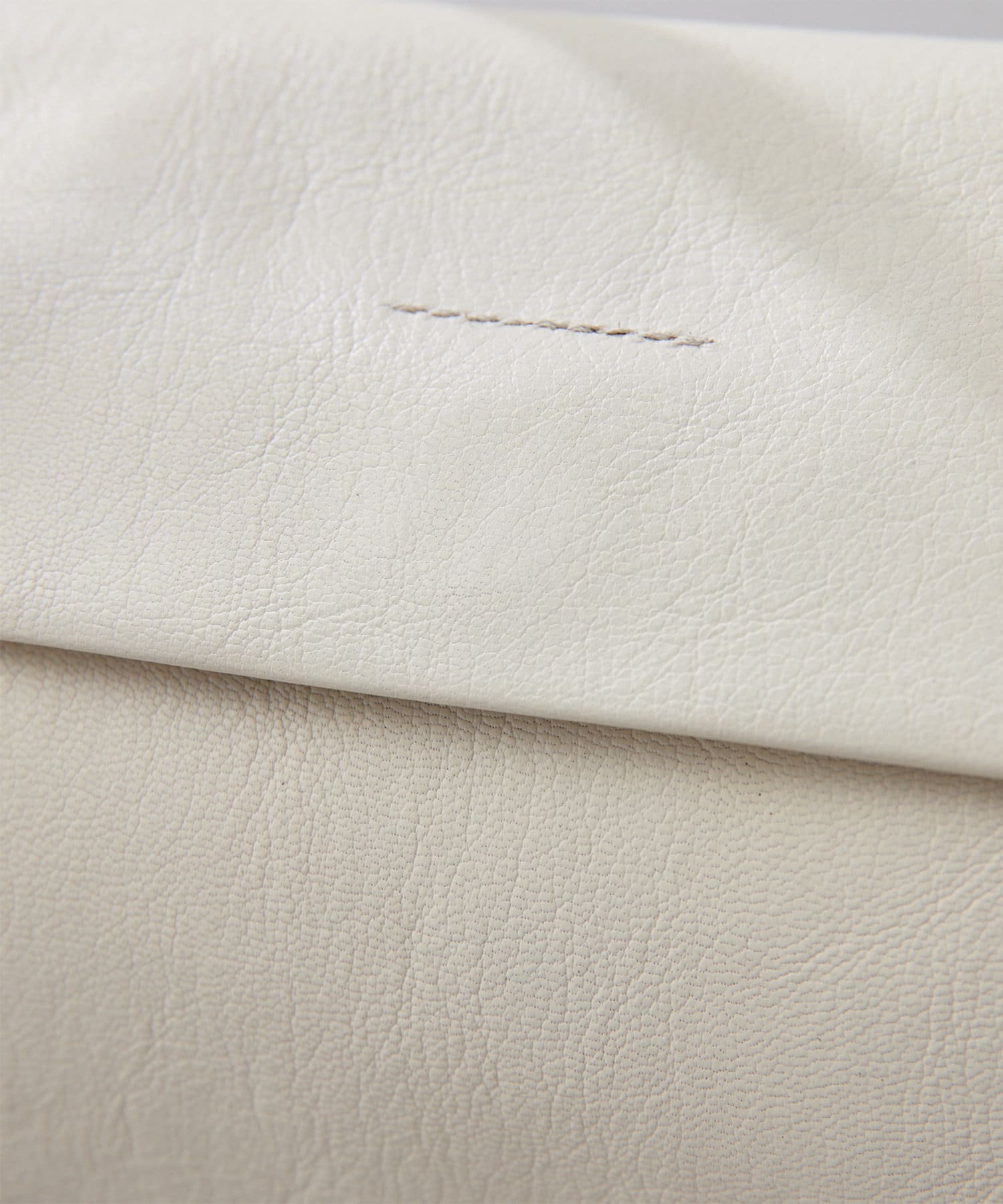 薄い素材ながらも軽くて丈夫で型崩れしにくいのが特徴のゴートレザーを、革の線維をほぐして柔らかくし革に自然なシワやシボを付けた加工を施した『Milling Leather』を使用。