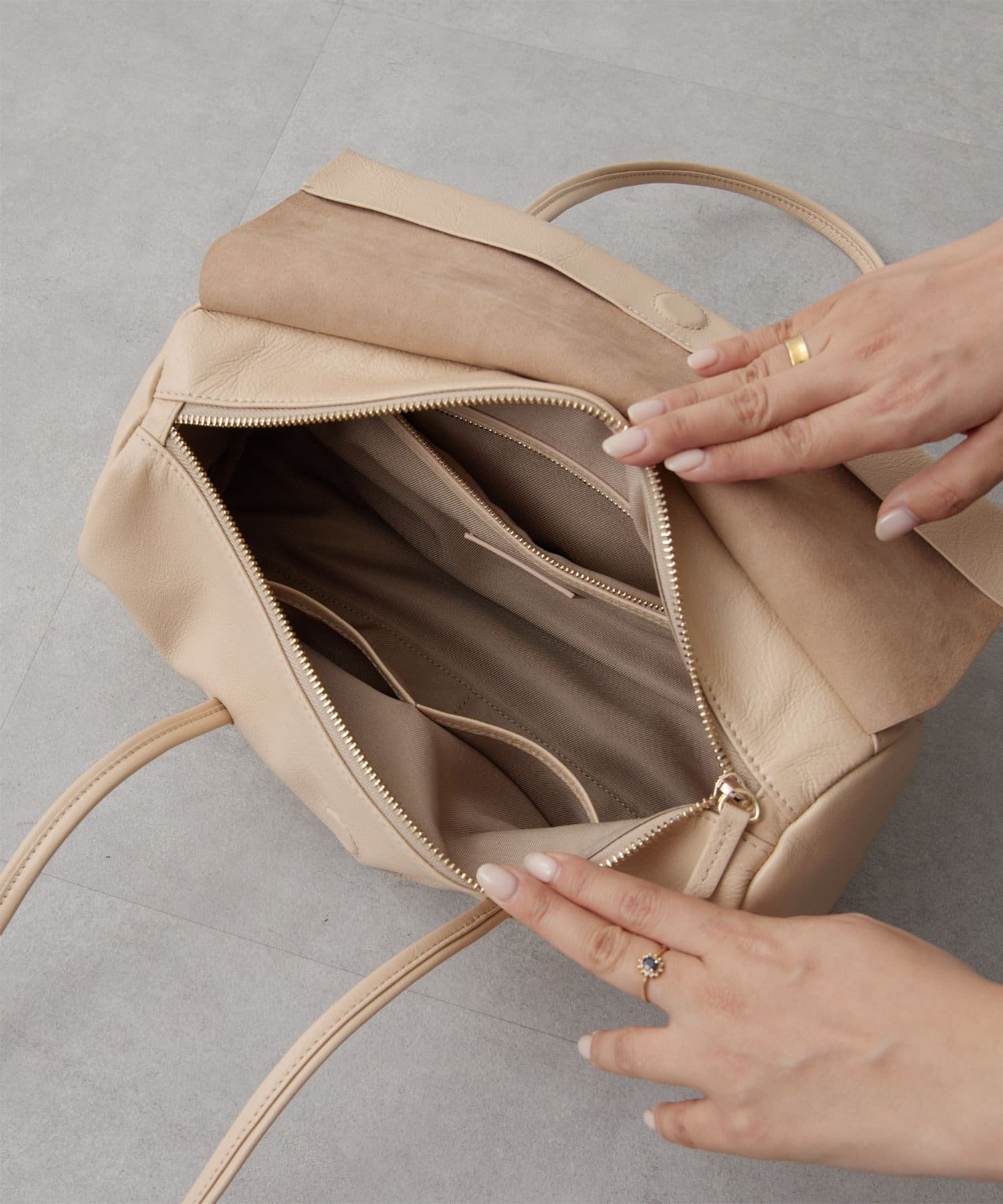 ■開口部がワイドに開くので中身が取りやすく、浅型ながらも収納力あるサイズも魅力。