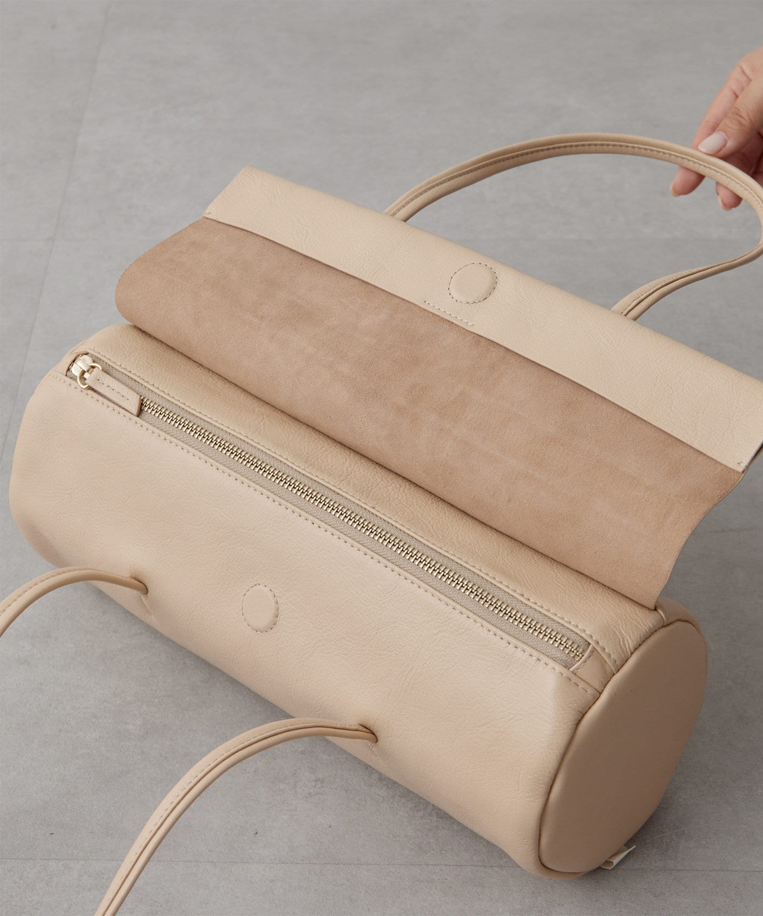 ■トレンド感のあるワイドシェイプの横長シリンダー型バッグ。
