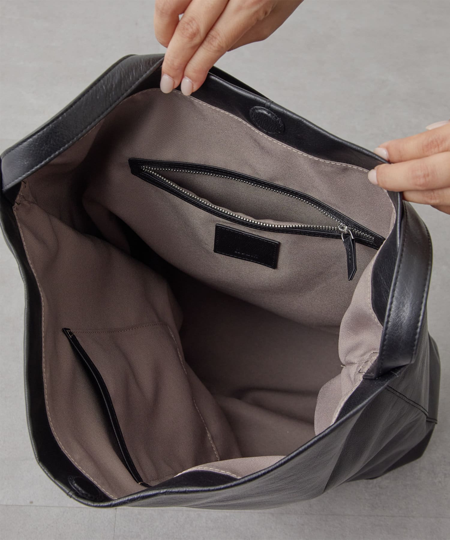 ■金具を使わずスタイリングに馴染むミニマルな印象に仕上げたデザイン。