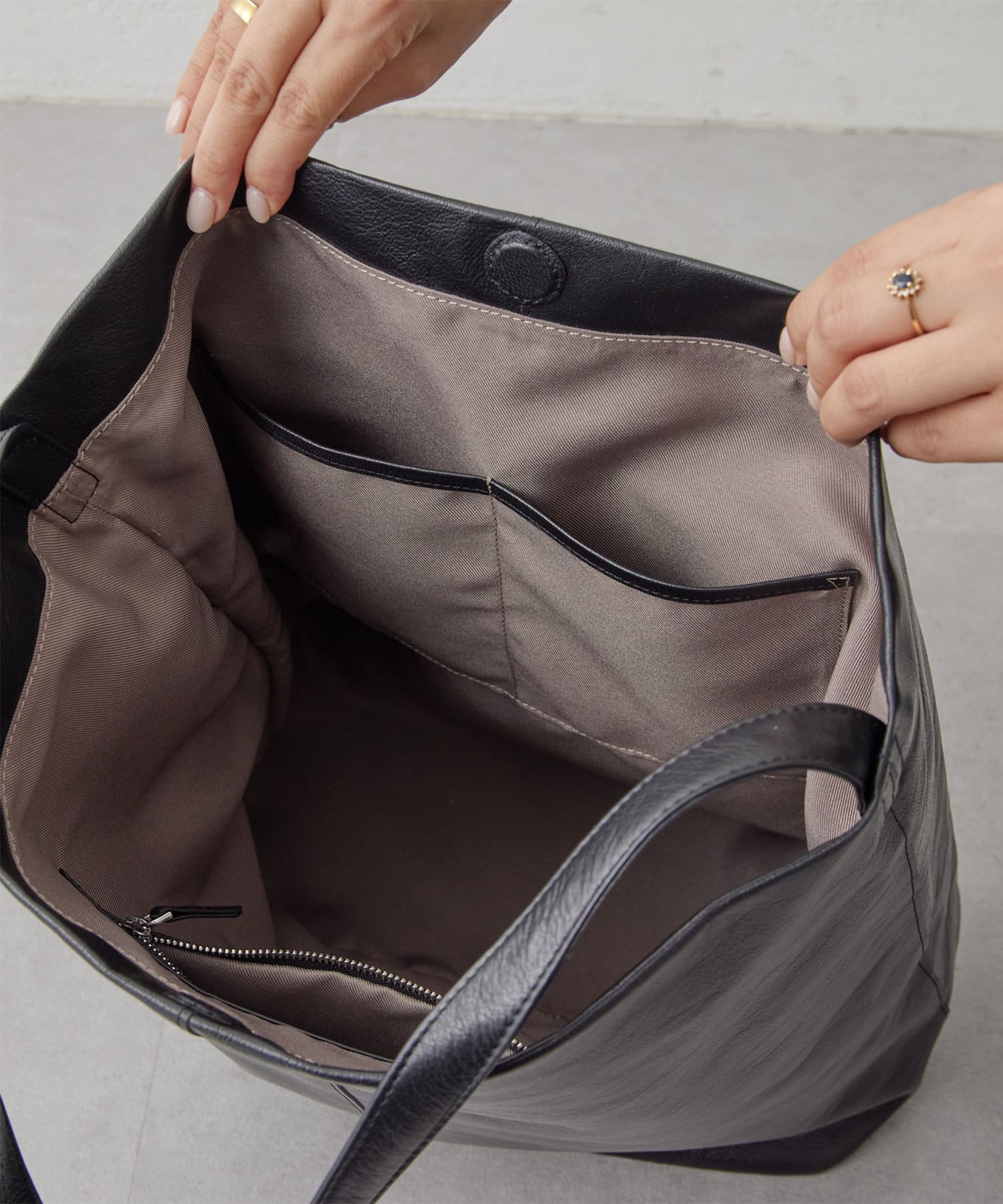 ■開口部はマグネットで留められる仕様で、出し入れしやすく安心感のある作りに。