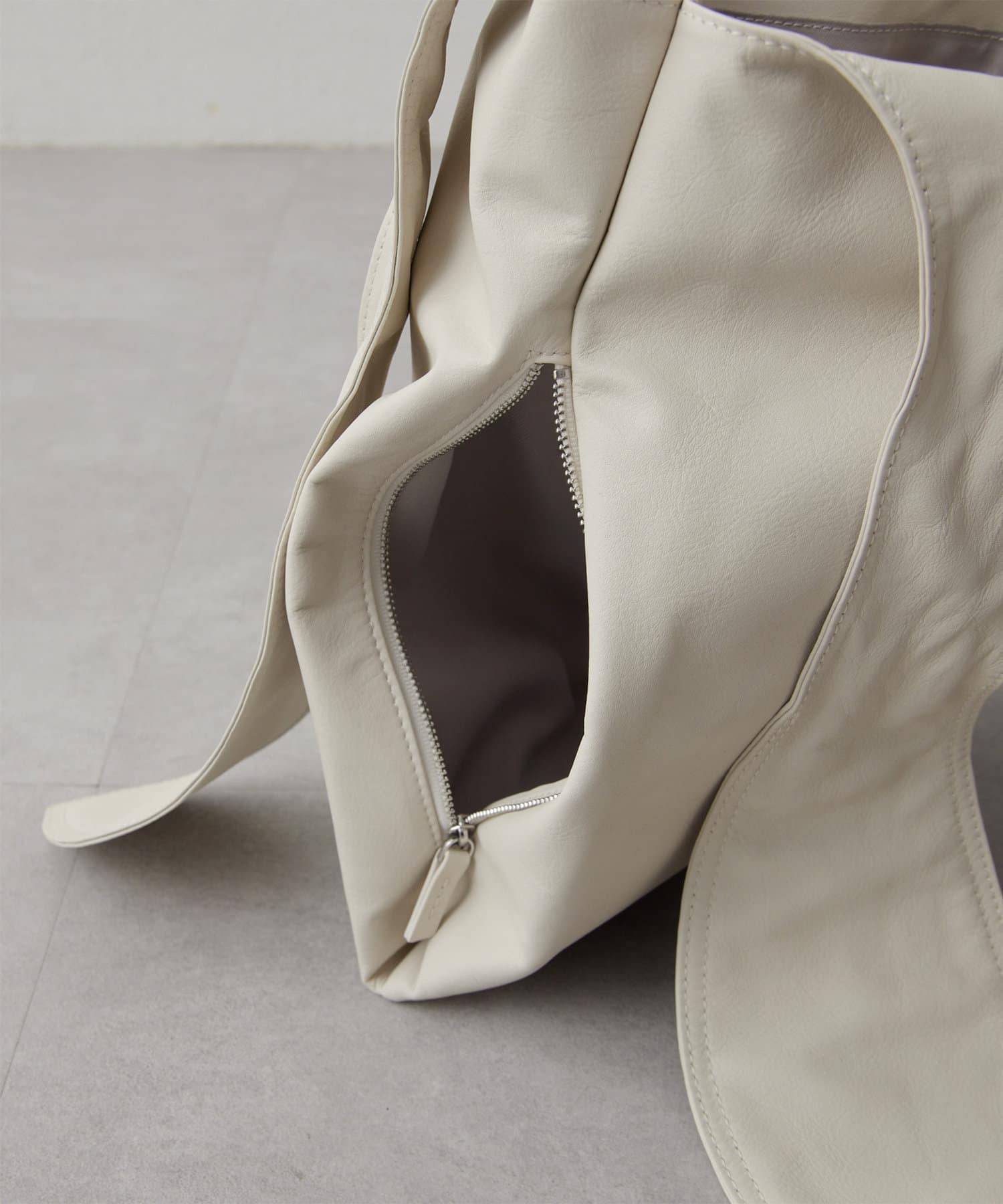 リボン使いがポイントになる、レザー素材のショッパーバッグ