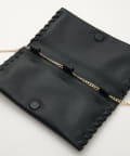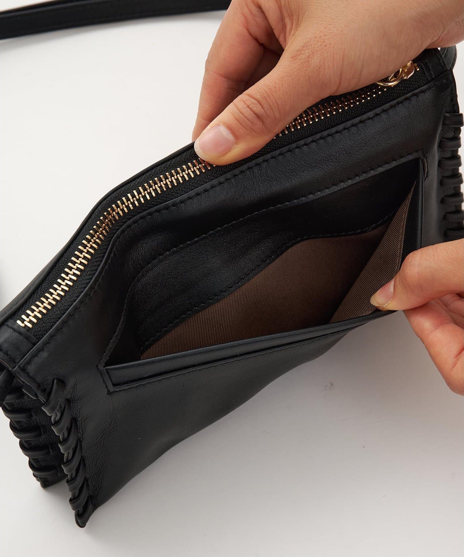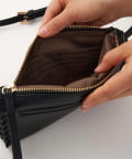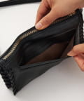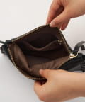 ■トリミング部分のハンドステッチがアクセントになるウォレット仕様のショルダーバッグ。