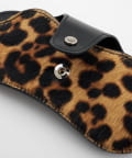 厳選されたイタリアンレザー(牛革)を使用し、染色後にポリッシュ加工を施すことで、表面が滑らかで光沢感があり、硬めの仕上がりが特徴の[ボックスレザー]を使用。キャメルの毛足部分:レオパード柄が印象的な毛足のある素材を使用。