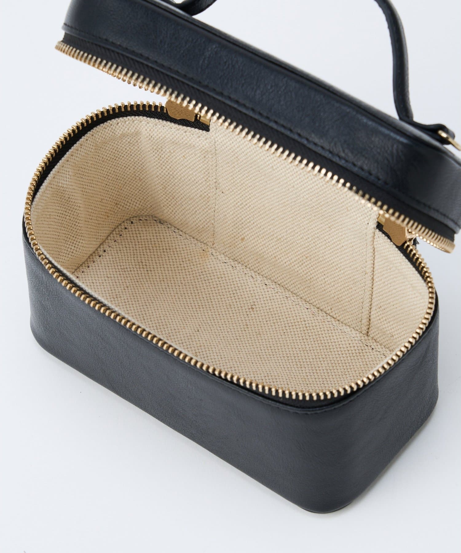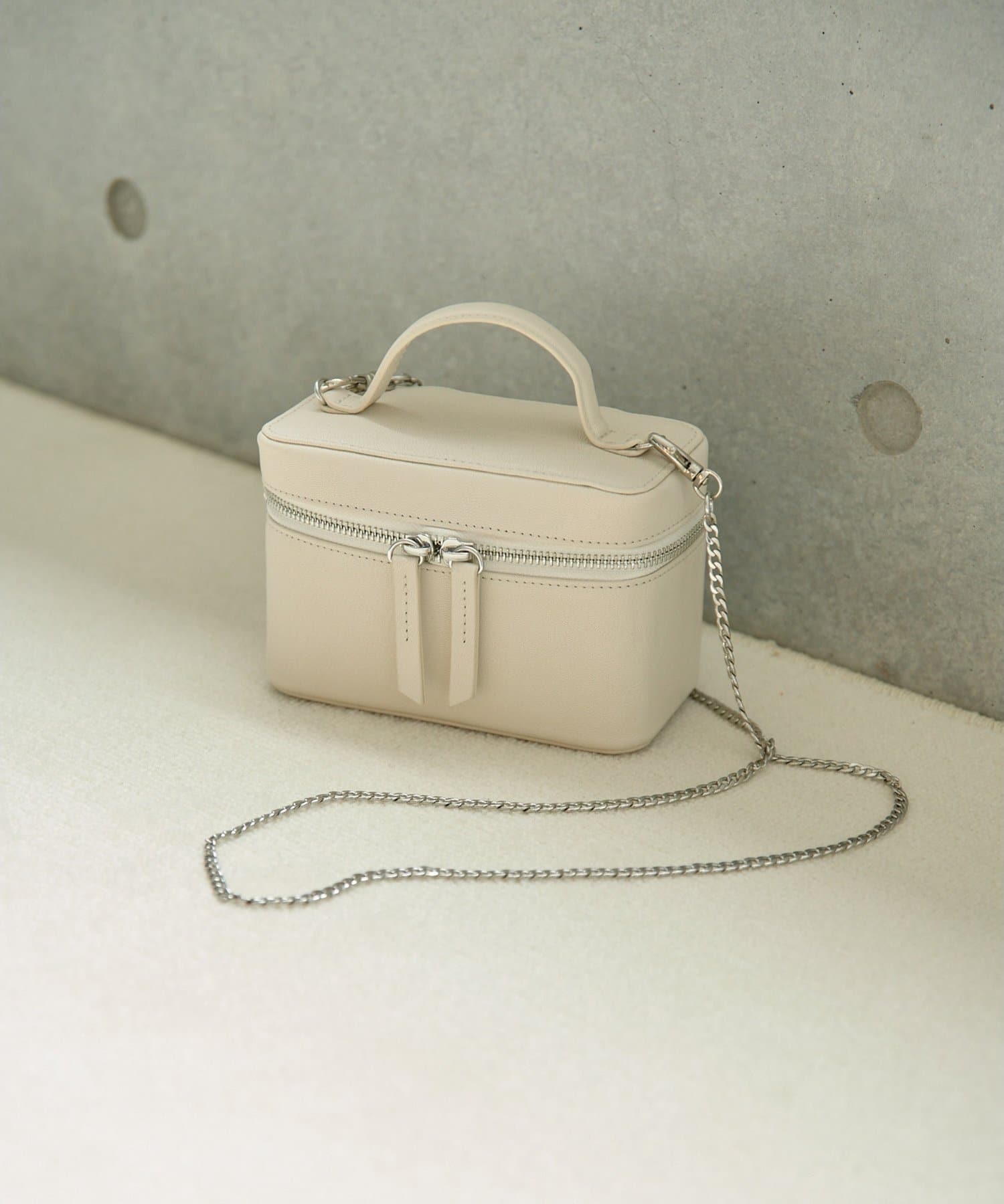 ■繊細なシボと上品な艶感を持つゴートレザーを使用したミニバニティバッグ。