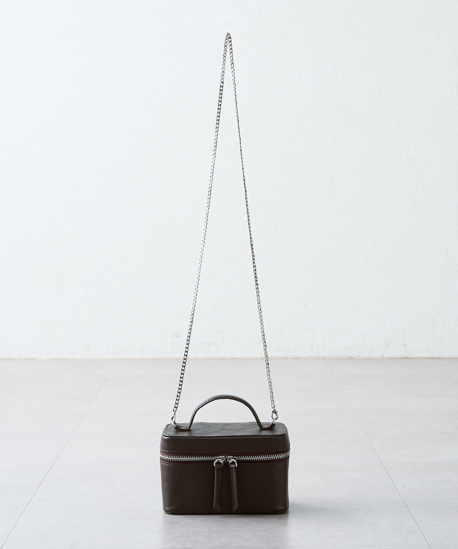 ■繊細なシボと上品な艶感を持つゴートレザーを使用したミニバニティバッグ。
