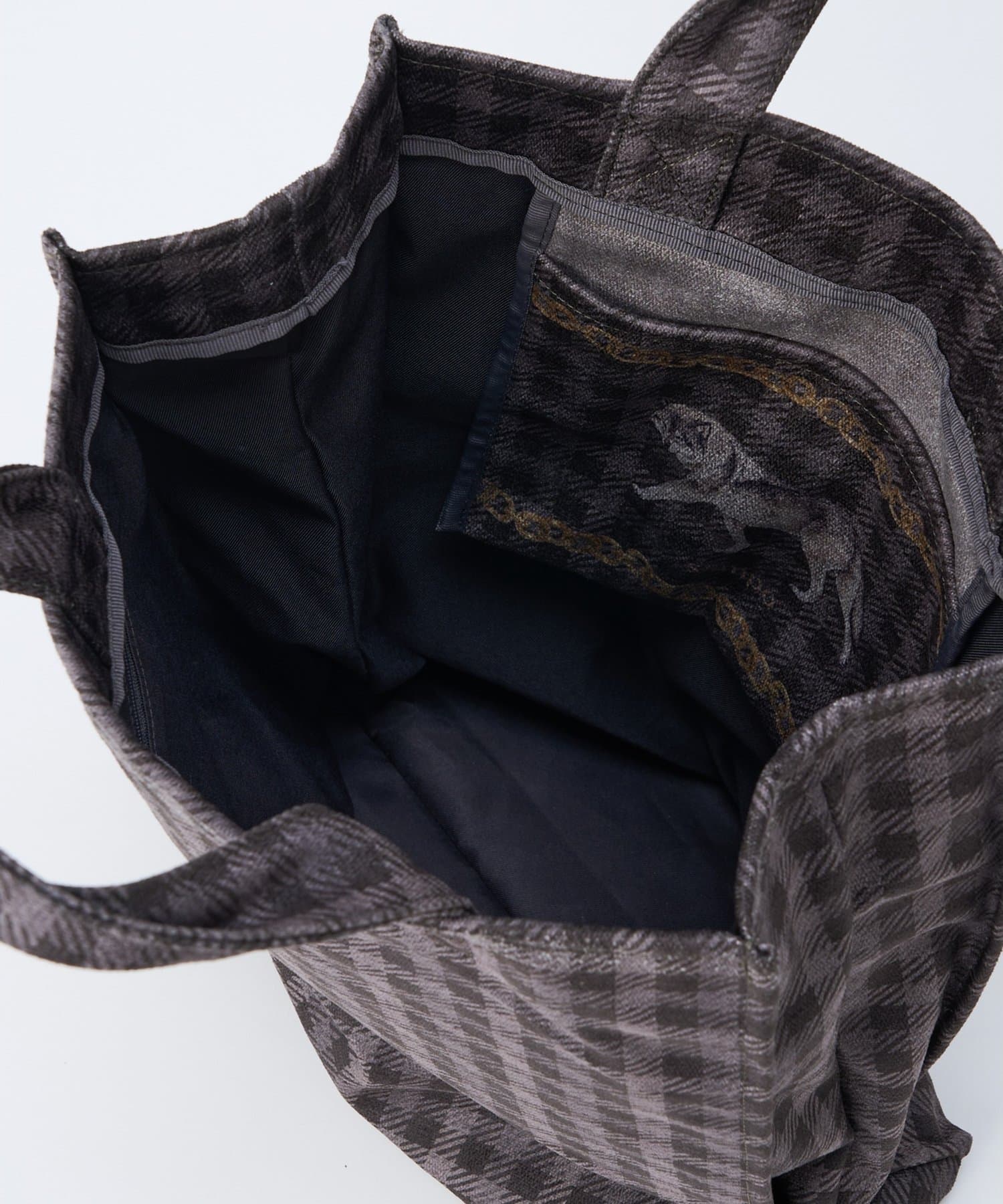 ■オリジナルのクラシカルなガンクラブチェックをプリントしたトートバッグ。