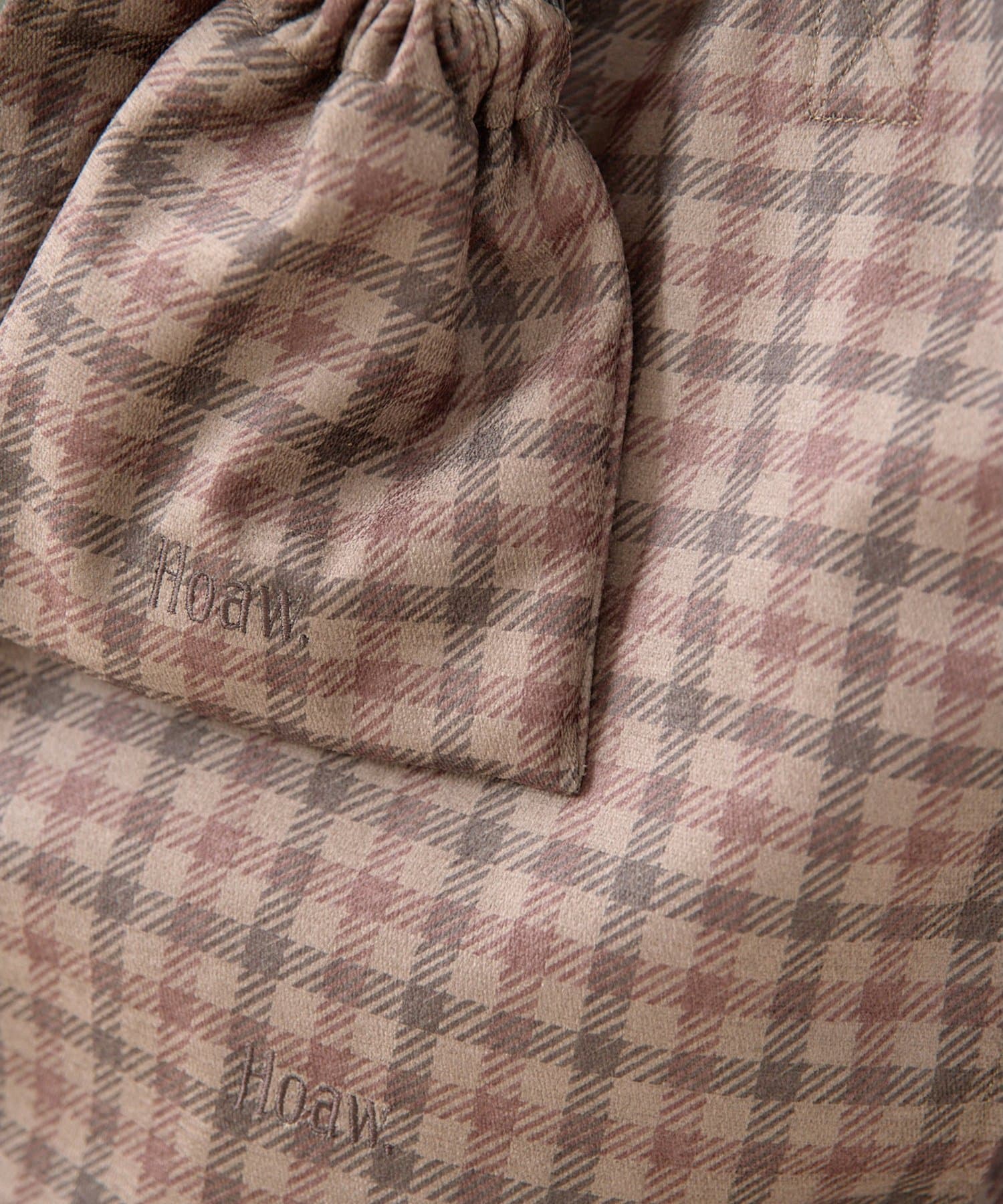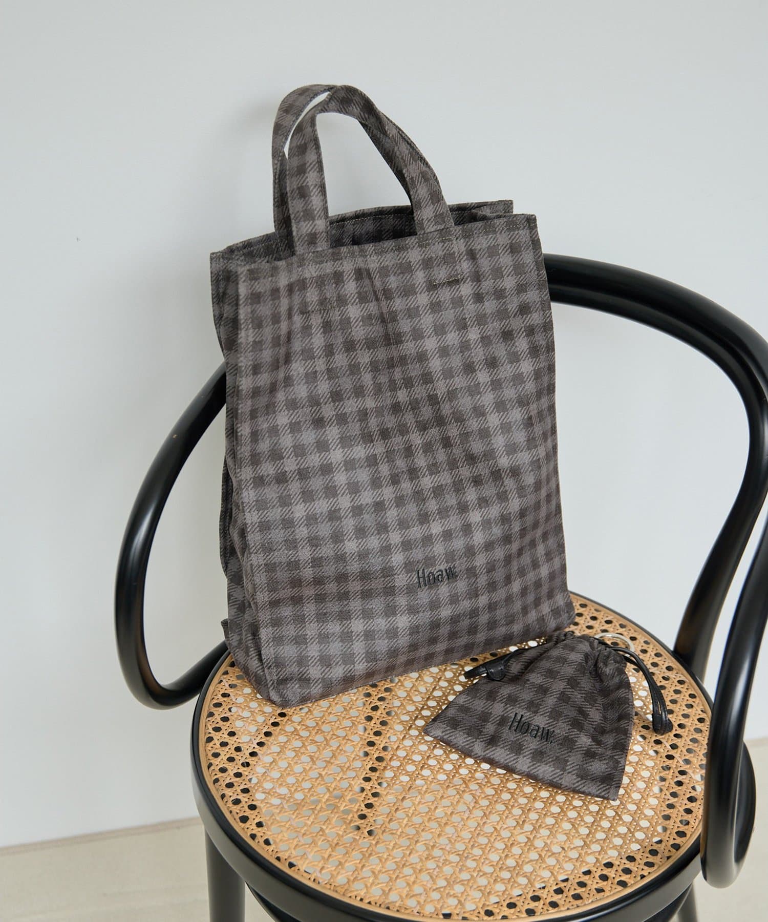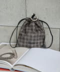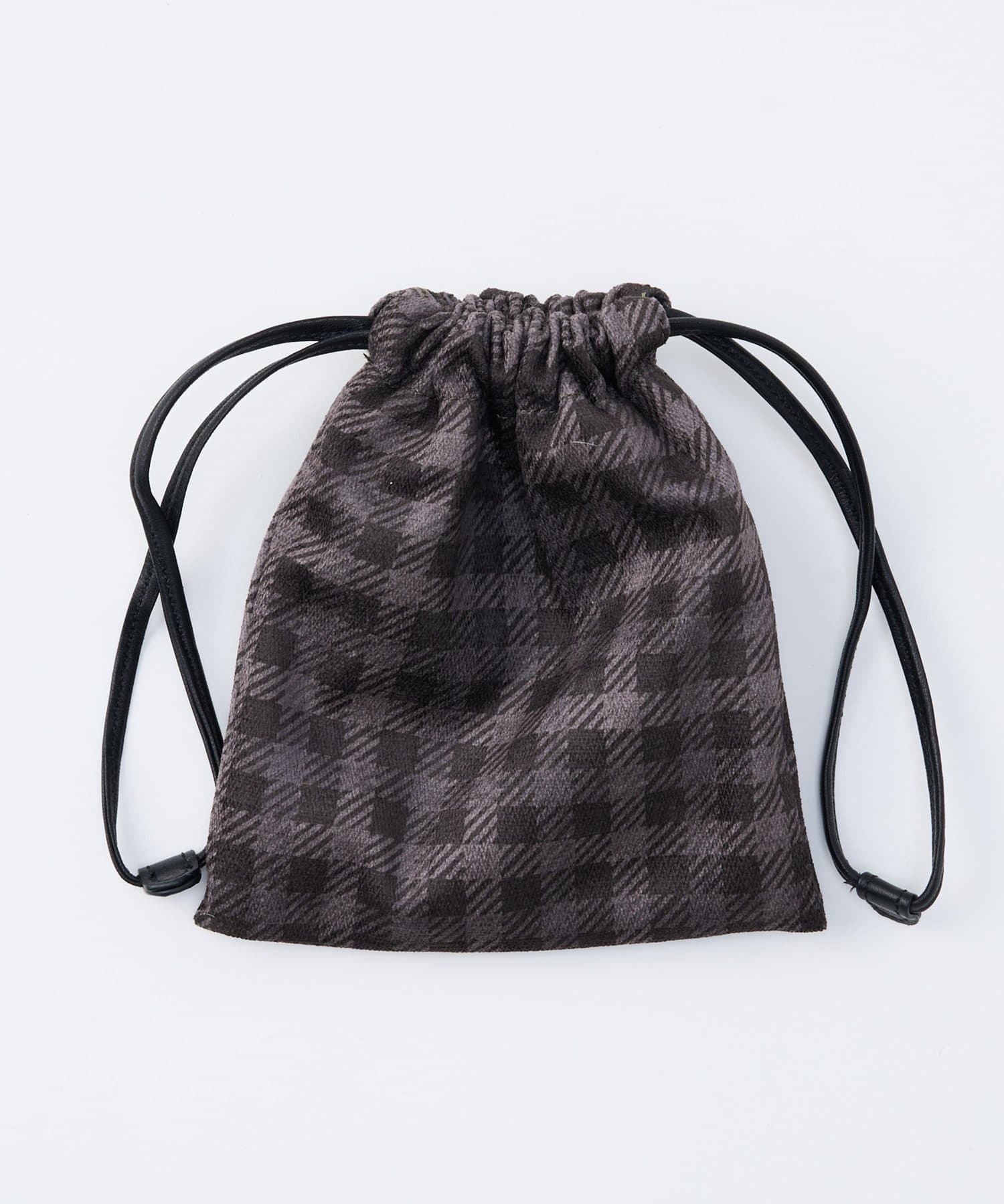 ■オリジナルのガンクラブチェックをプリントした巾着バッグ。