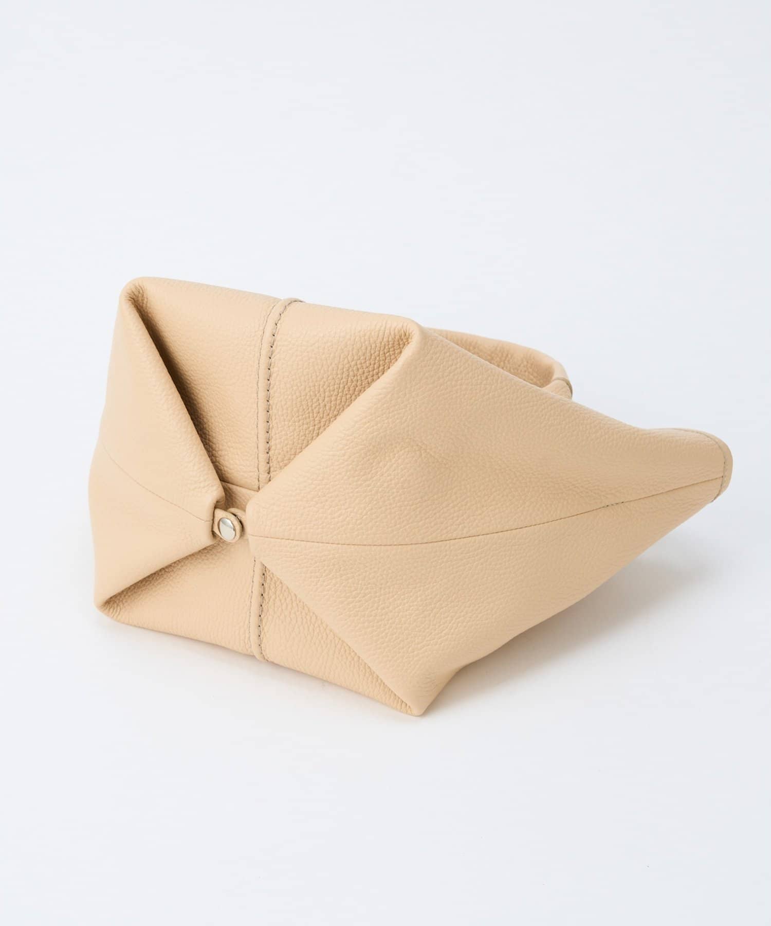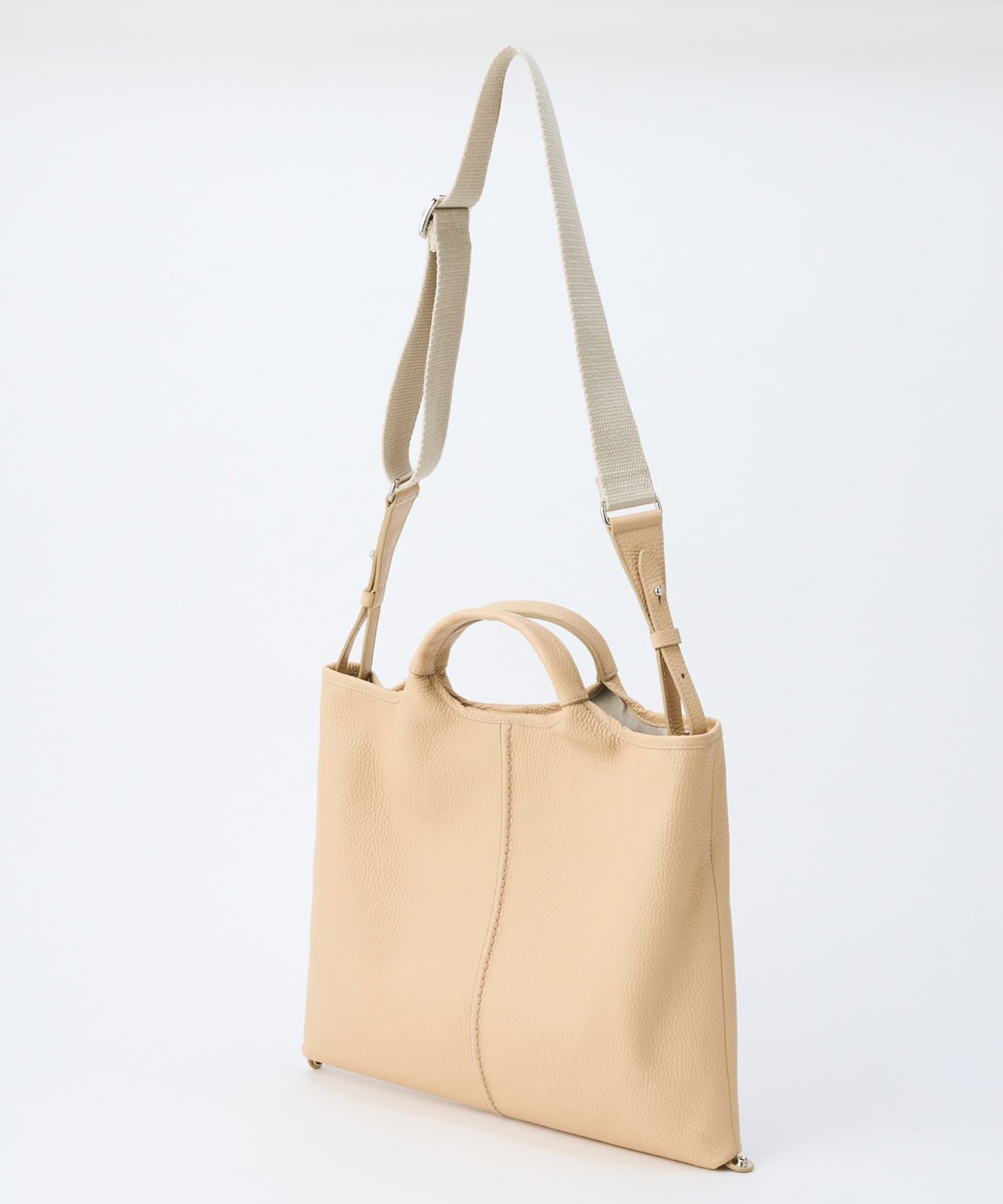 ■端のフラットなマチのないスクエアシルエットながら、フォルムを変えて使えるフレキシブルなデザイン。