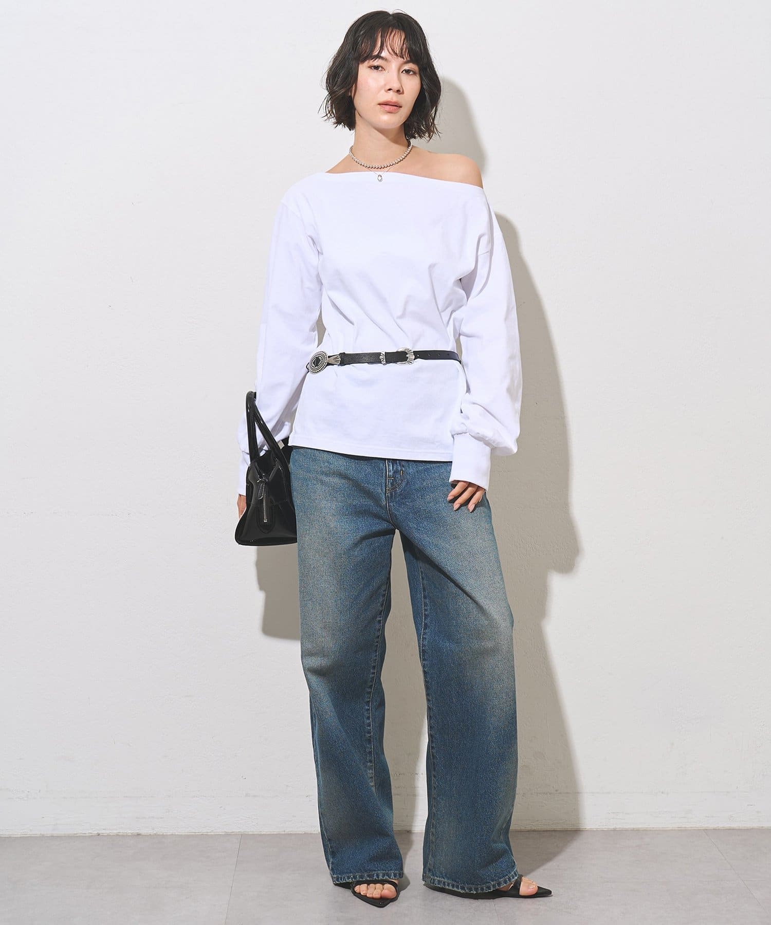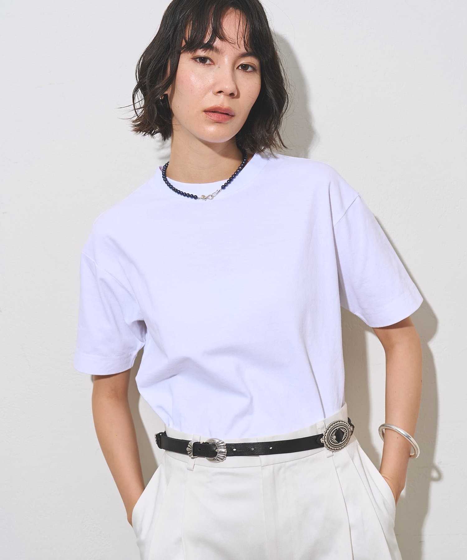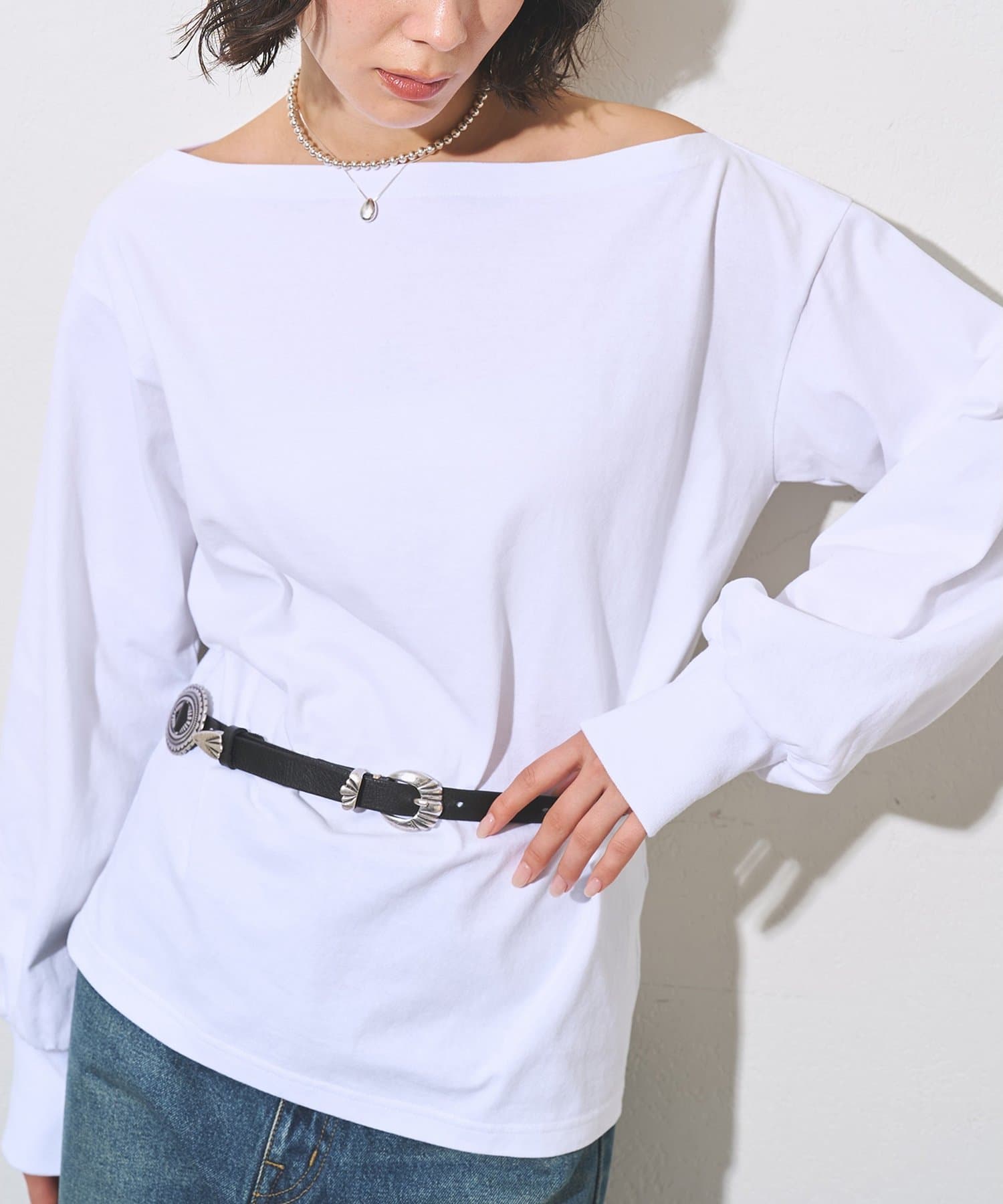 きれいめなコンチョベルトで合わせやすく、おしゃれ見えします。