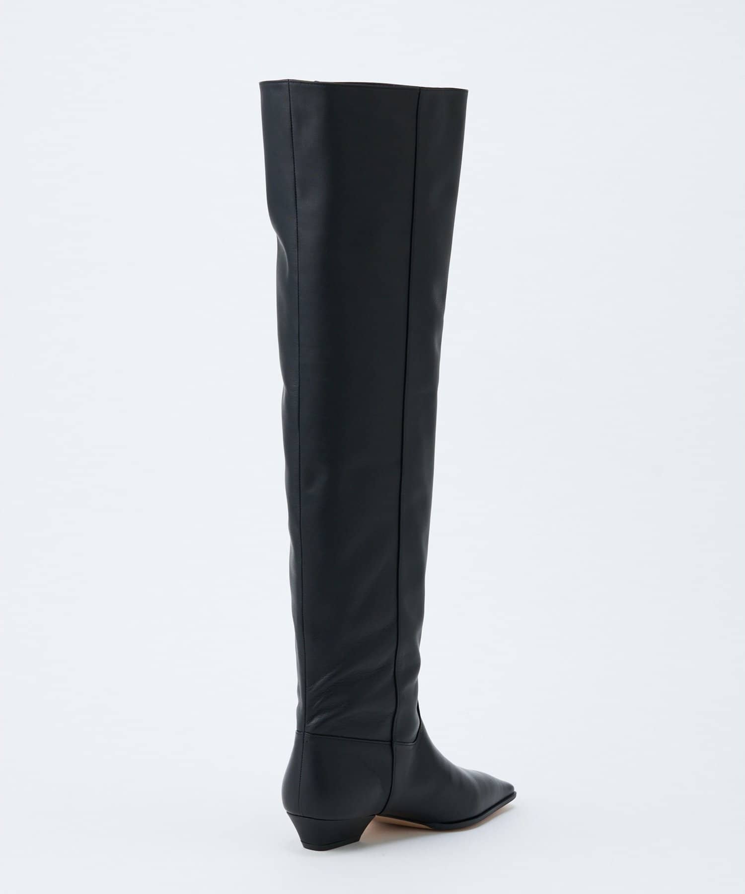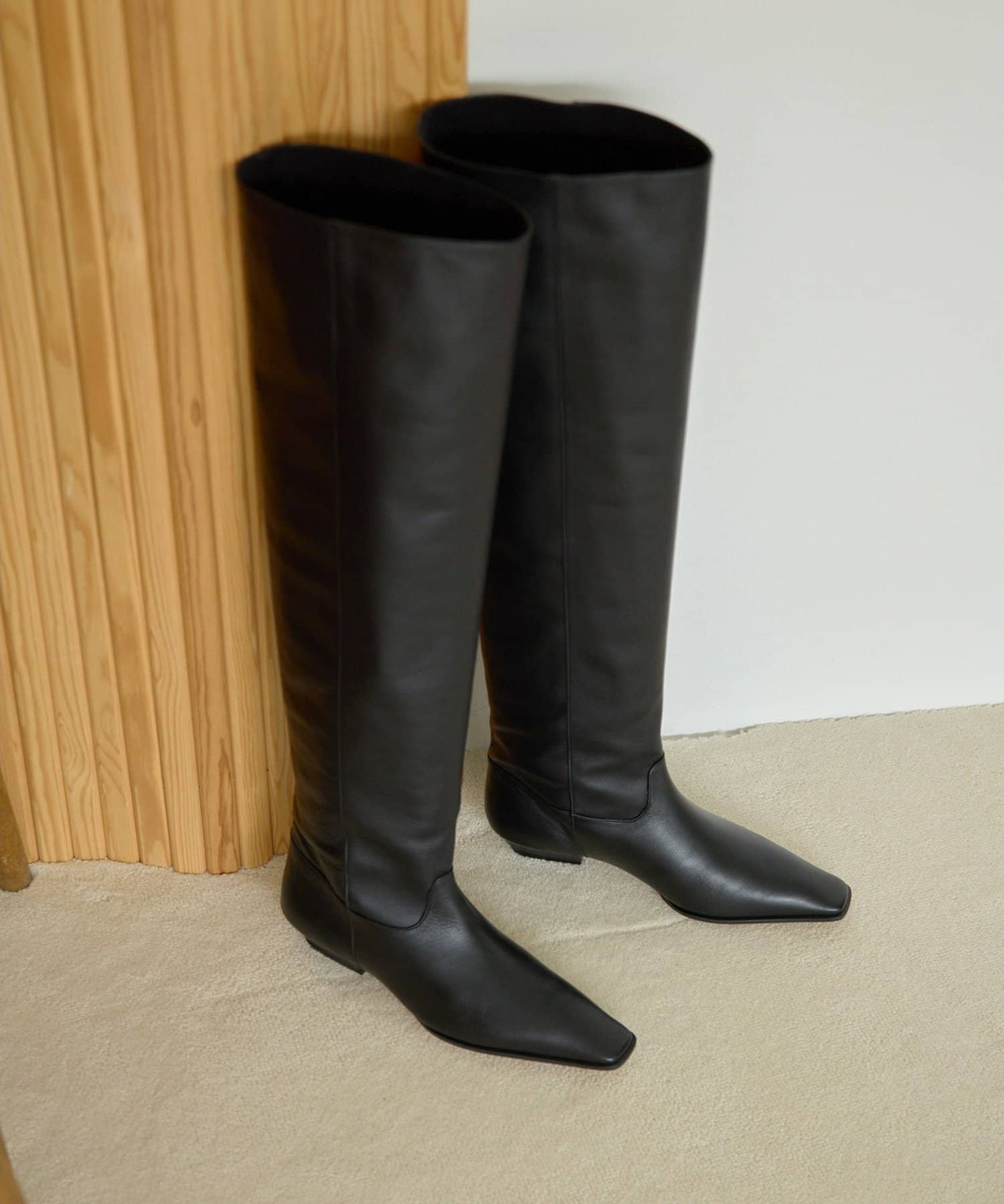 ■脚長効果を演出してくれるレザーニーハイブーツ。