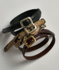 ■丸みのあるスクエアバックル使いがポイントのナローベルト。
