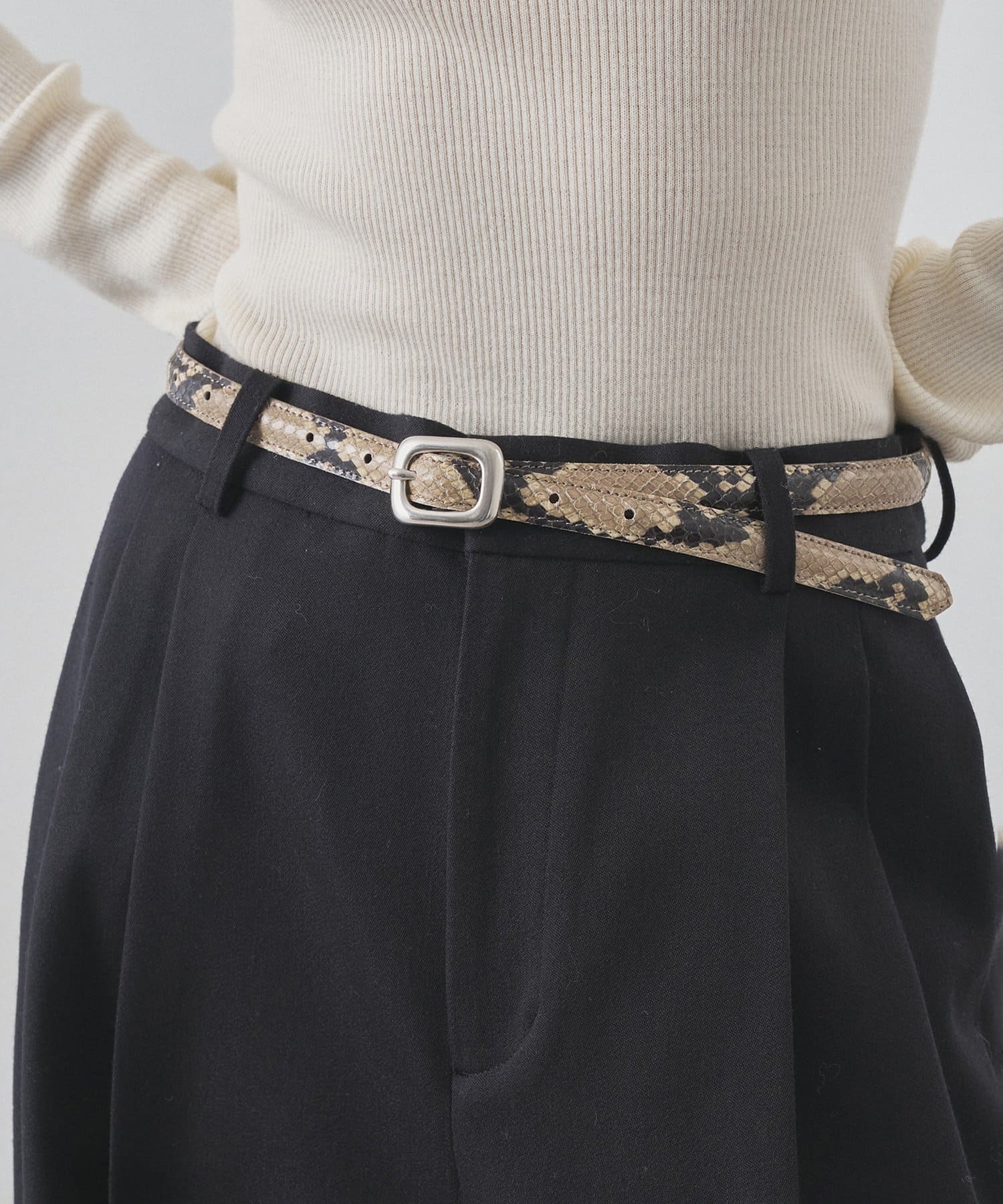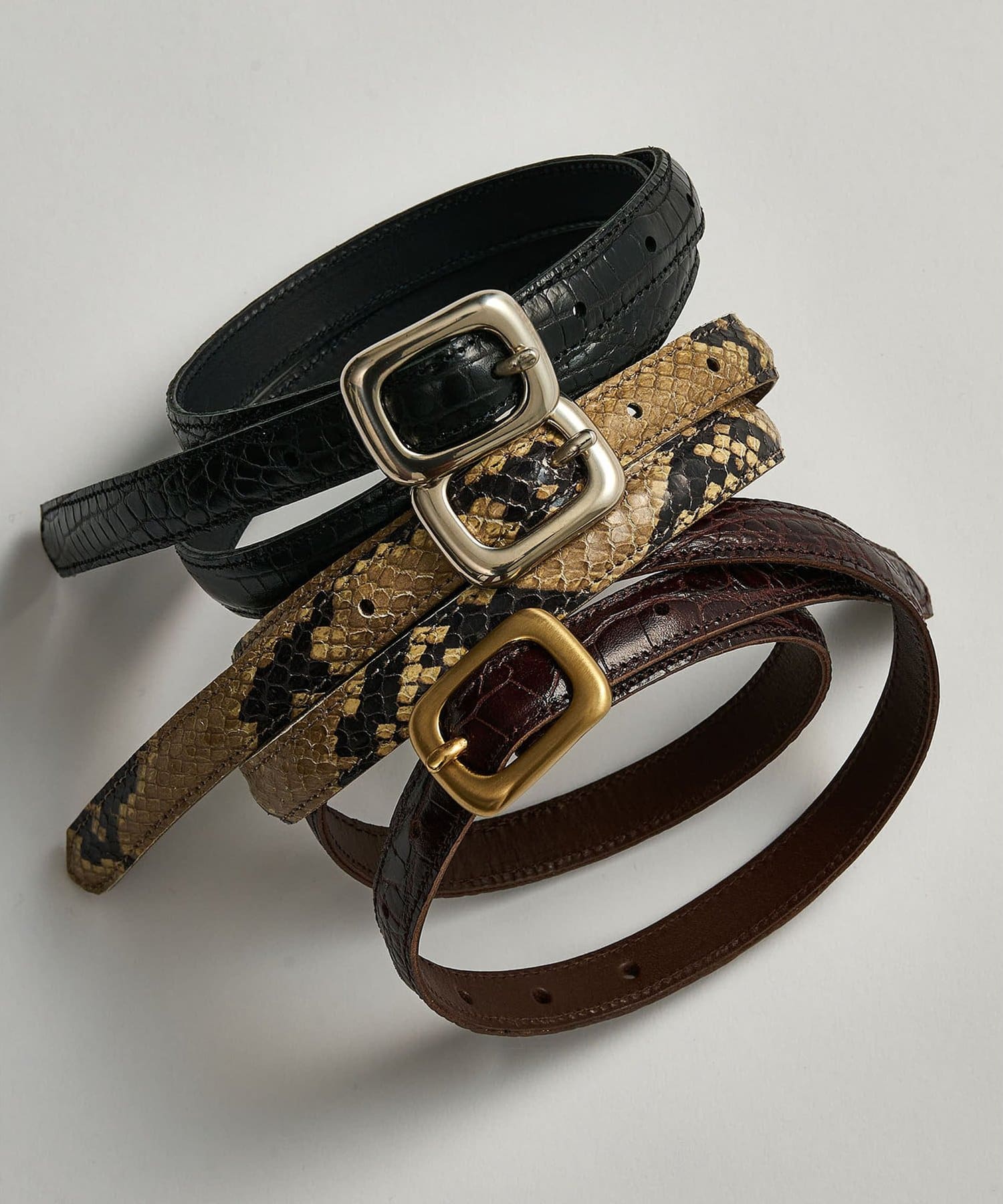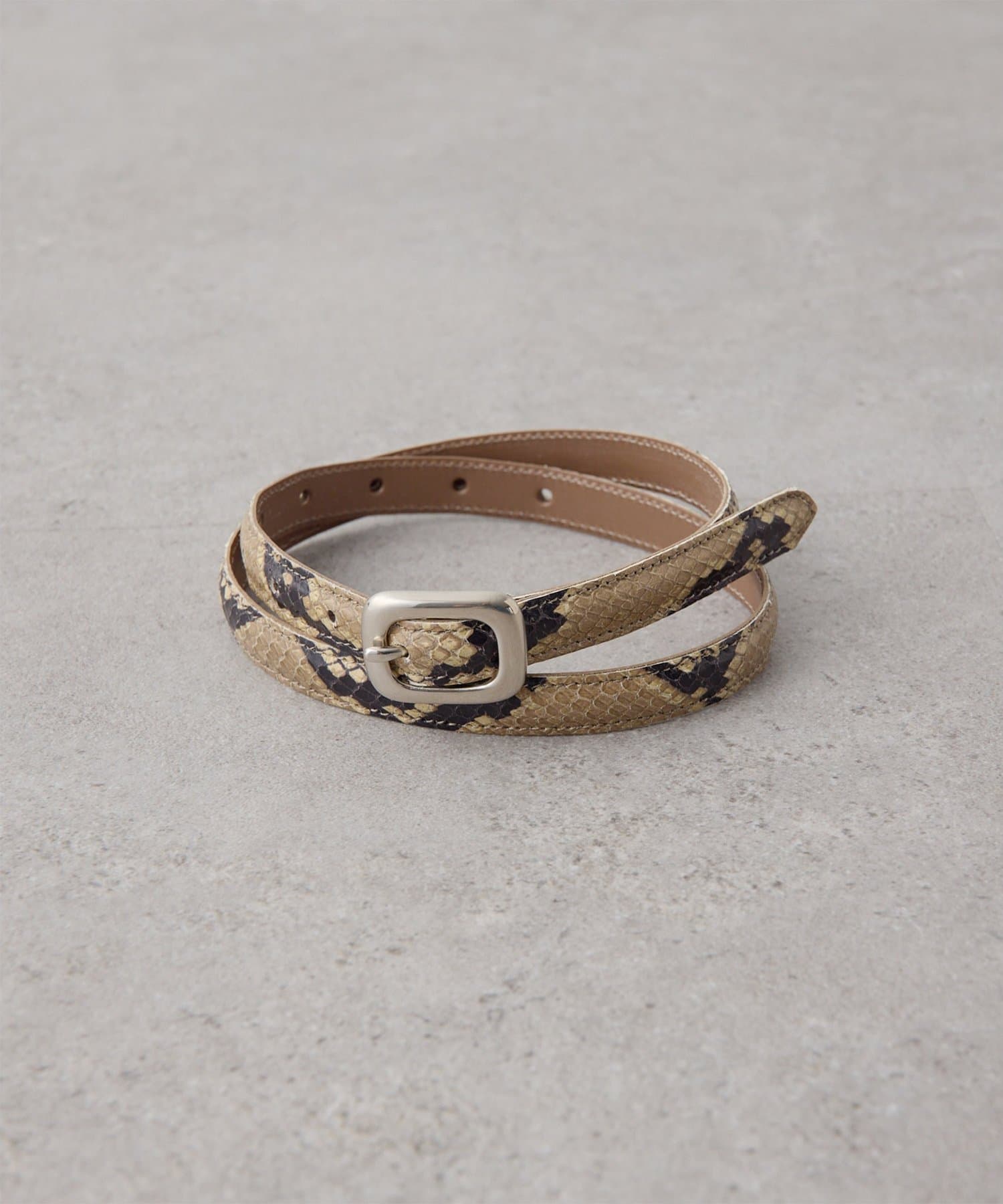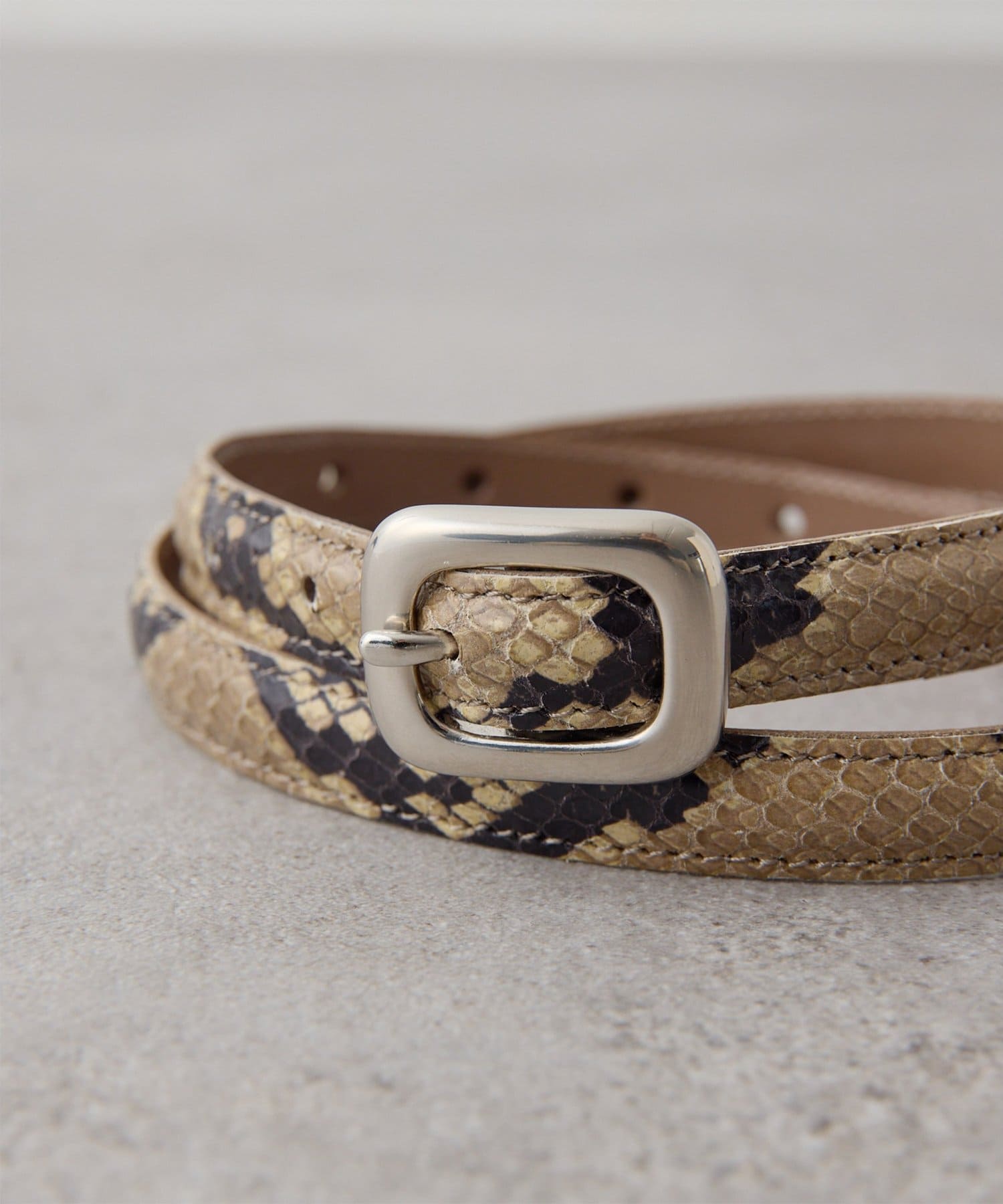 素材使いにこだわりが光る、型押しパイソン細ベルト