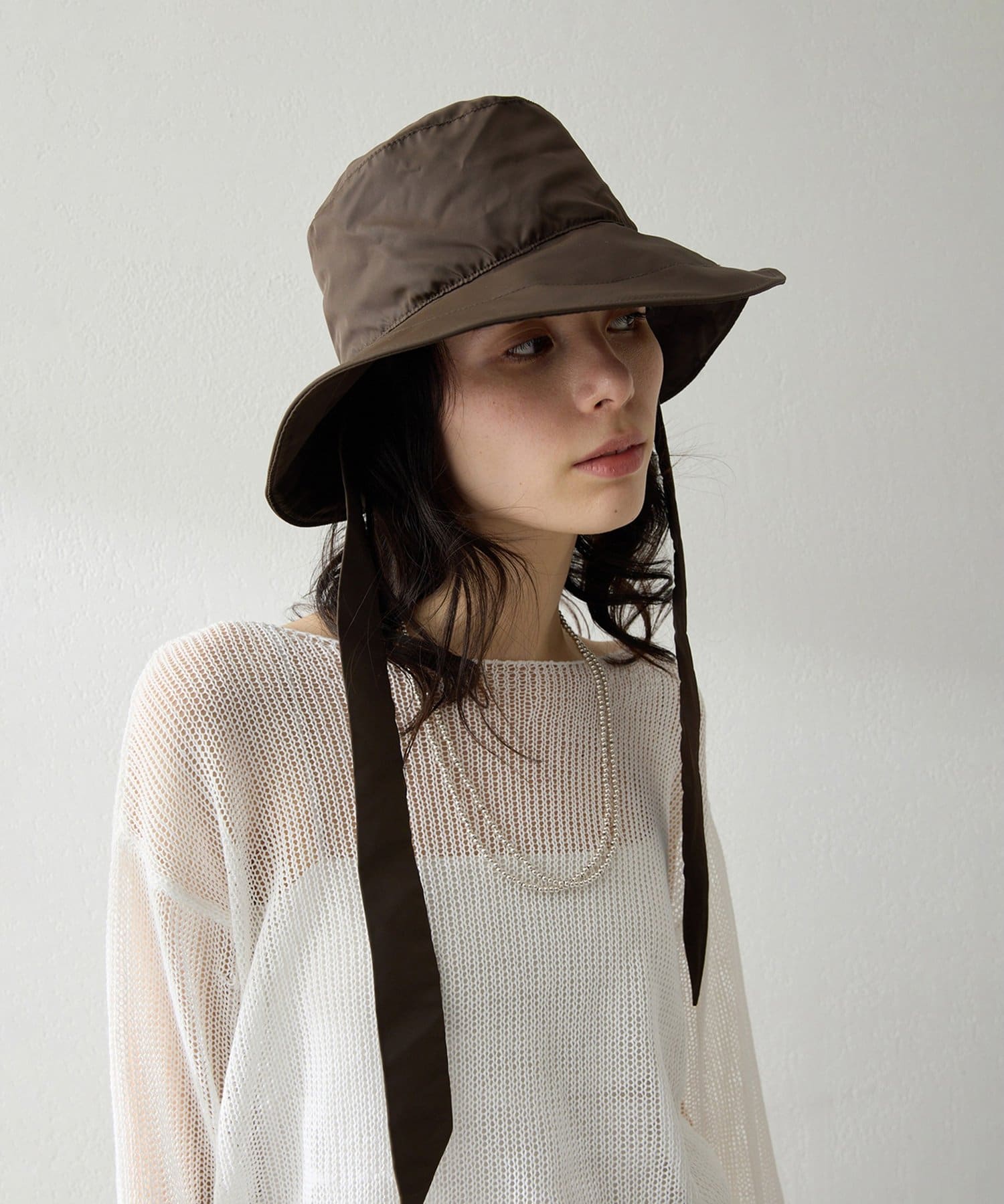 ■太めの紐がアクセントになり、顔周りに程よい個性をプラス。