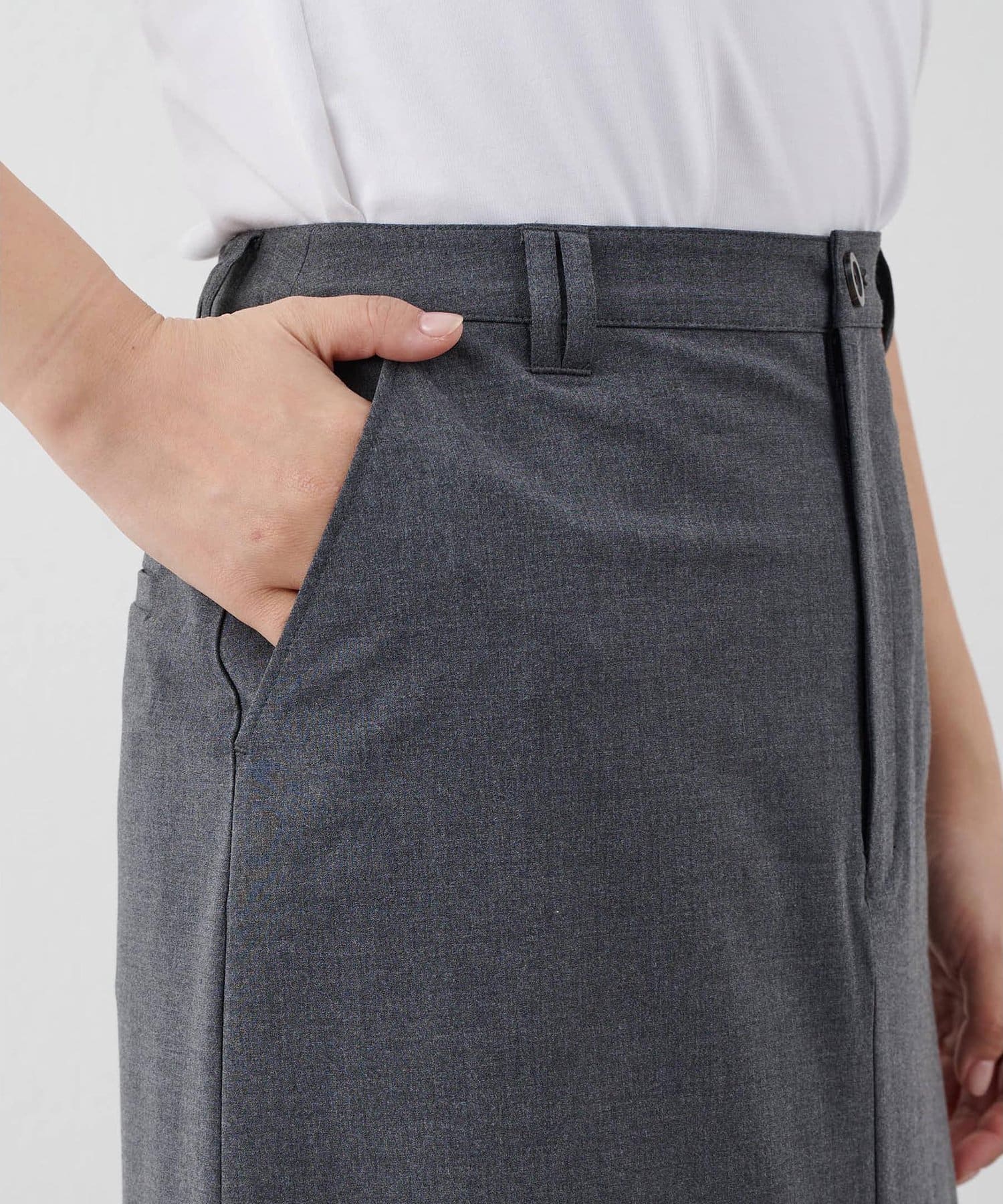 シンプルコーデも決まりやすい、シックな前スリットスカート