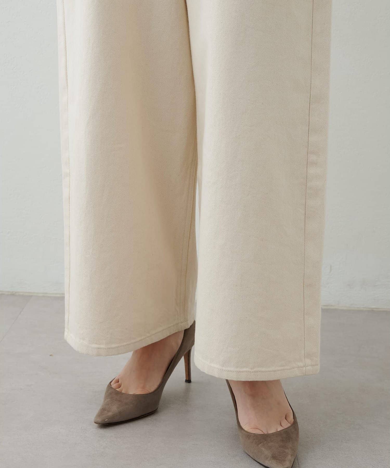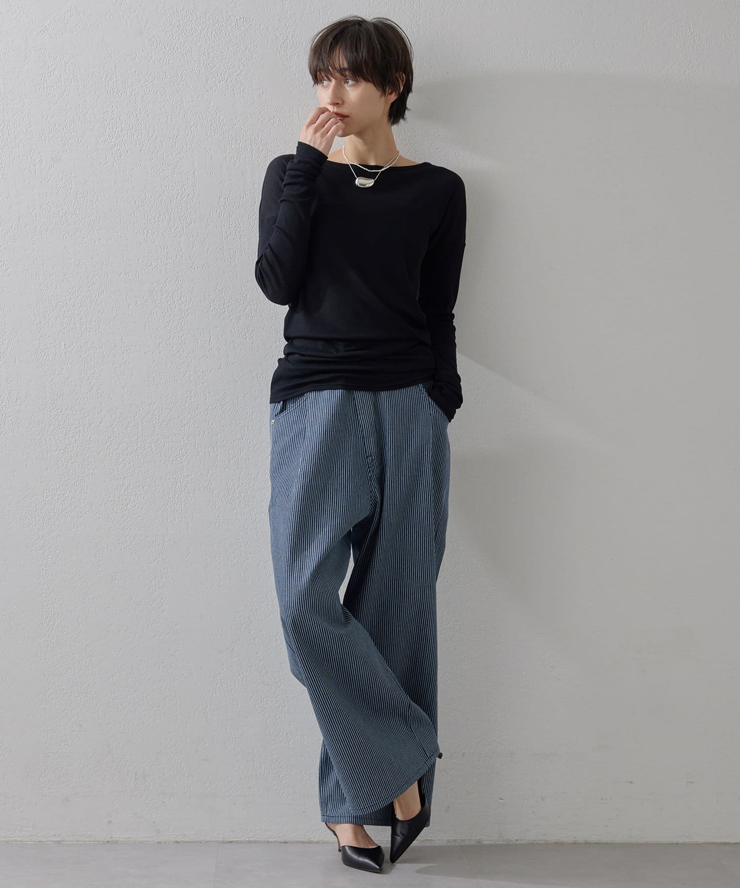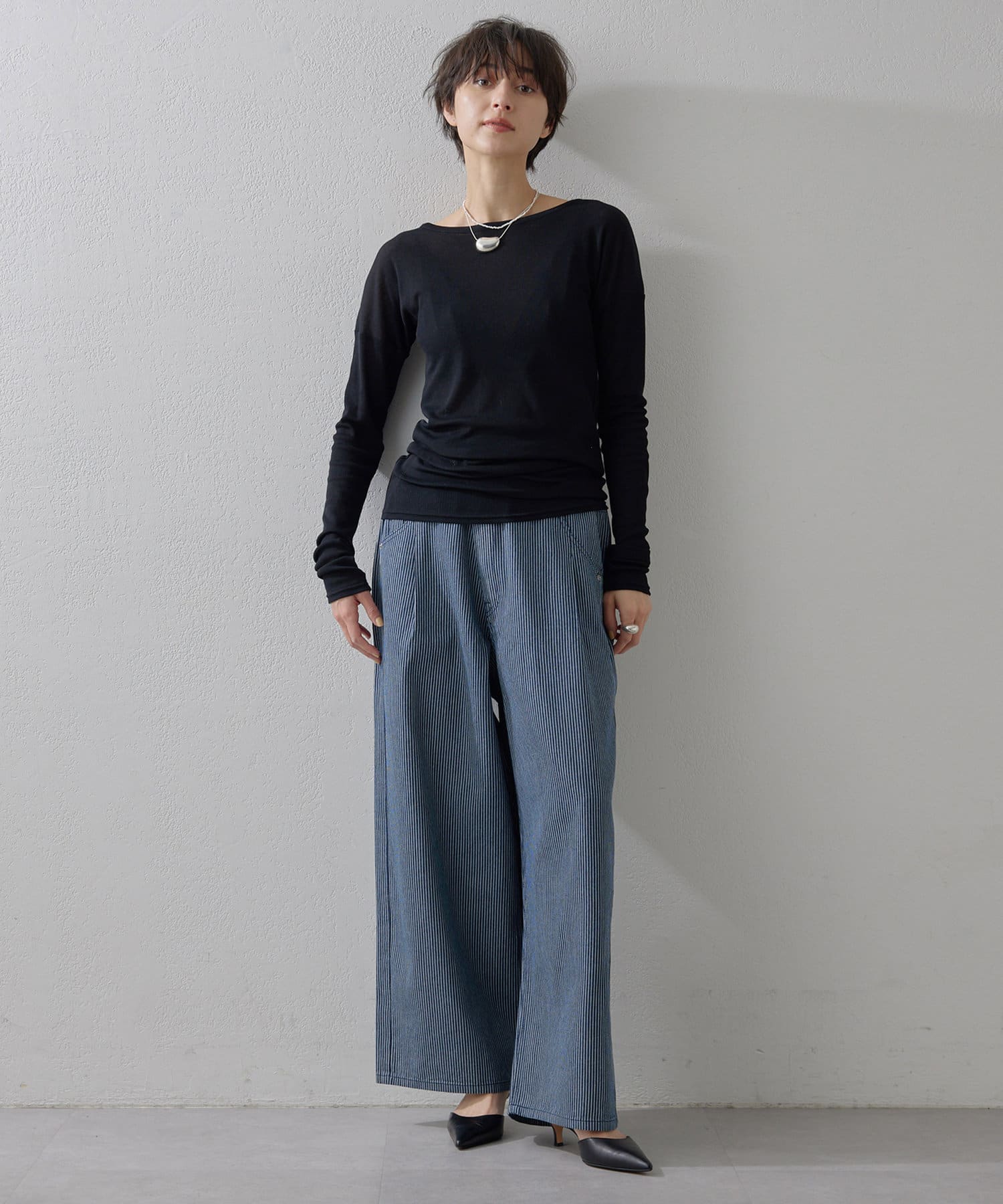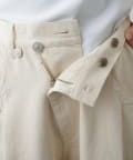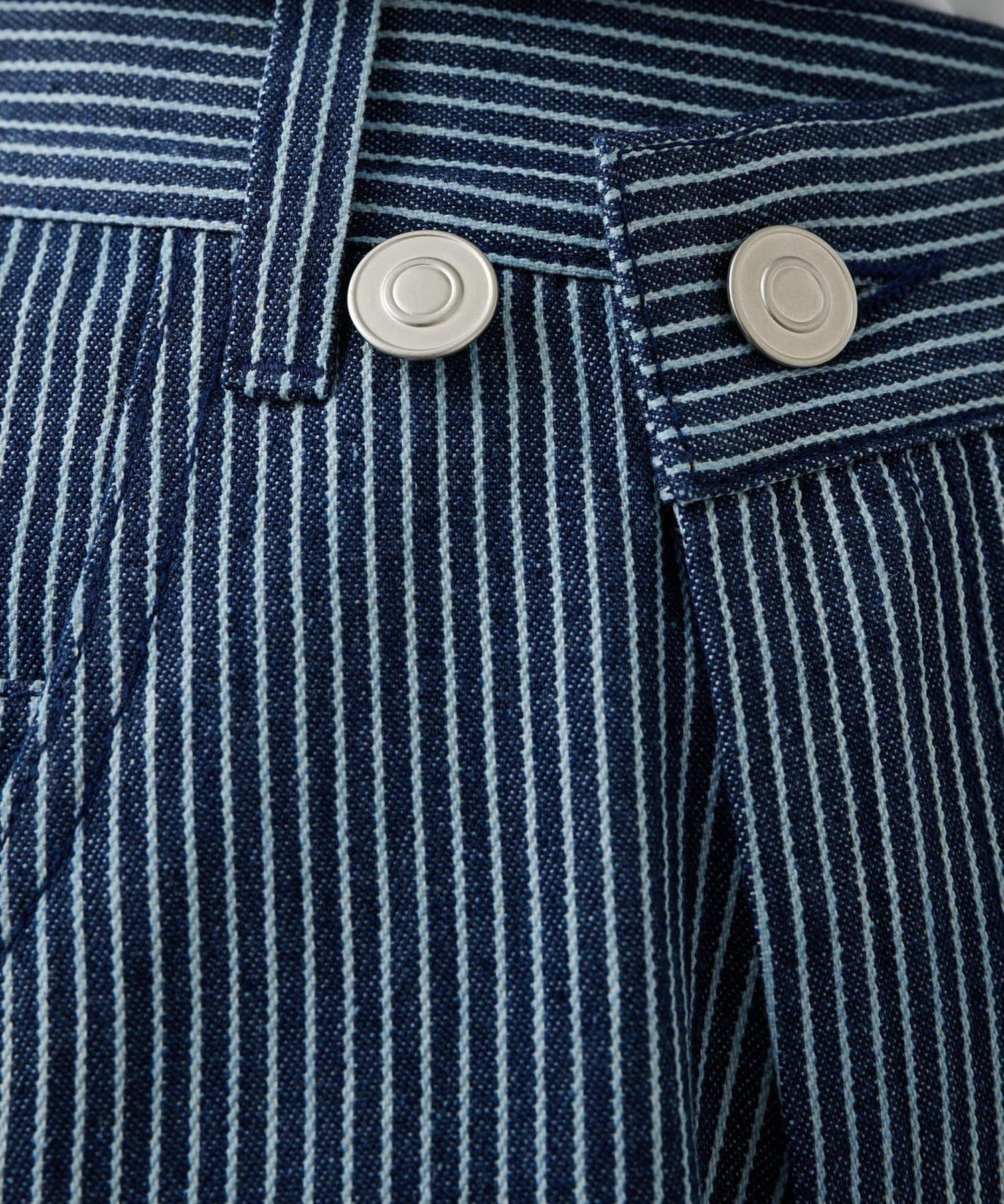 ■オフホワイトは柔らかい風合いのデニム素材にストーンバイオウォッシュ加工、ストライプはヒッコリー素材にワンウォッシュ加工を施し、柔らかい履き心地に。