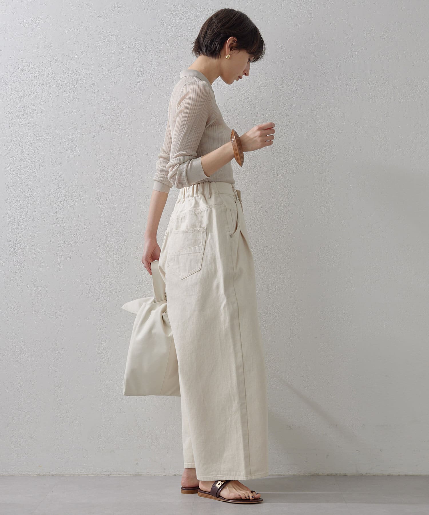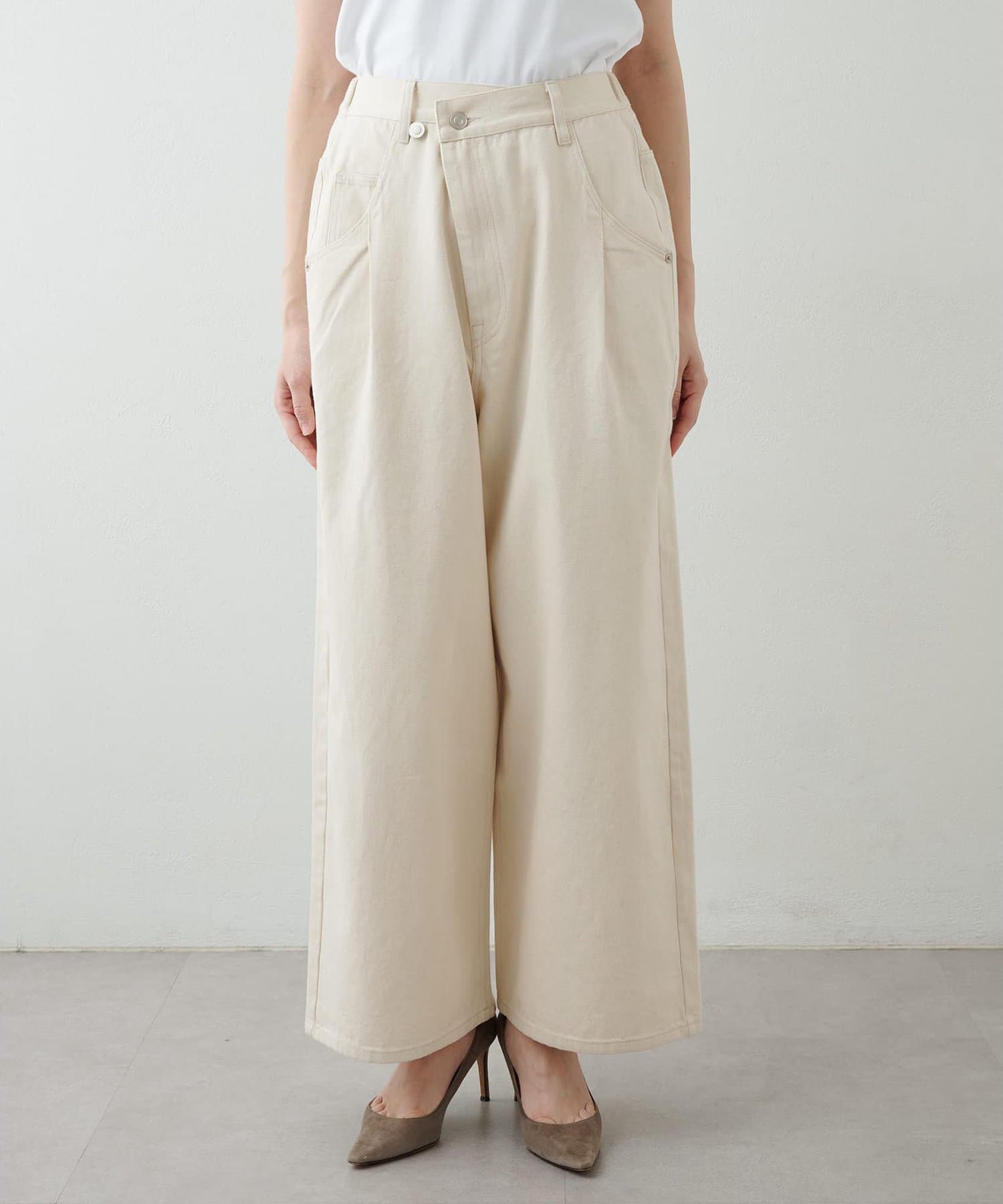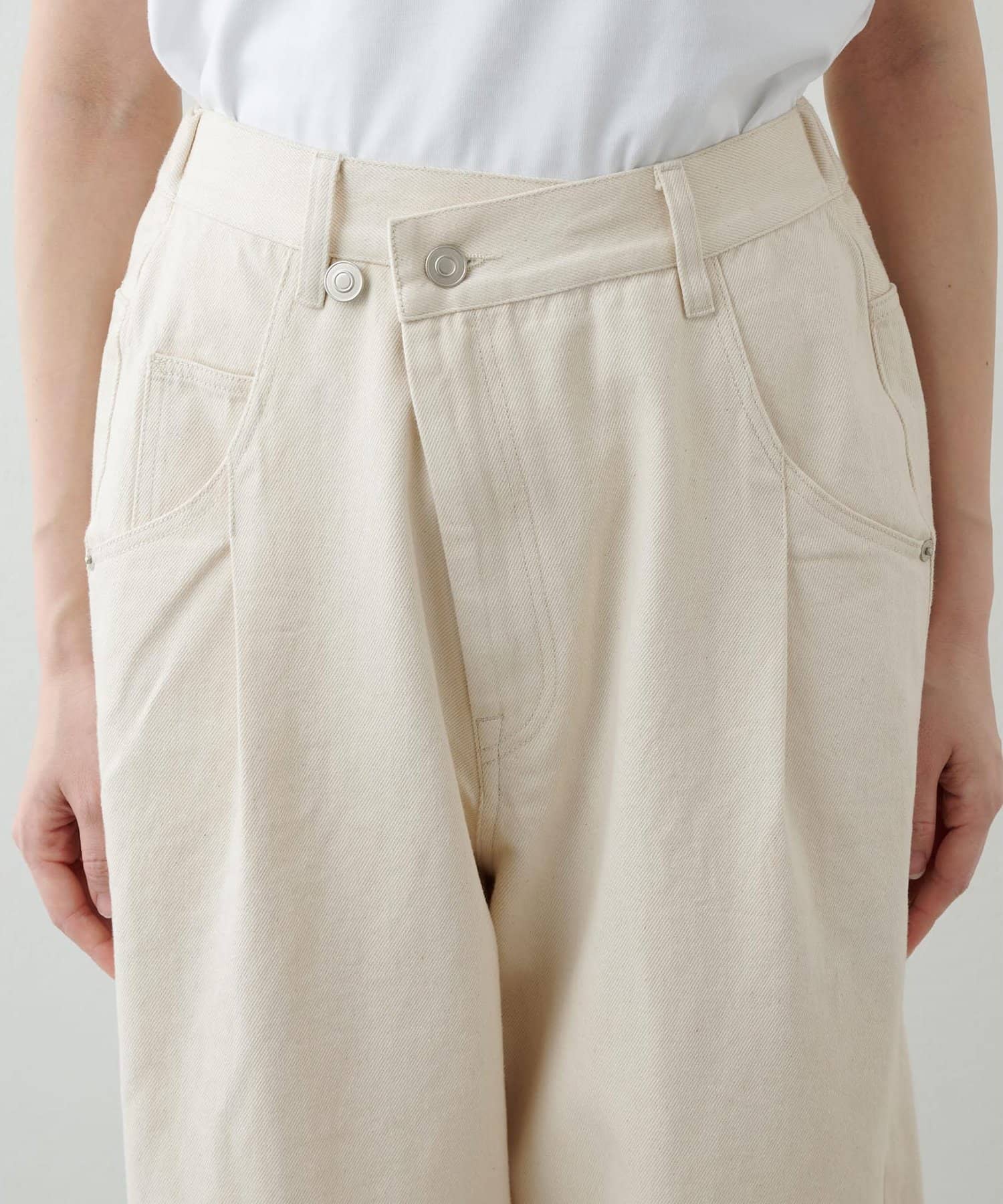ウエストデザインが着こなしのポイントになるラップパンツ