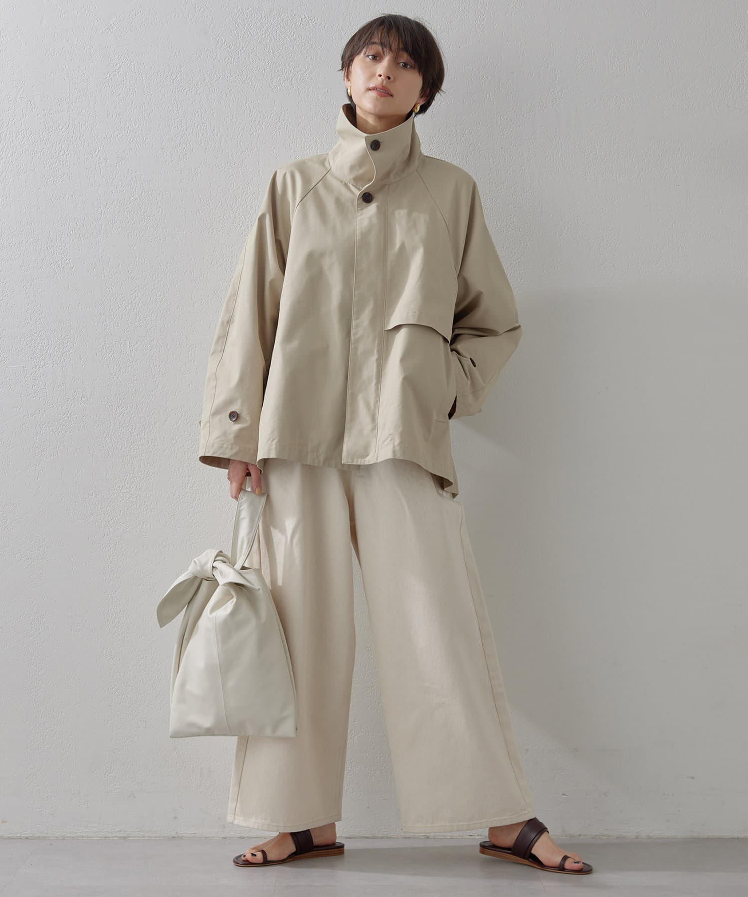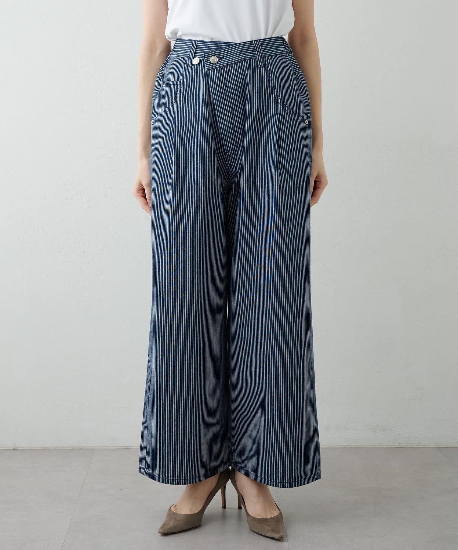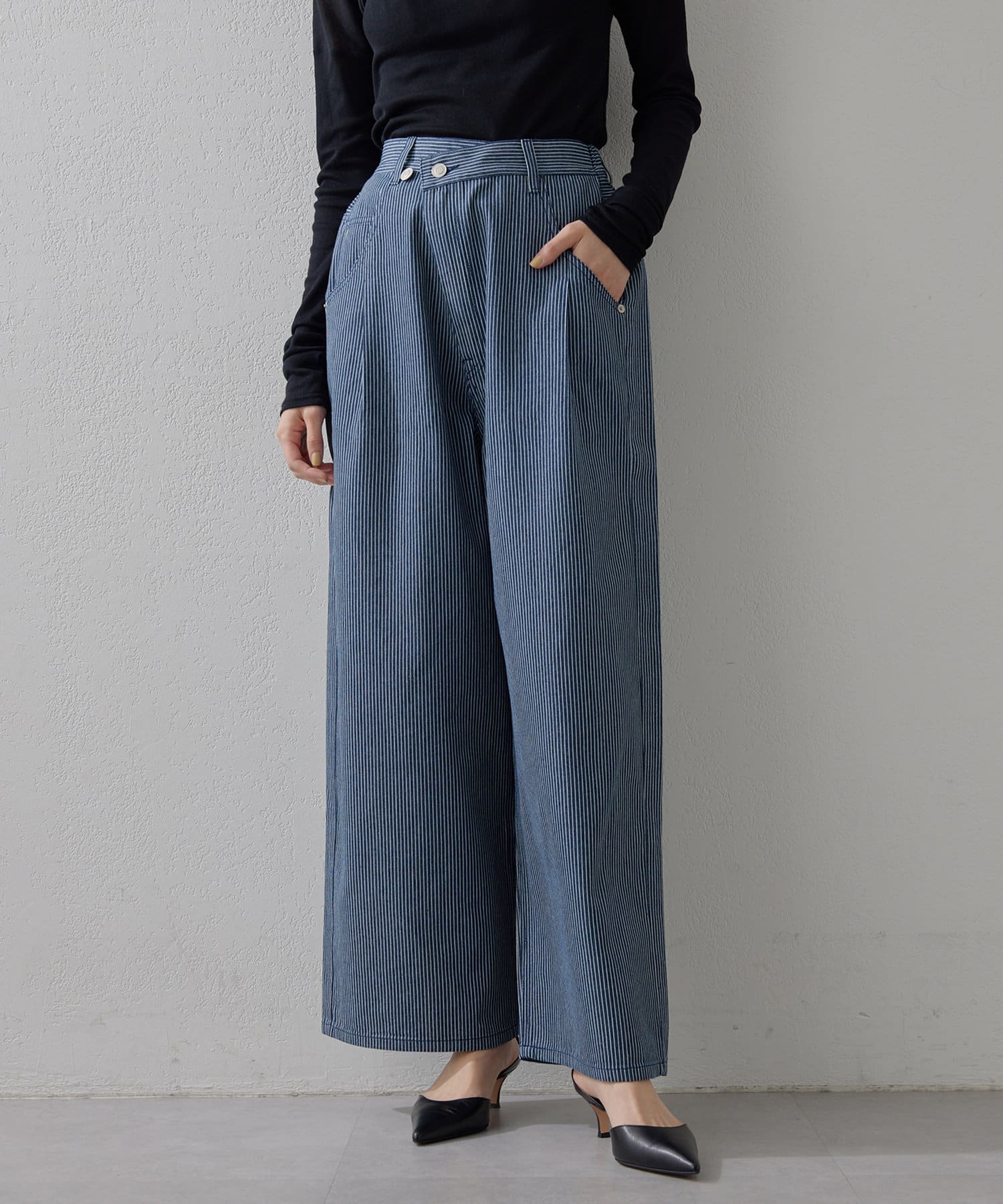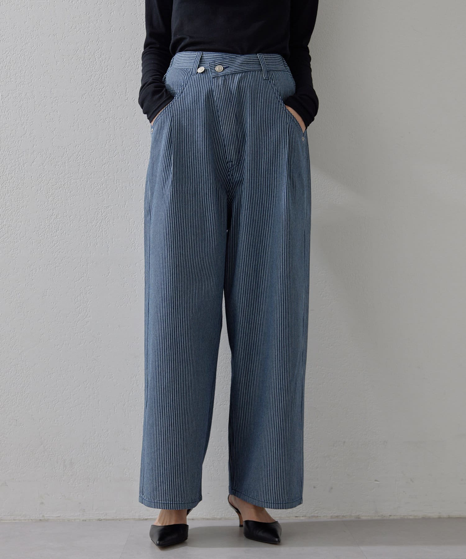 ウエストデザインが着こなしのポイントになるラップパンツ