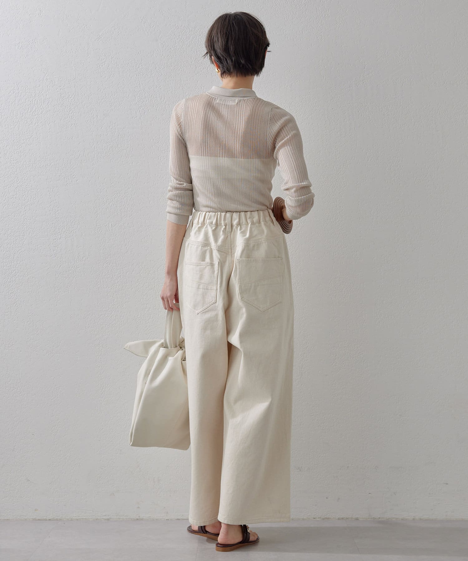 ■後ろウエストをゴム仕様にし、ストレスフリーに着用できるのも嬉しいポイント。
