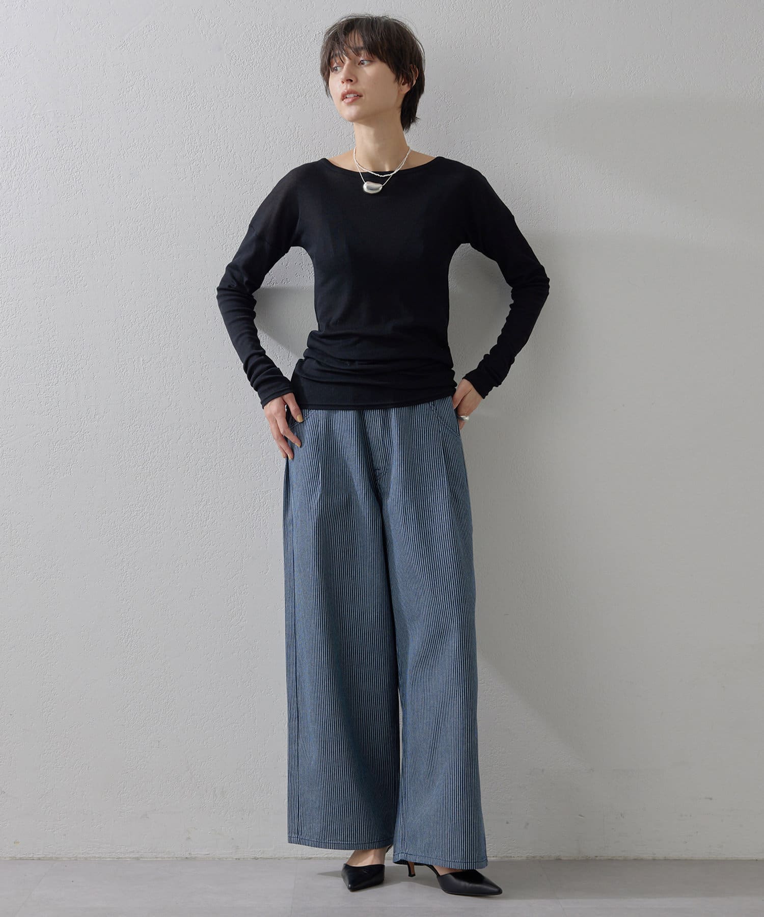 インディゴブルー:カジュアルな抜け感のあるヒッコリーストライプ。