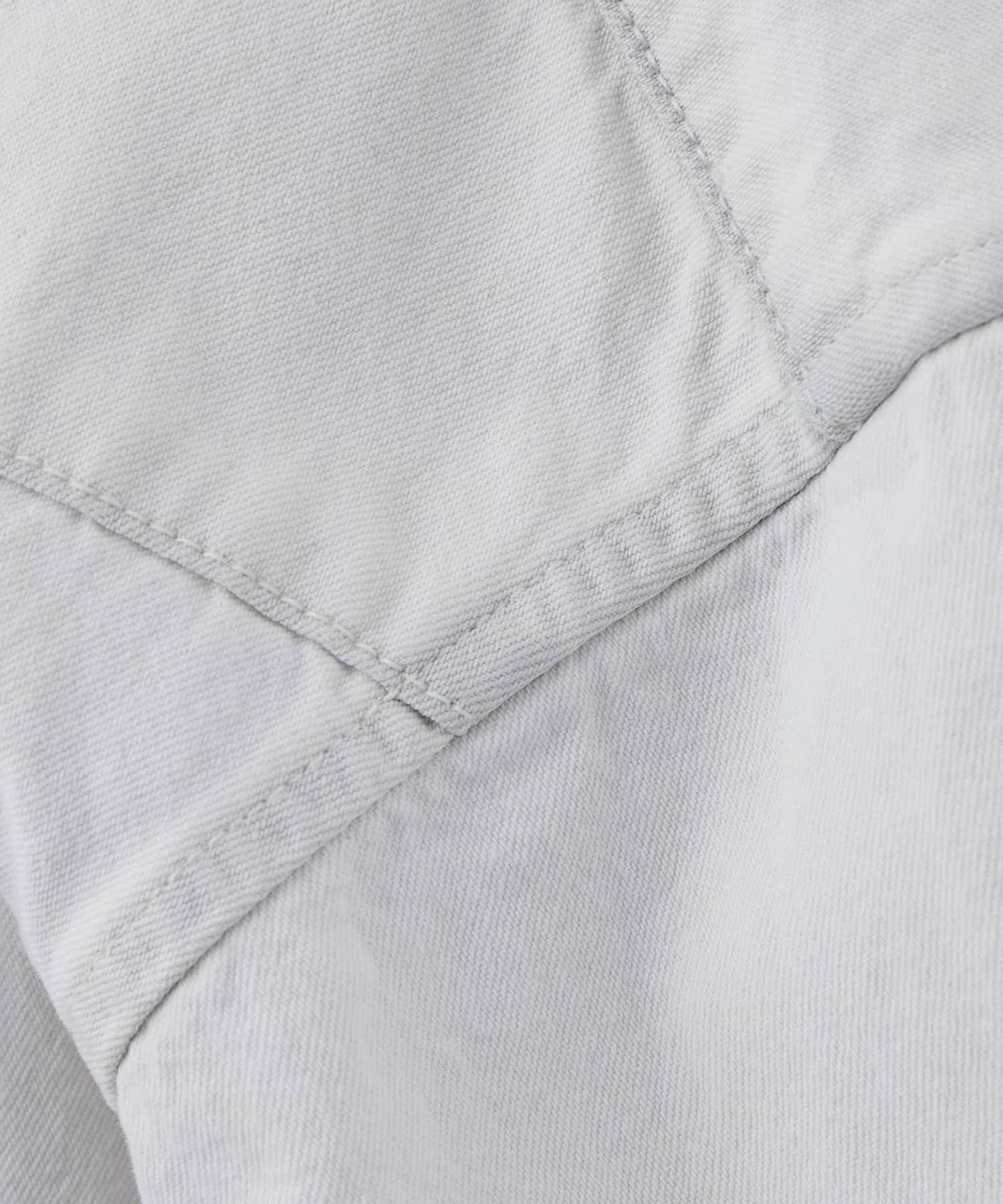 ■オフホワイトはブラックデニムをハイブリーチで脱色しているため、所々に染料が残った色合いが味に。