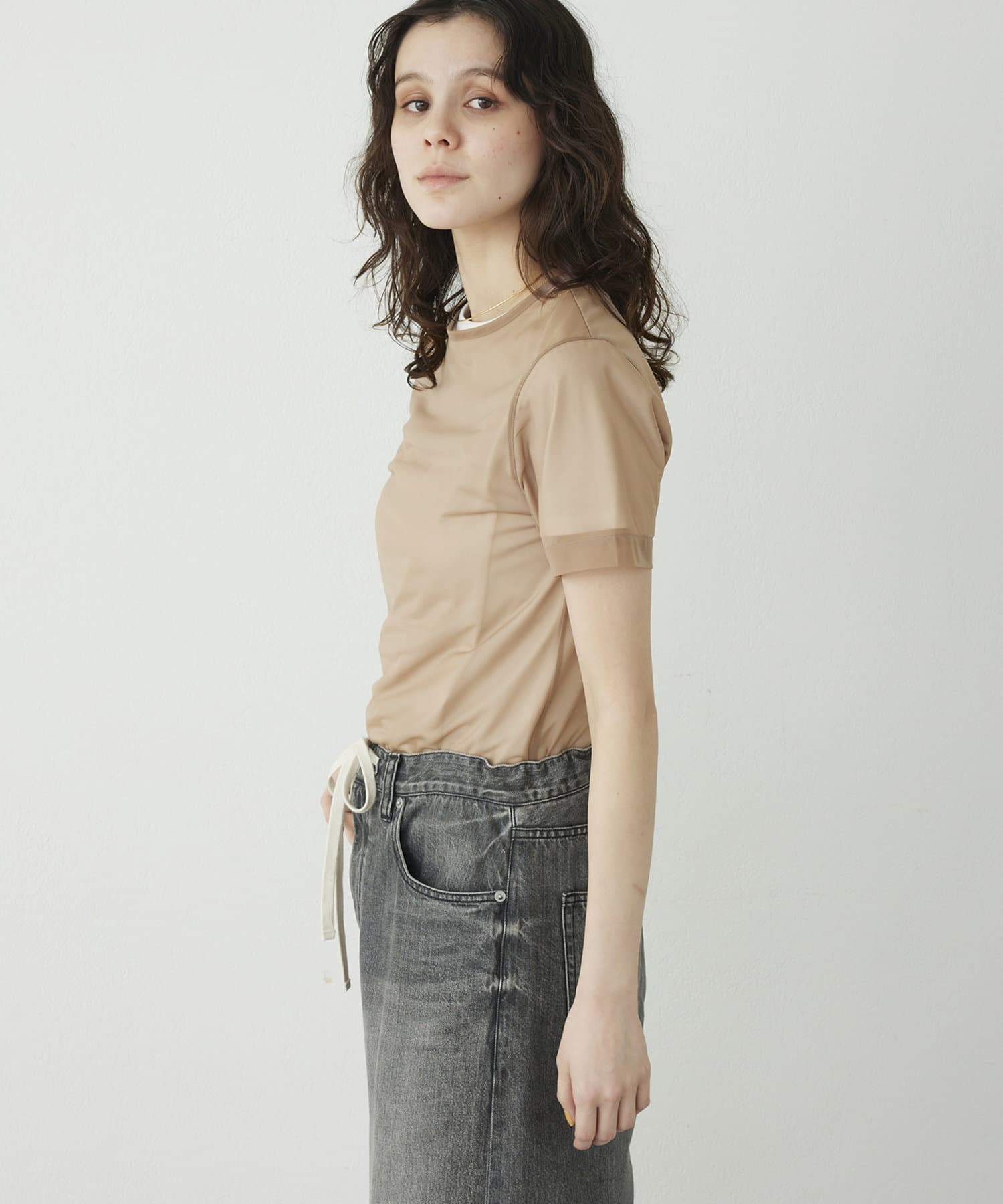 ■ハイゲージのチュール素材を使用した半袖Tシャツ。