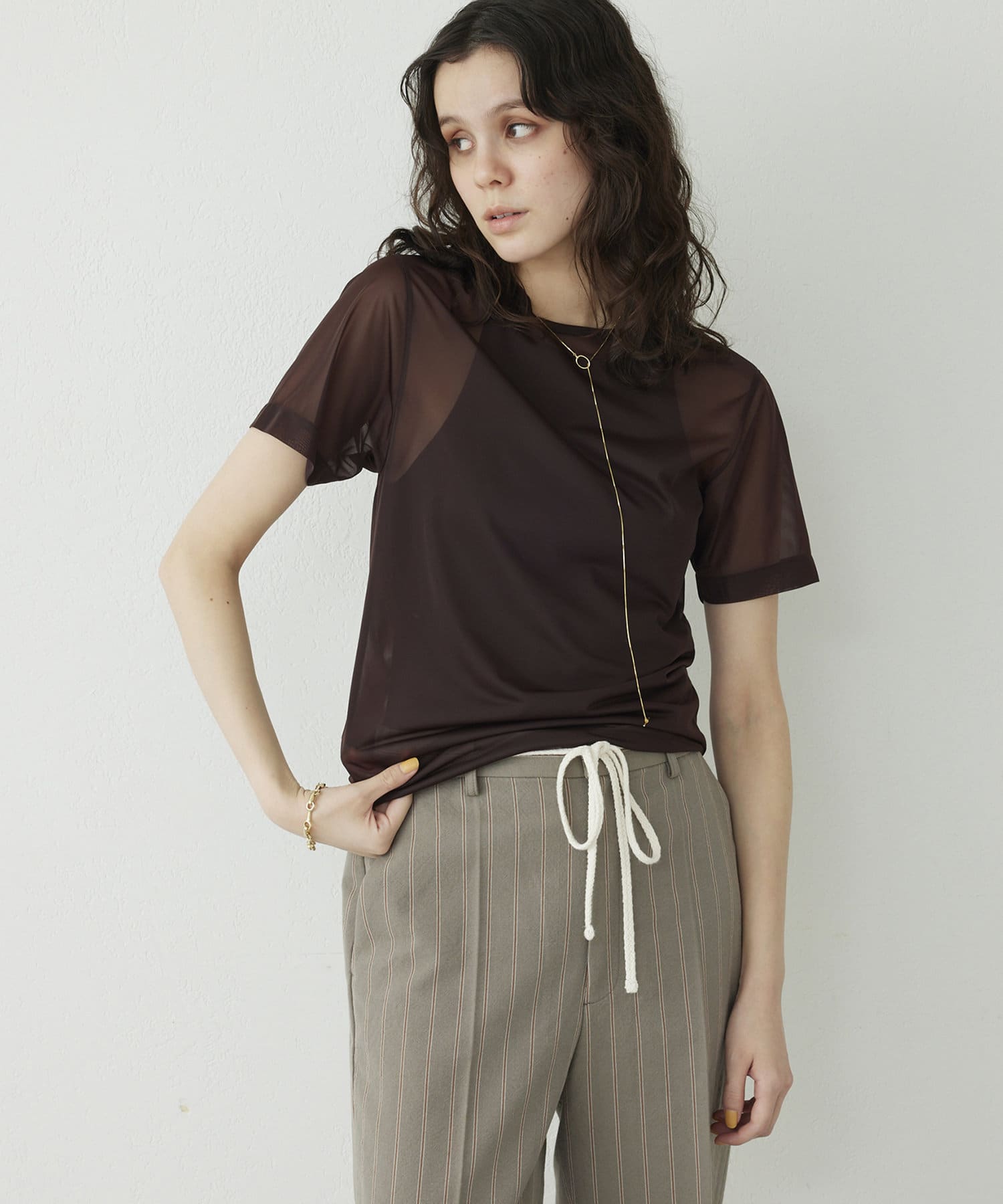 大人のヘルシースタイルを叶える、チュール素材のシアーTEE