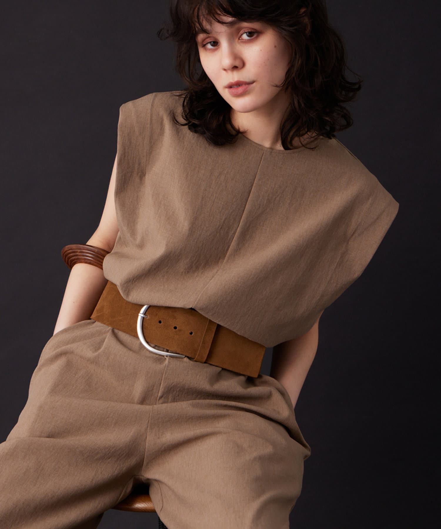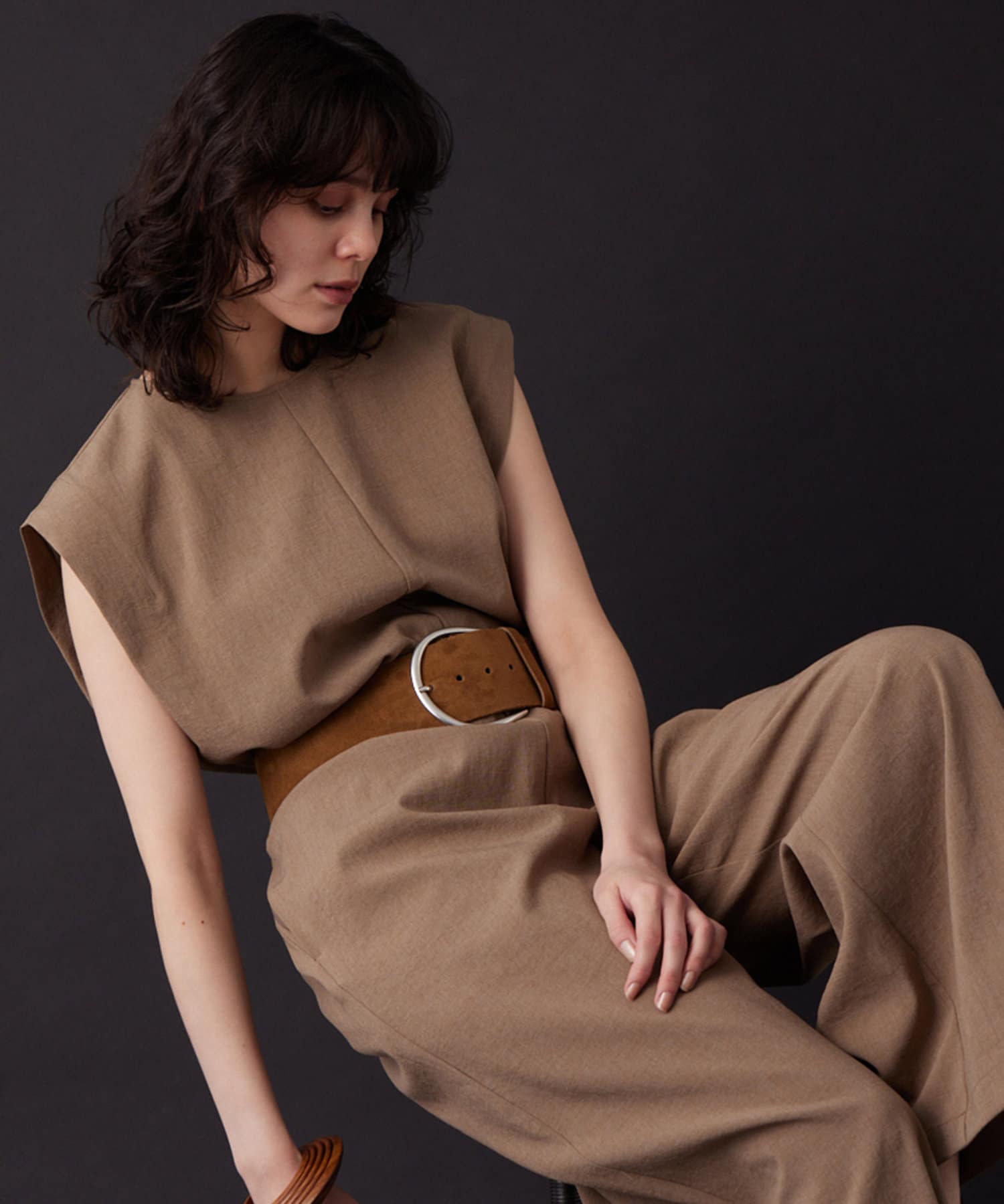 ■ウエストベルトを付けるとハイウエストできれいめな印象に、ベルトを外すとゆったりとしたラフな印象になり、一枚でガラッと雰囲気を変えられるのが◎。