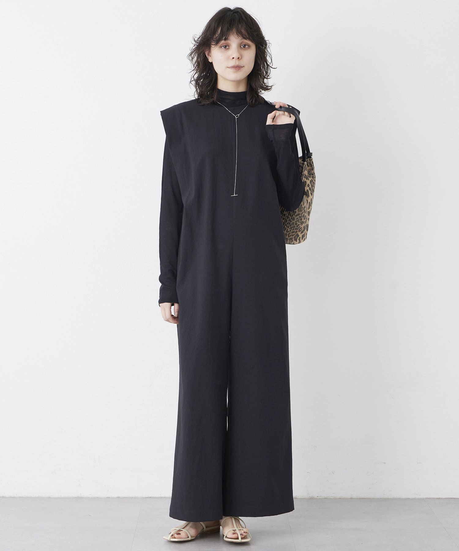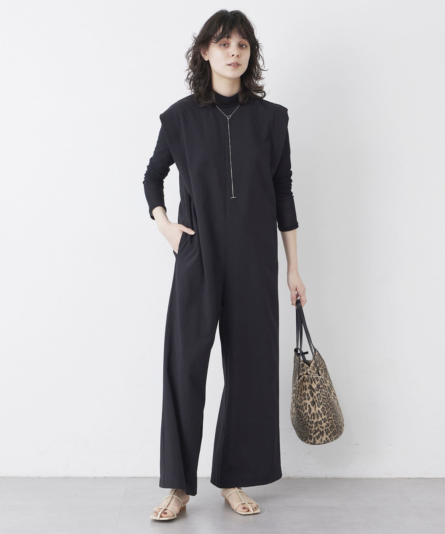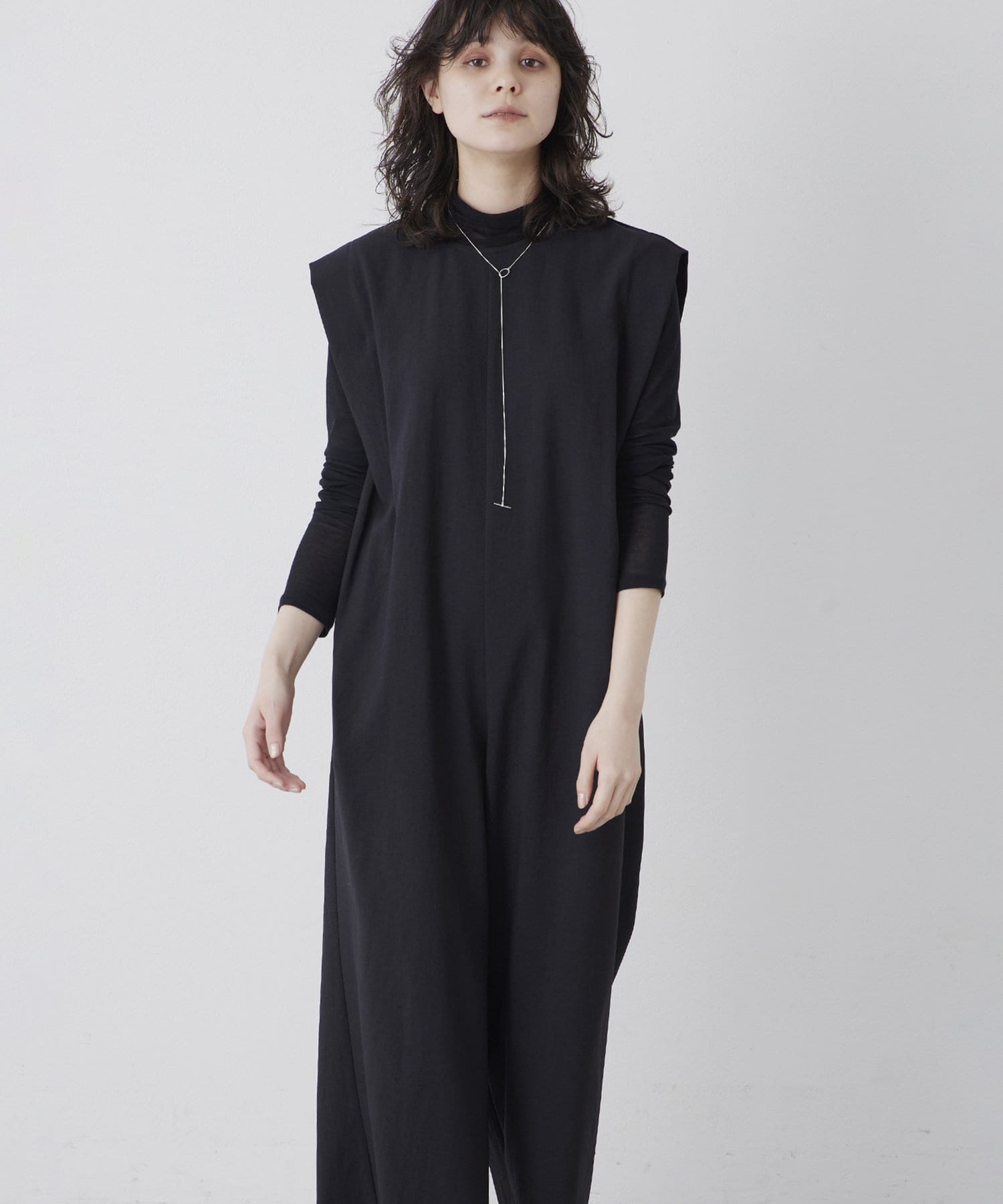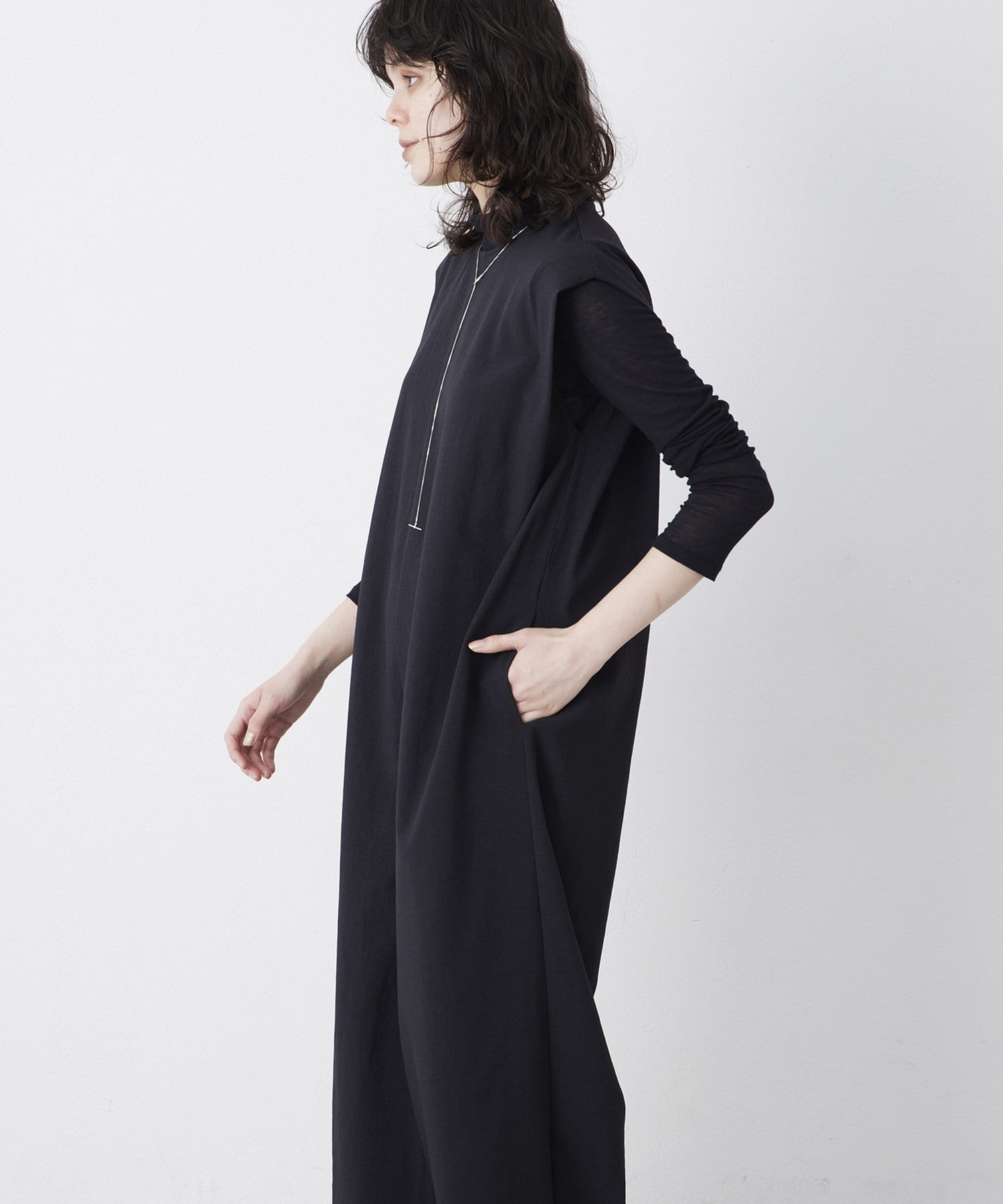 ■ダブルクロス素材のゆったりとしたオールインワン。