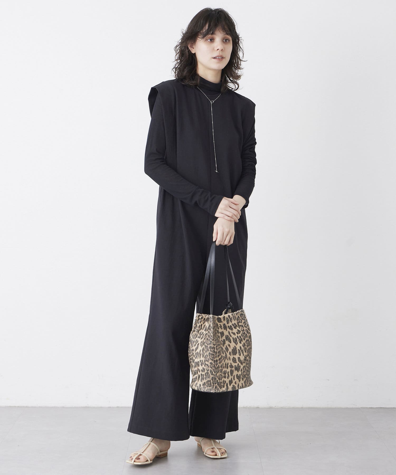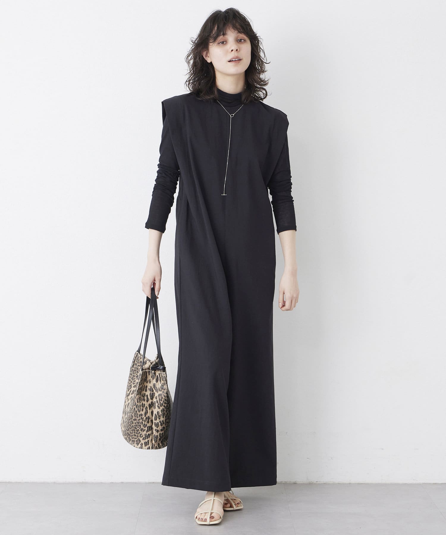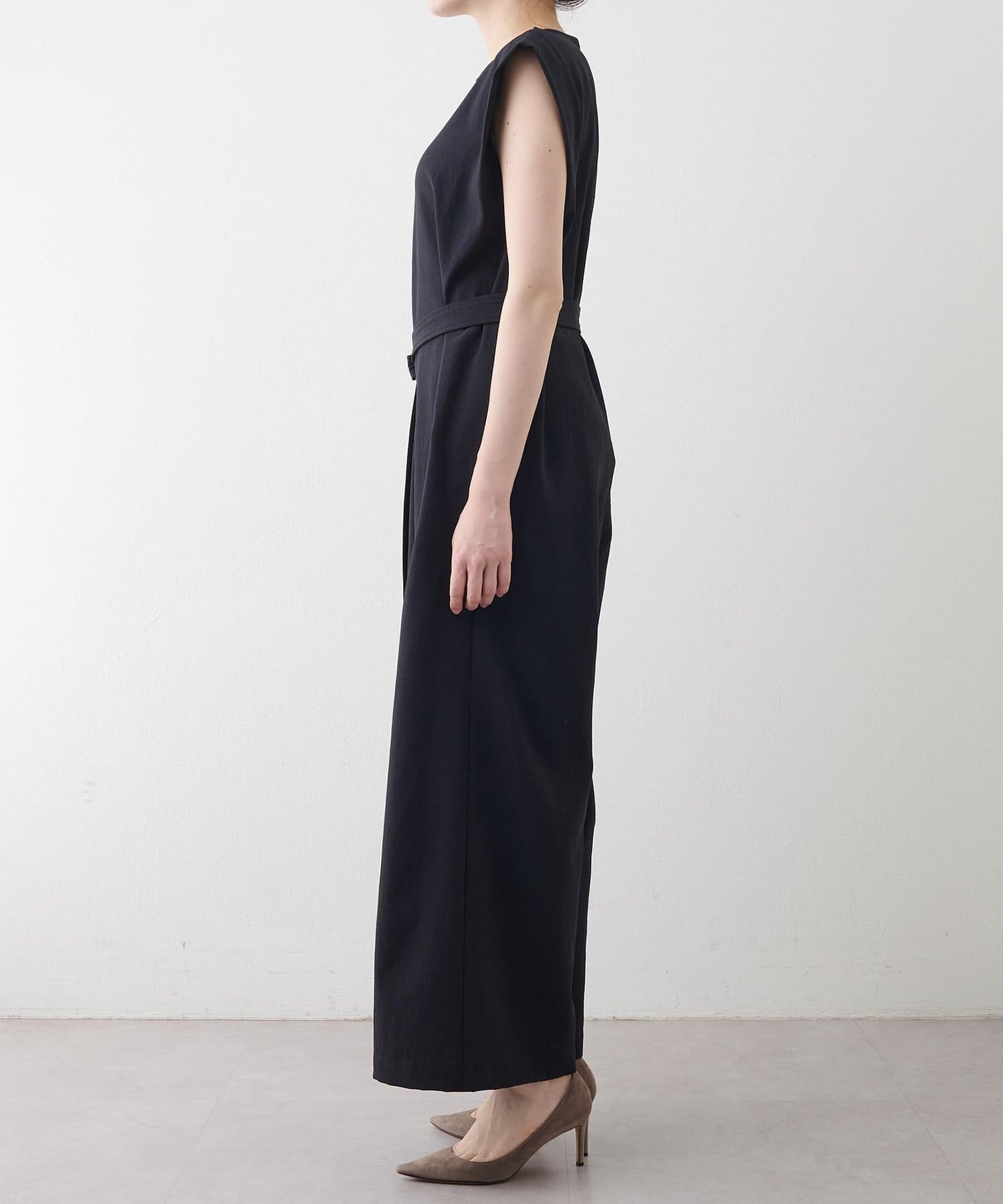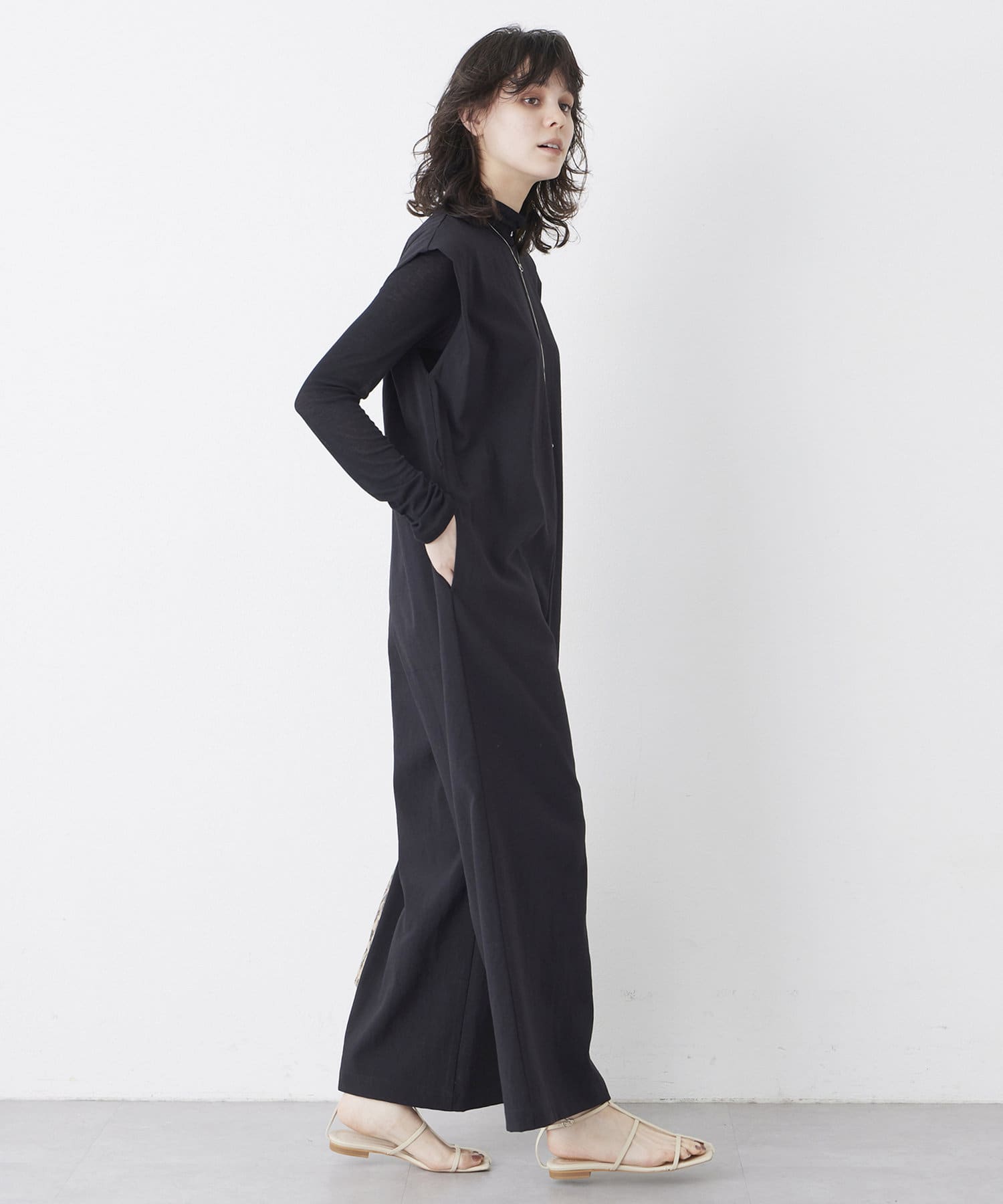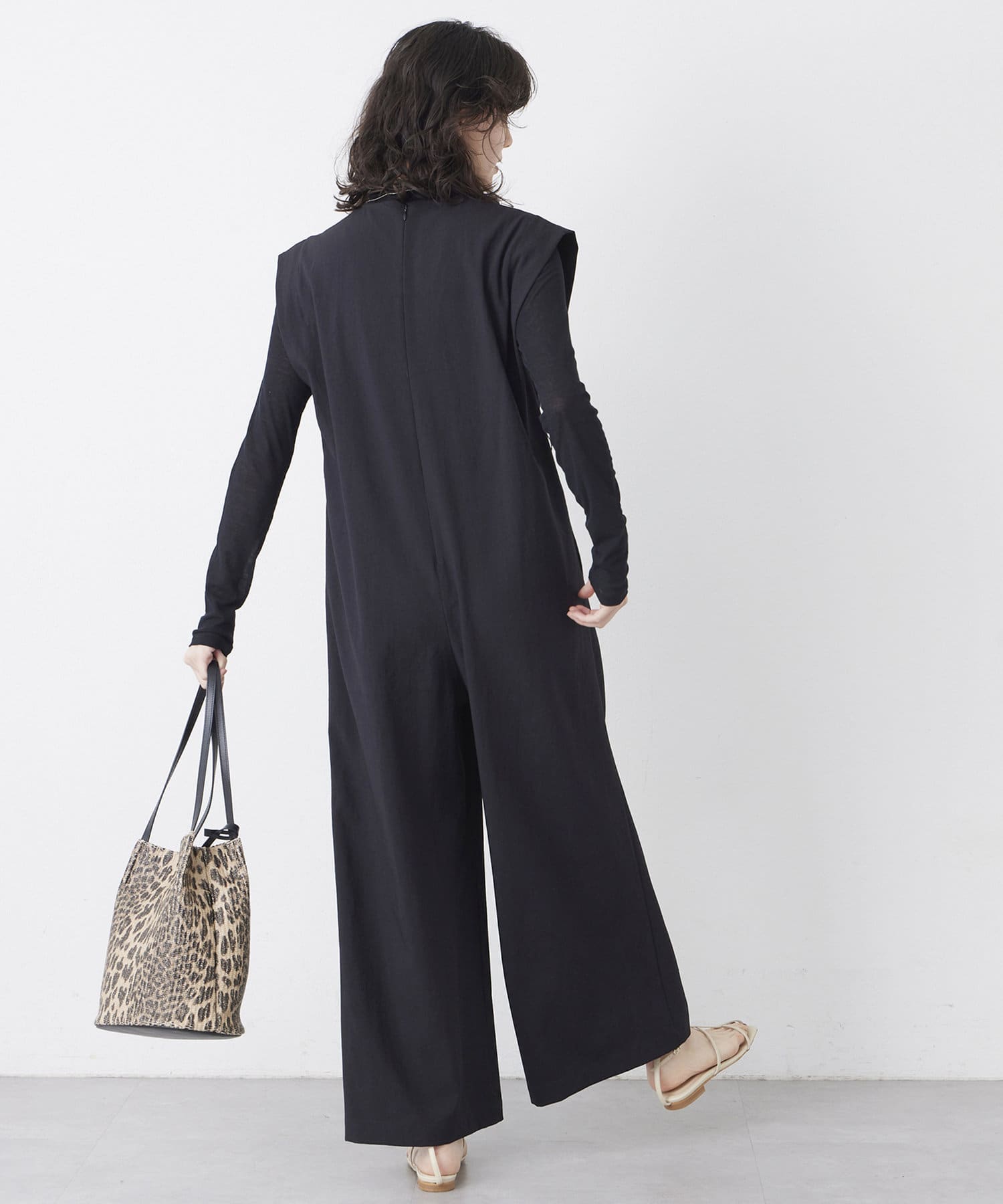 ■ダブルクロス素材のゆったりとしたオールインワン。