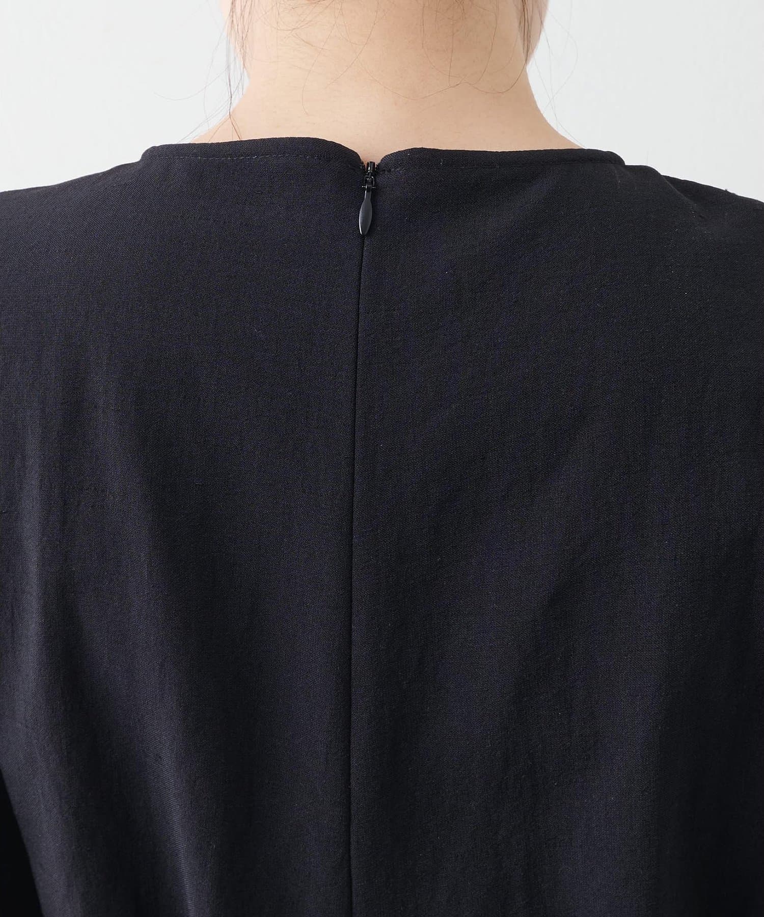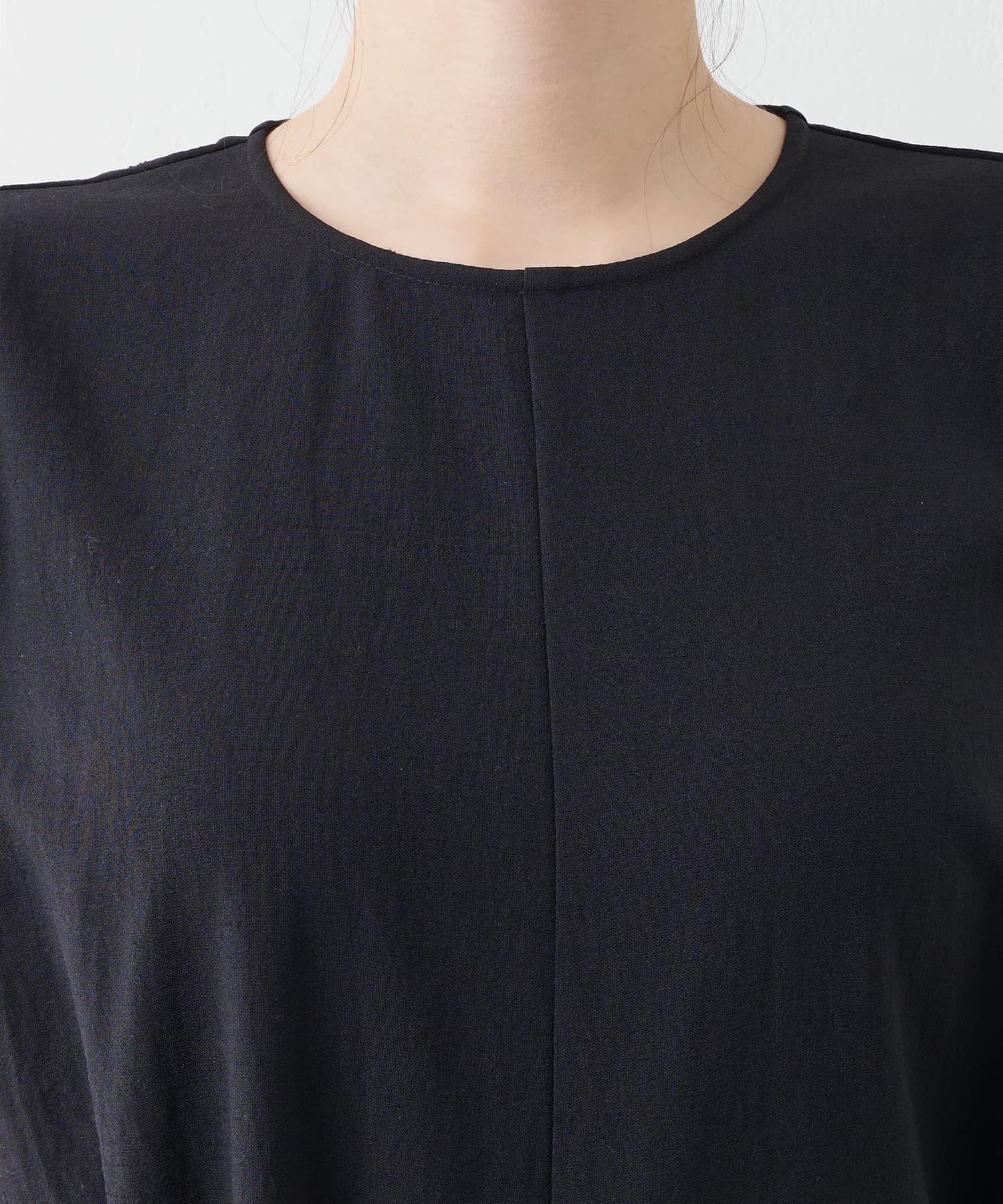 ■身幅をゆったりめにしたリラックス感のある着心地で、肩周りを程よくカバーしてくれるフレンチスリーブもポイント。