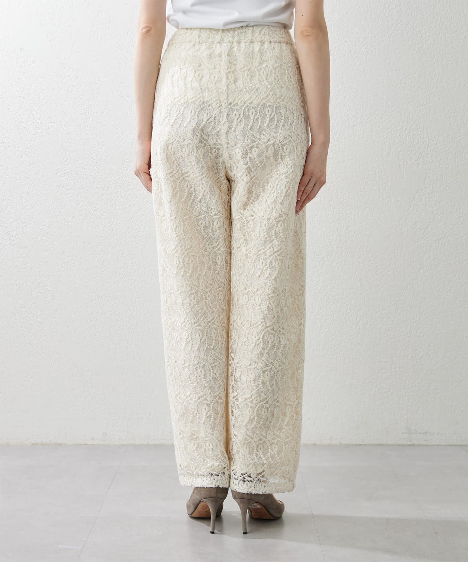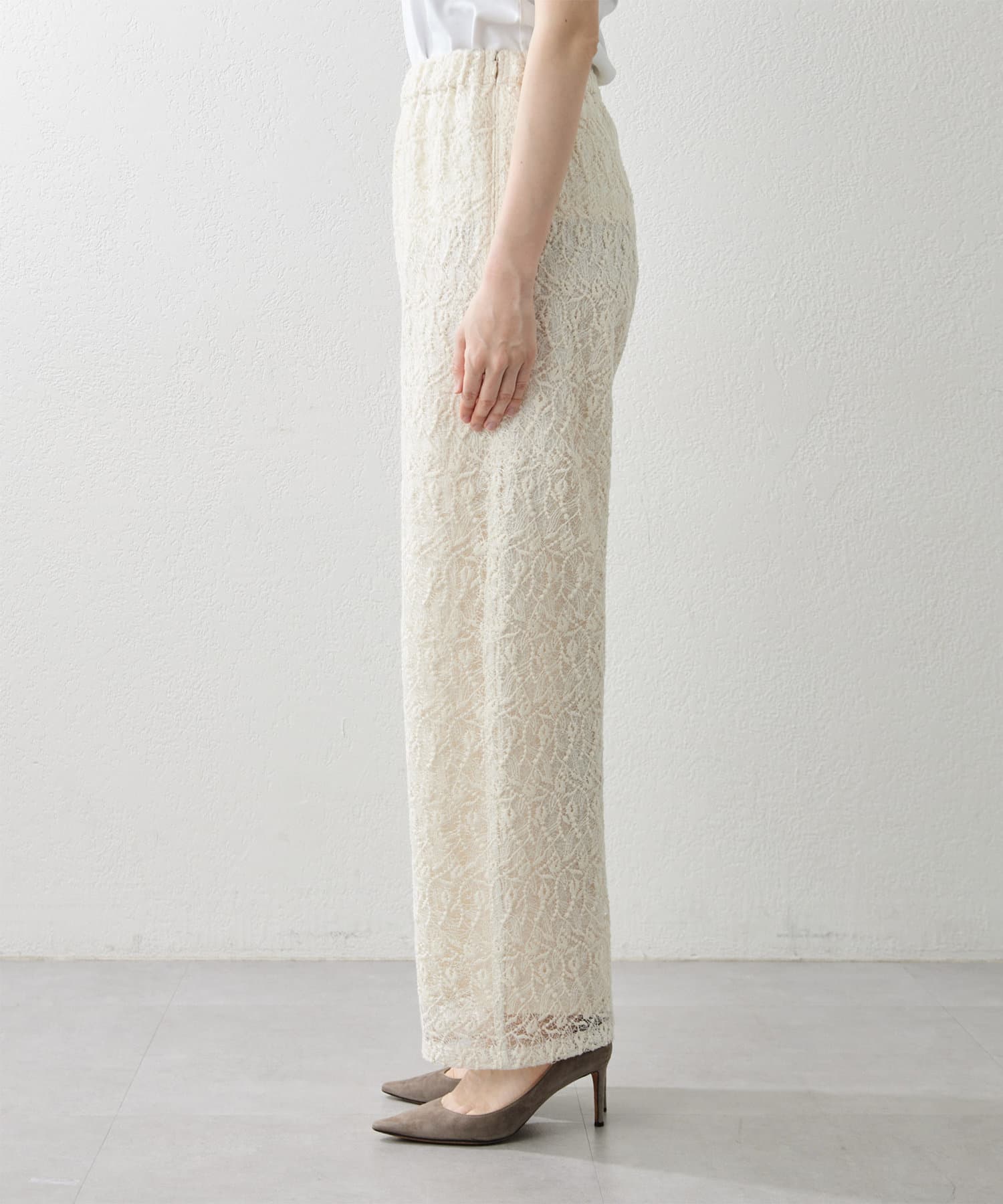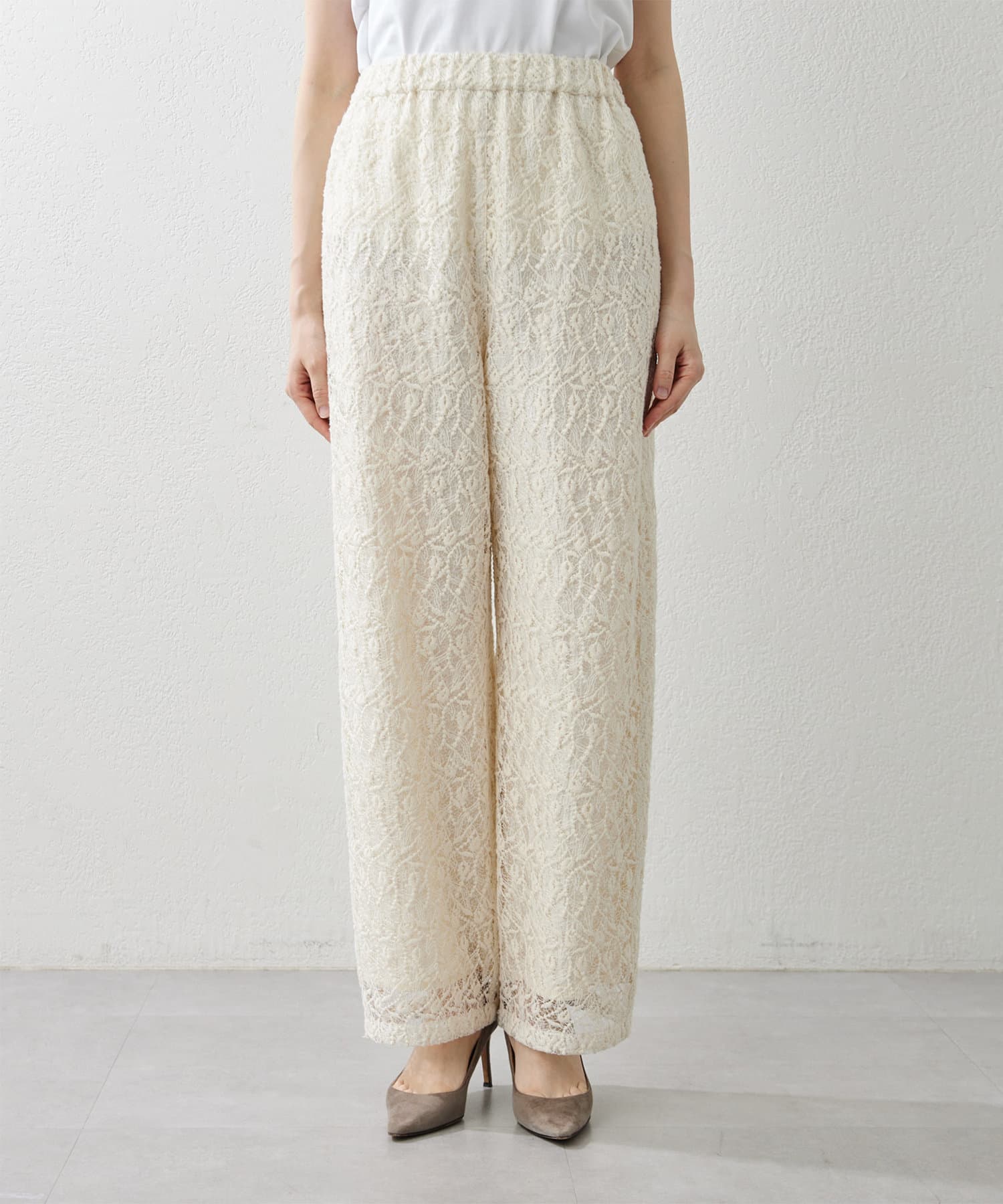 ■刺繍レースがコーディネートに華やかさをプラスするワイドパンツ。