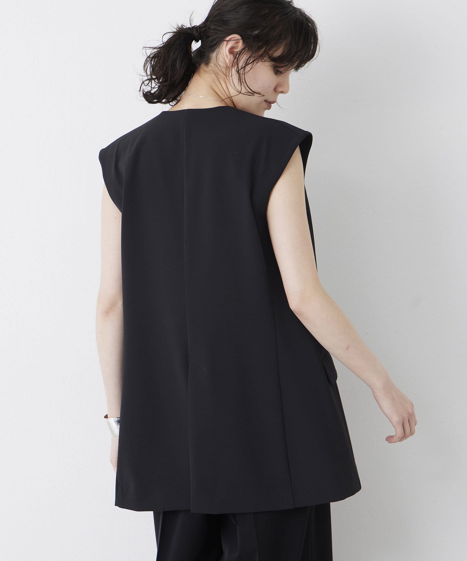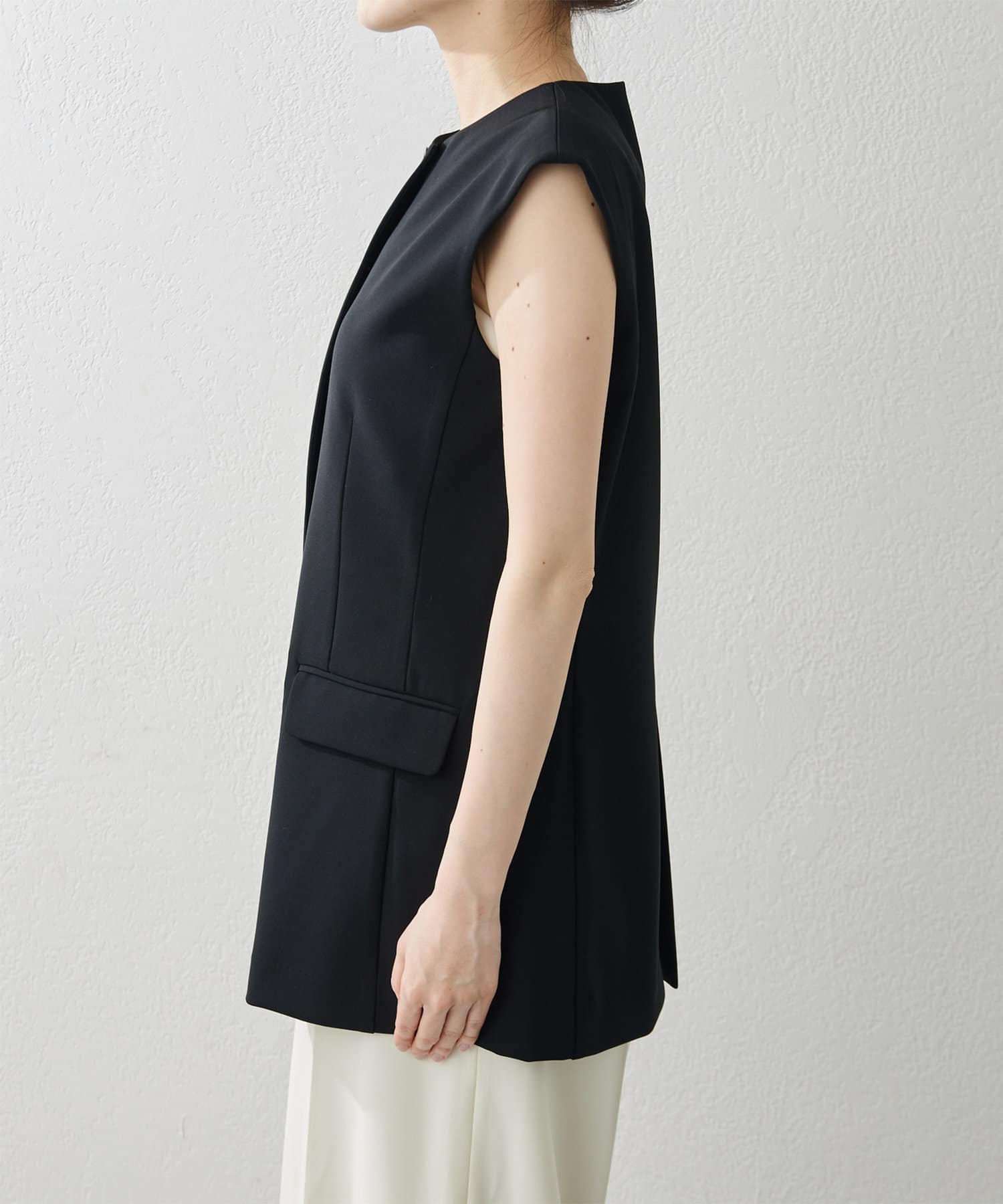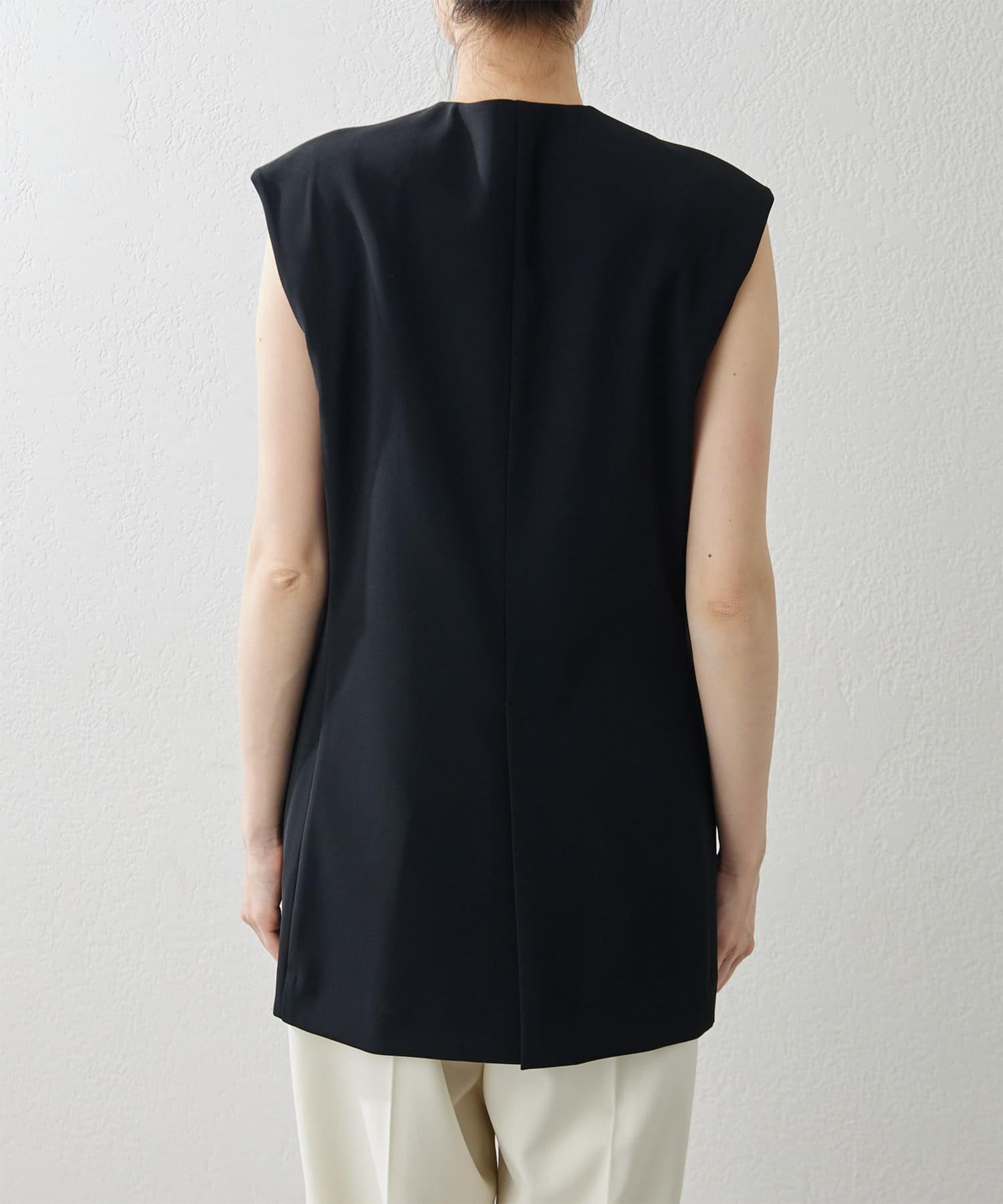 ■膨らみのあるダブルクロス素材を使用したクルーネックジレ。