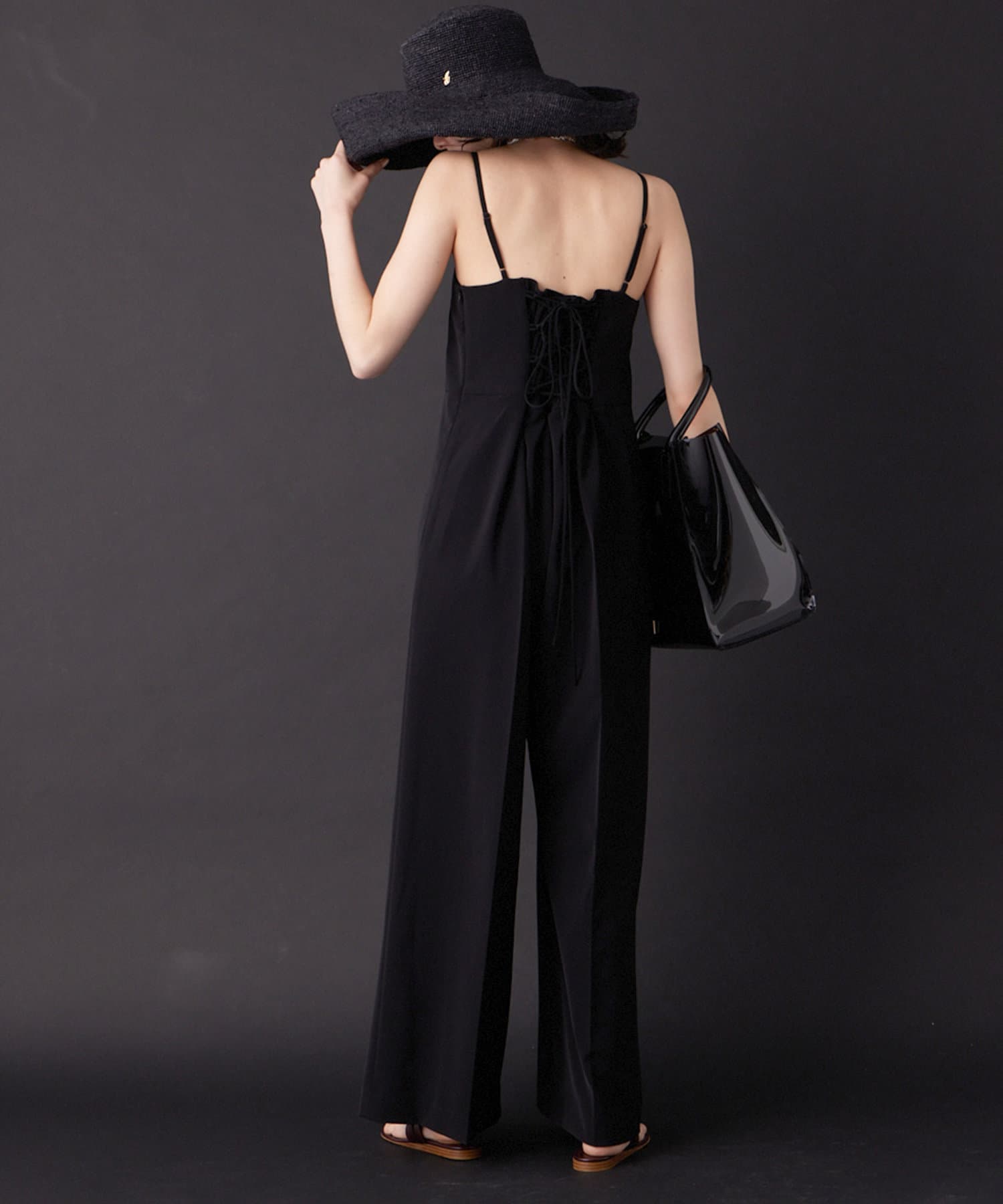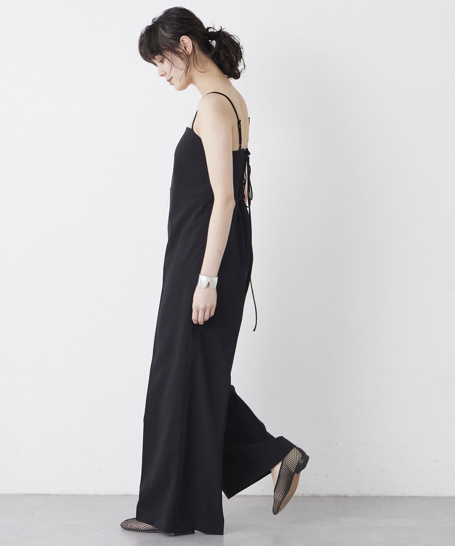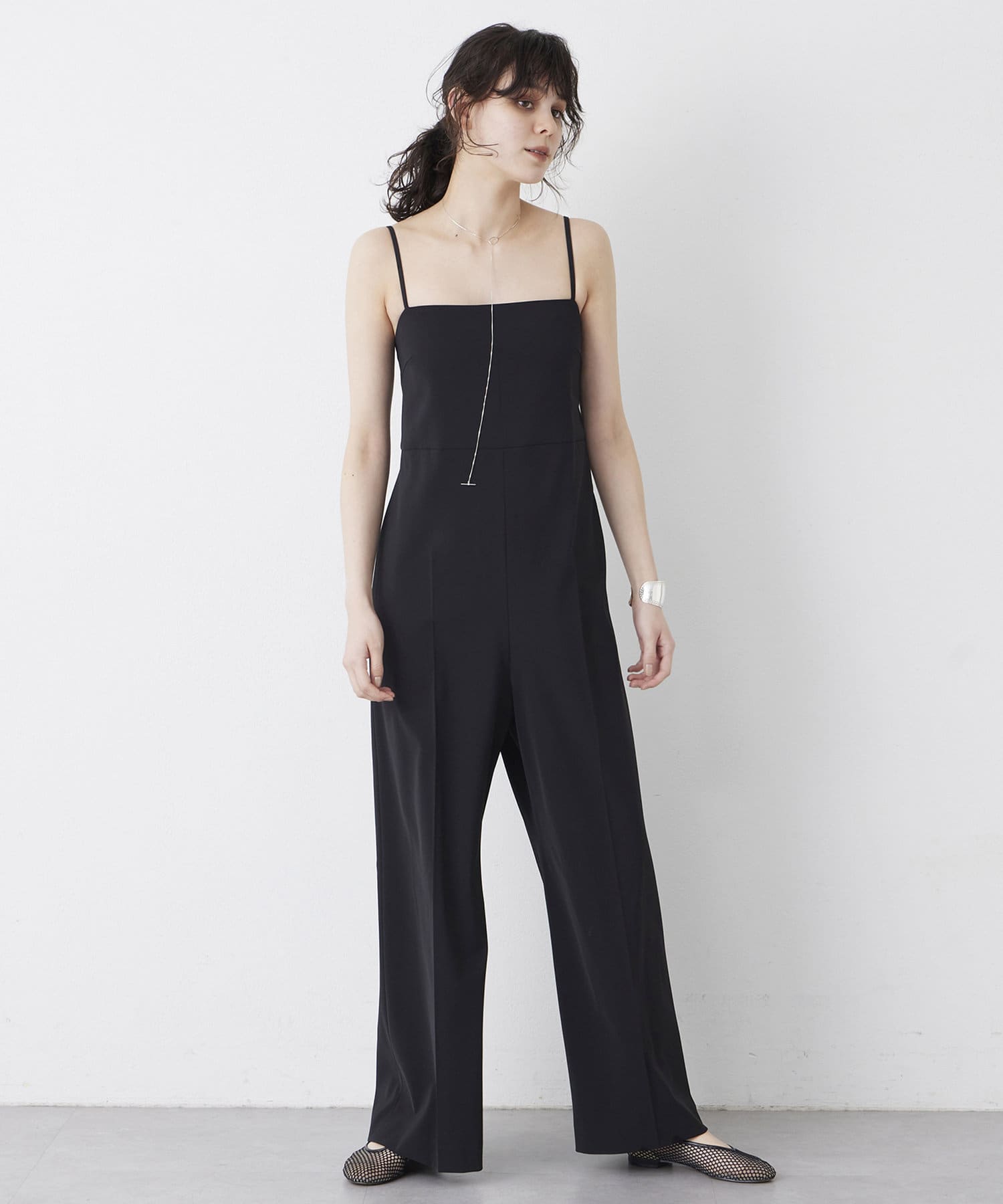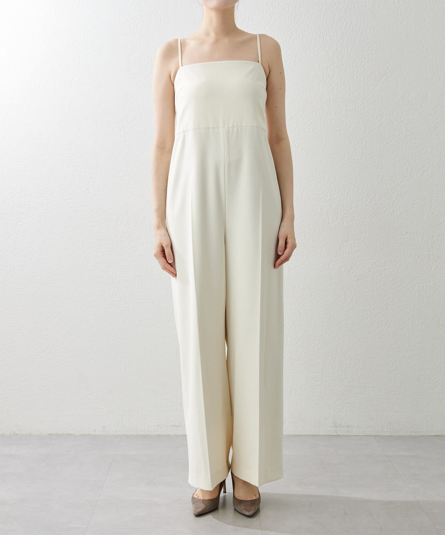 ■コンパクトキャミ+ワイドパンツデザインのシルエットのきれいなオールインワン。
