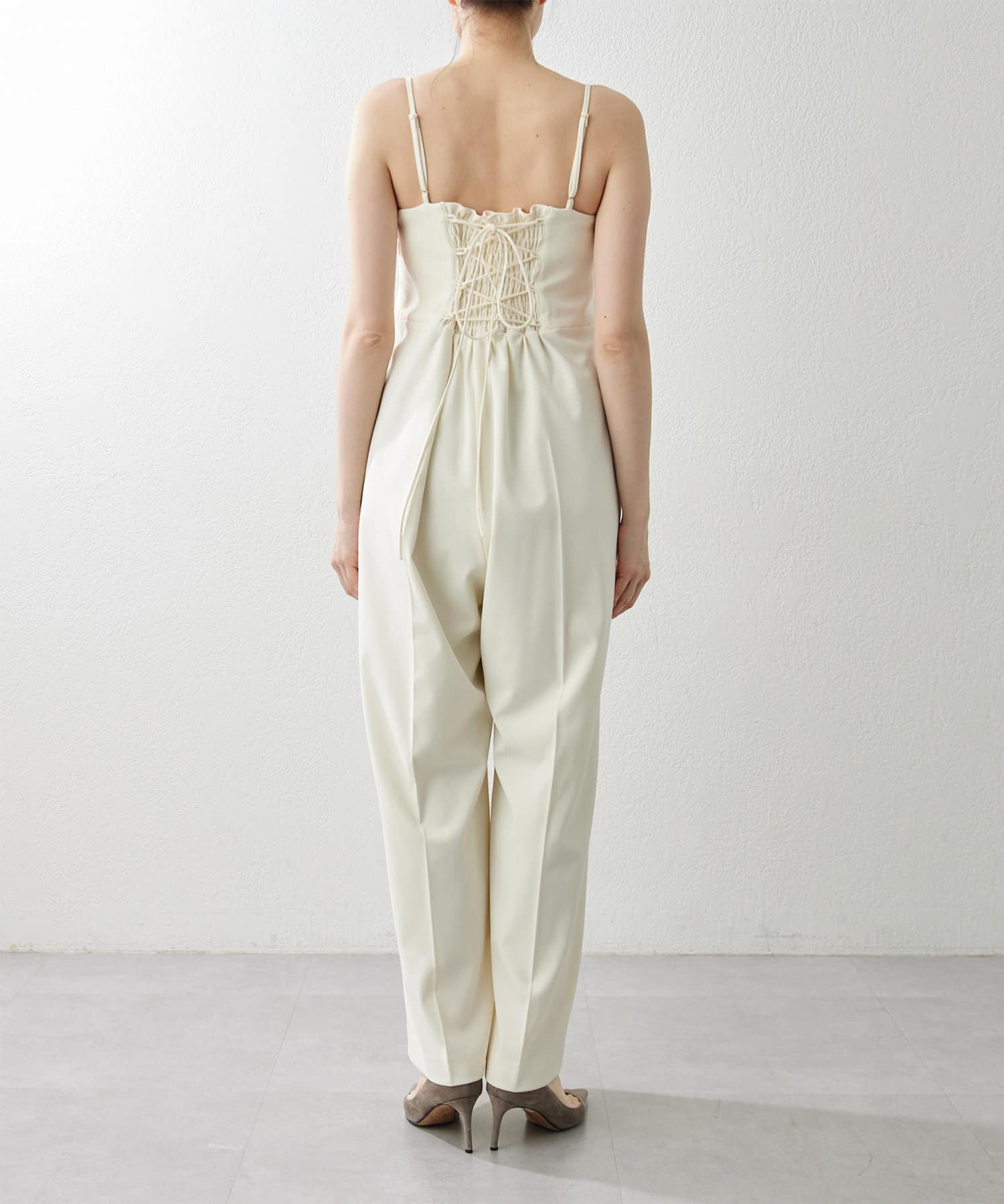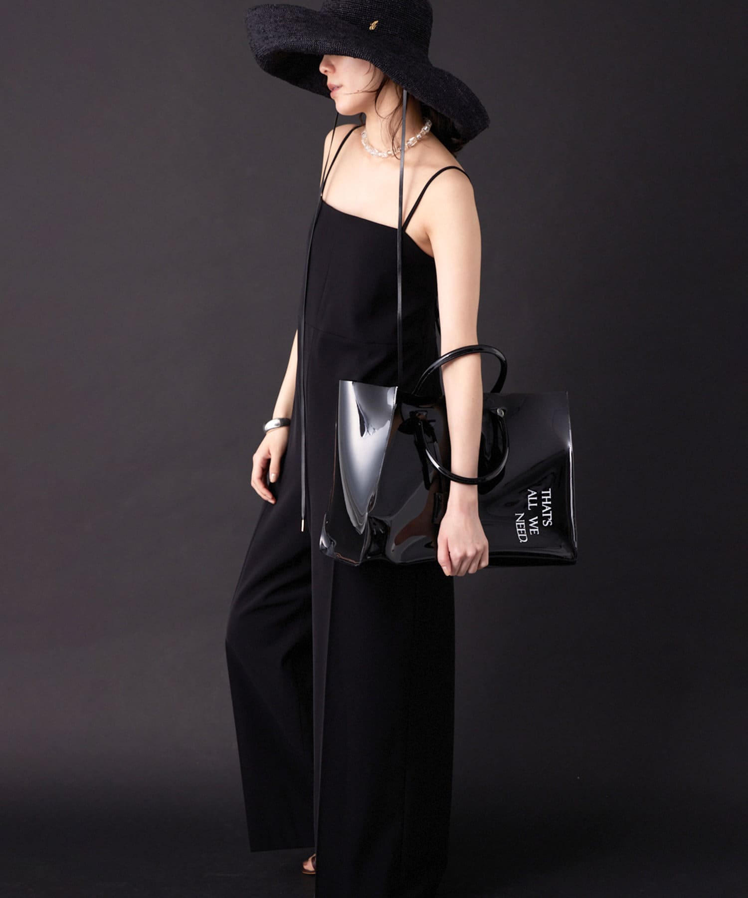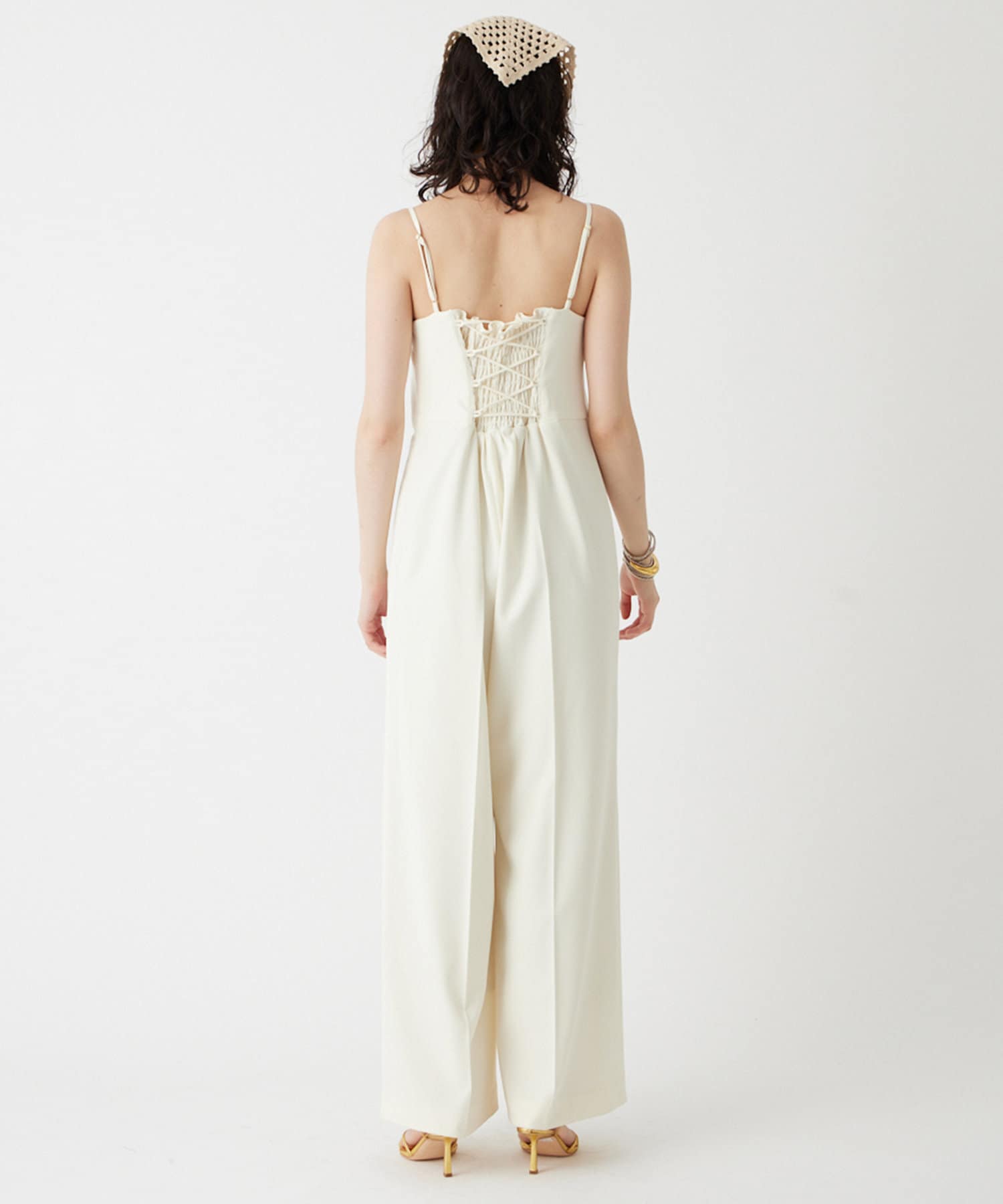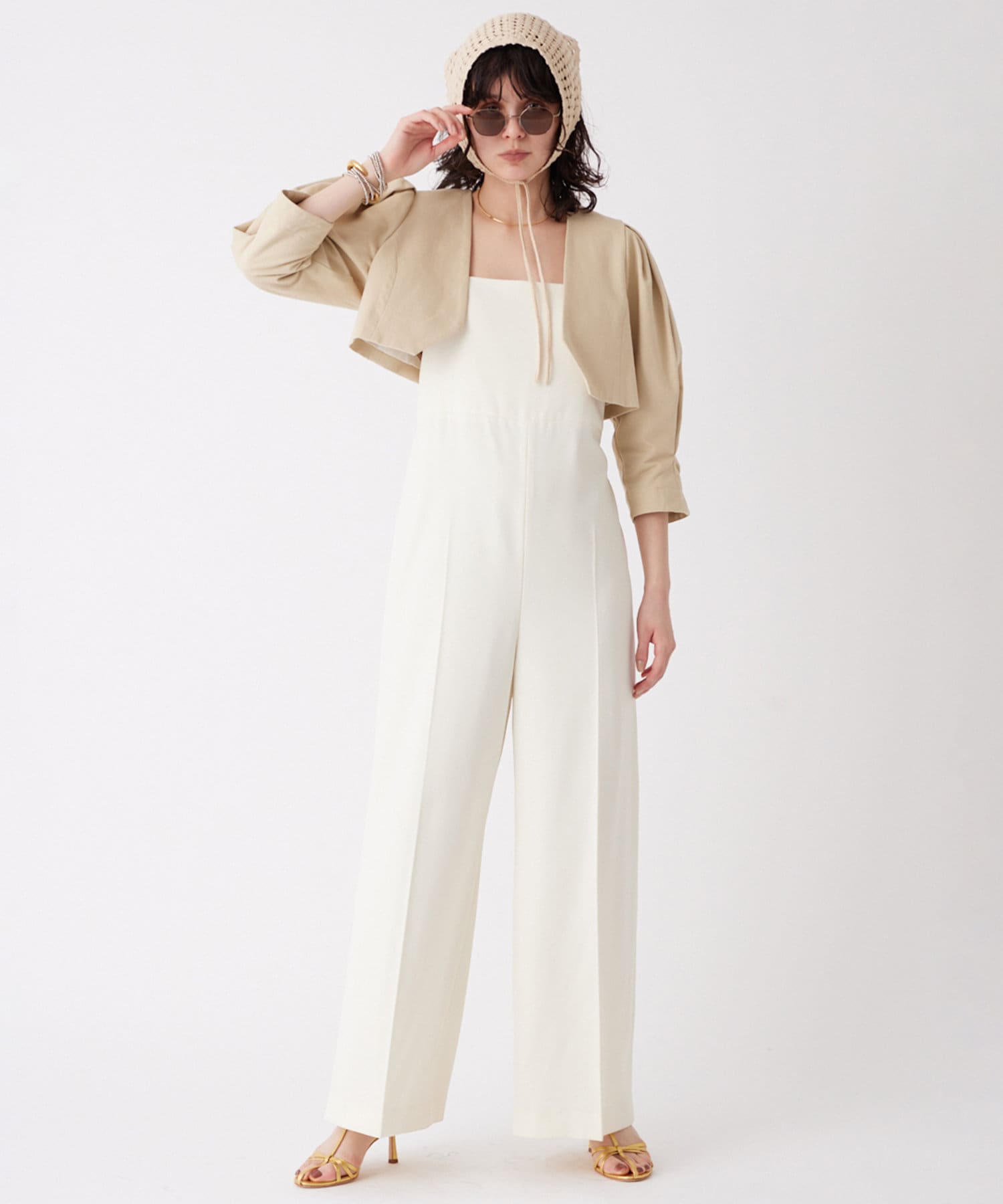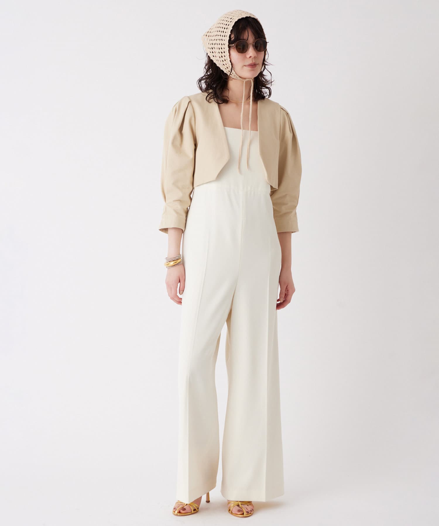 ■コンパクトキャミ+ワイドパンツデザインのシルエットのきれいなオールインワン。