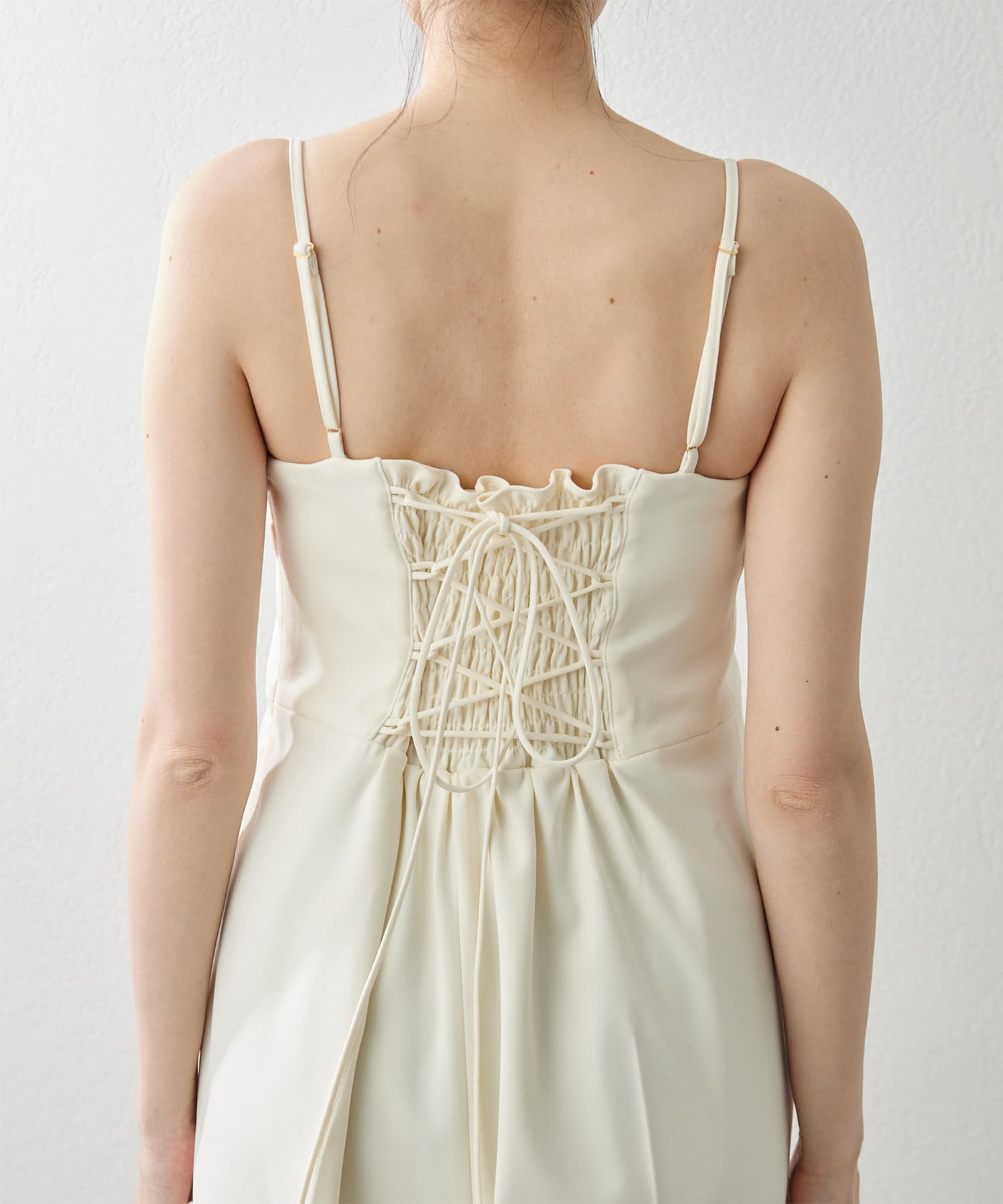 ■背中のレースアップはデザイン性もありつつ、バストのサイズ調節が可能なためどんな体型にもぴったりとフィット。