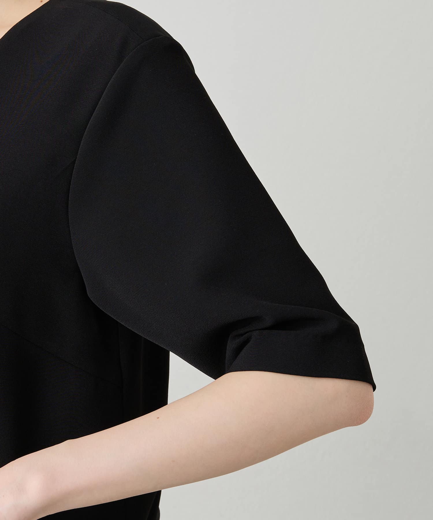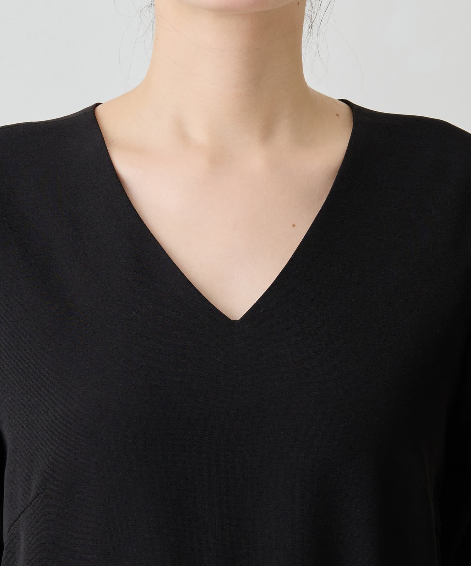 ■デコルテがきれいに見えるVネックや、二の腕が隠れるハーフスリーブなど一枚で着やすいデザインに。