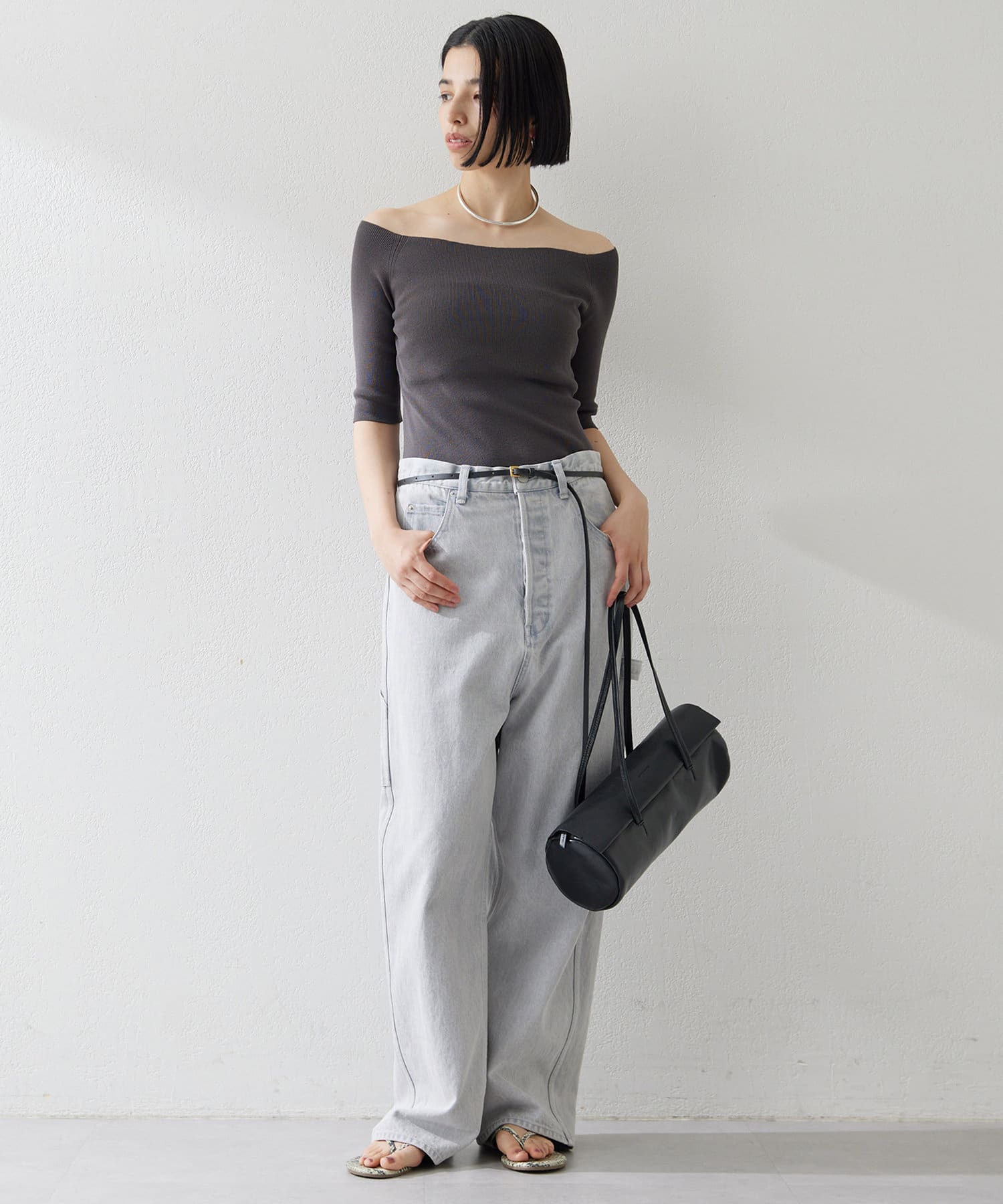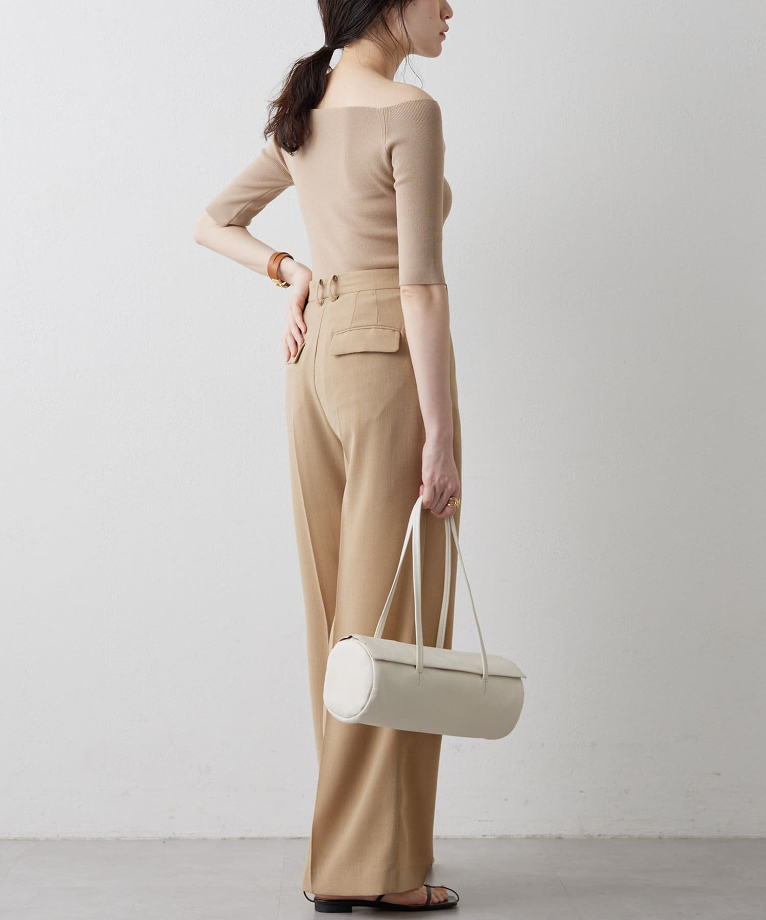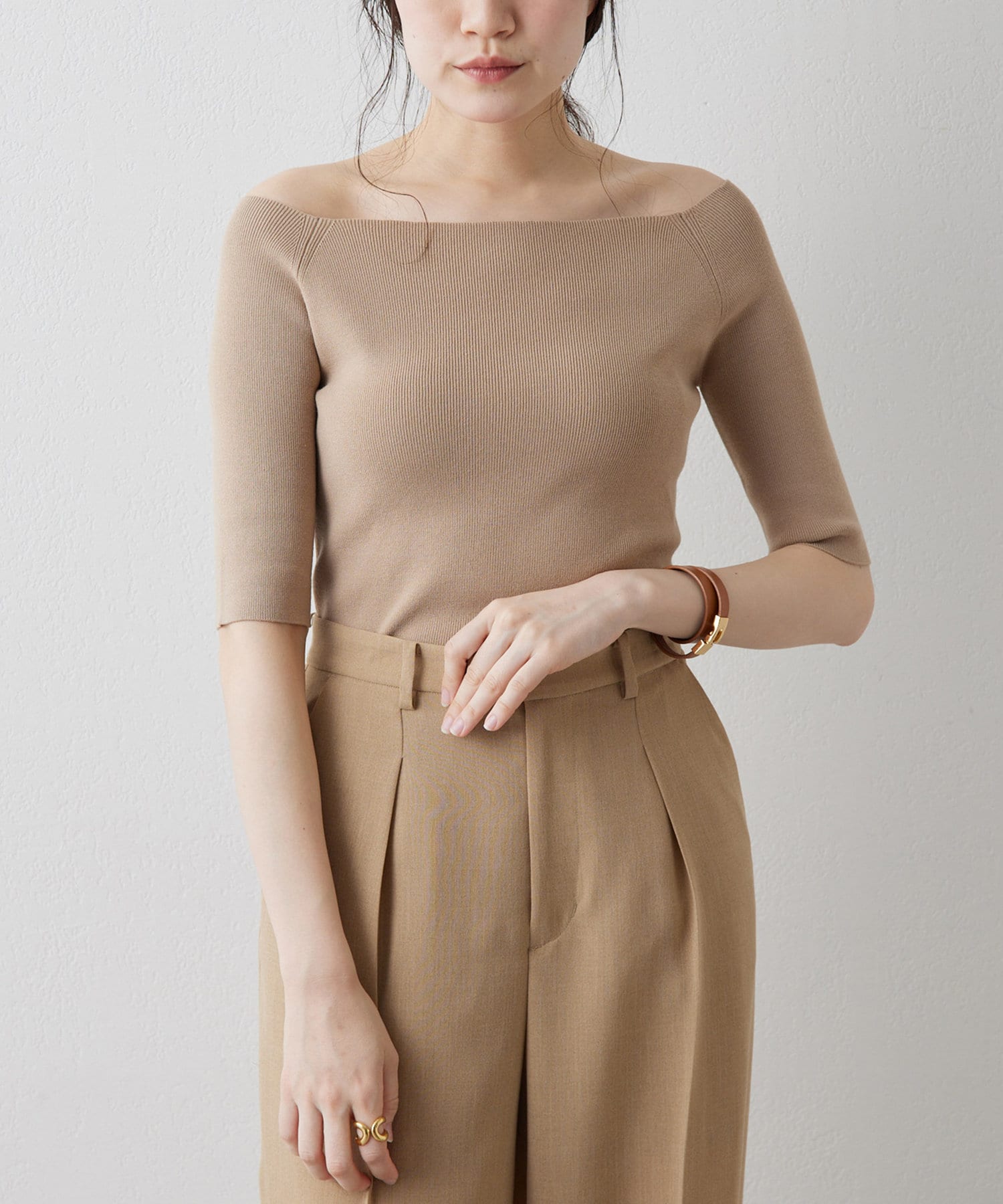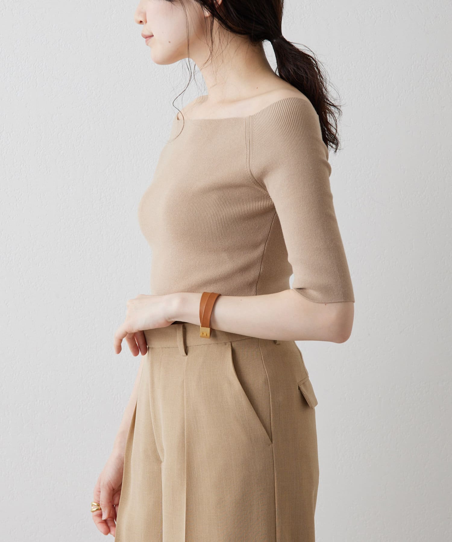 ■ボートネックとしてもオフショルダーとしても楽しめる2way仕様もポイント。