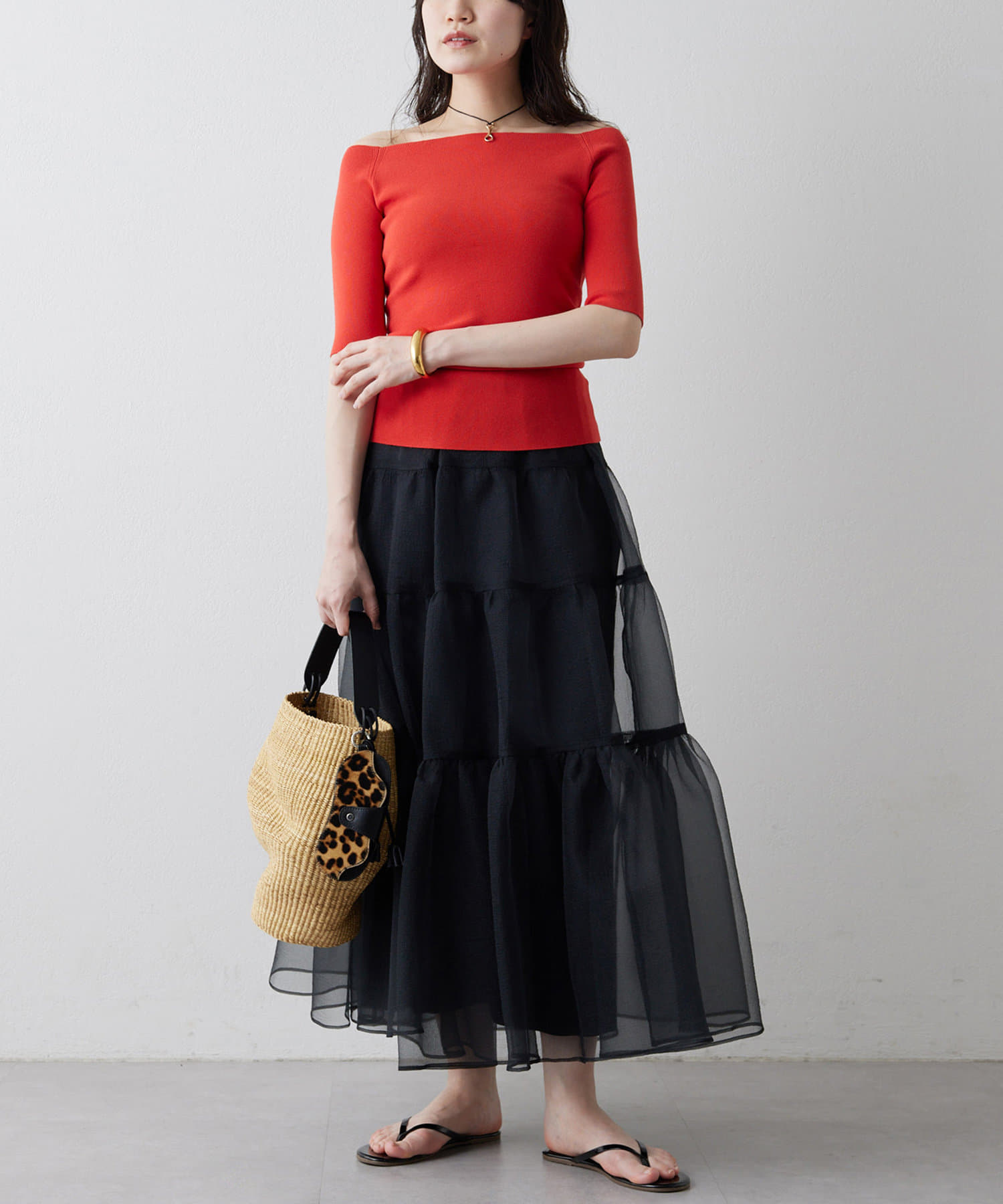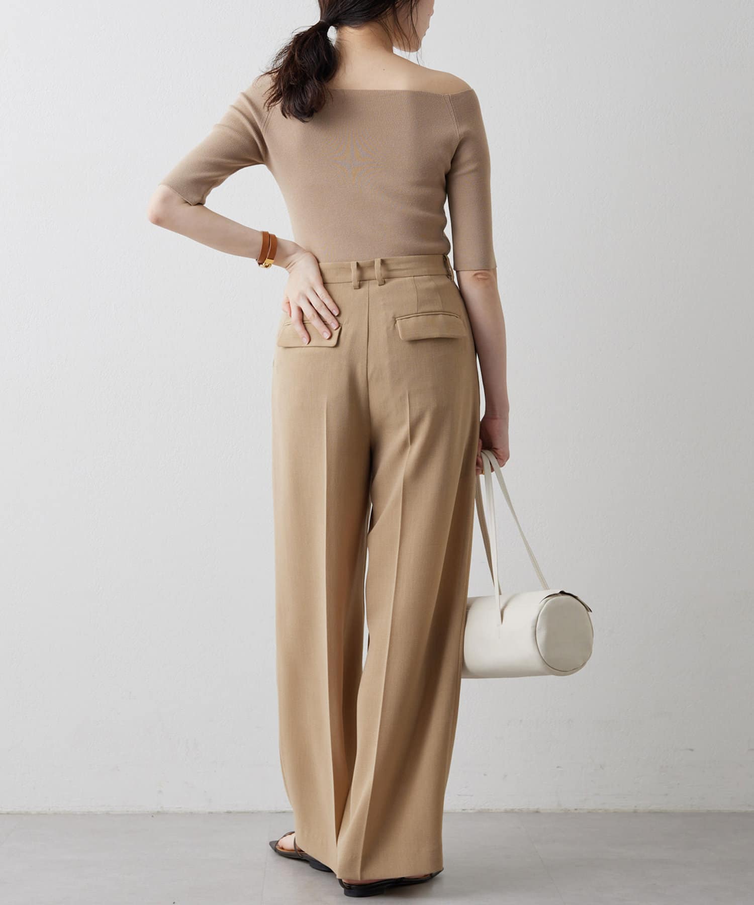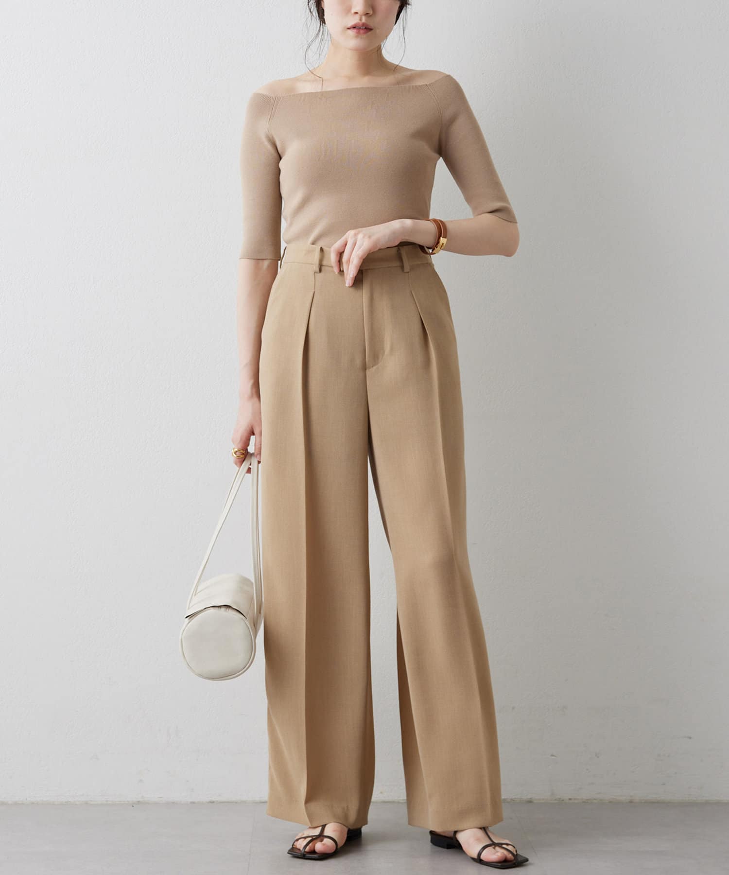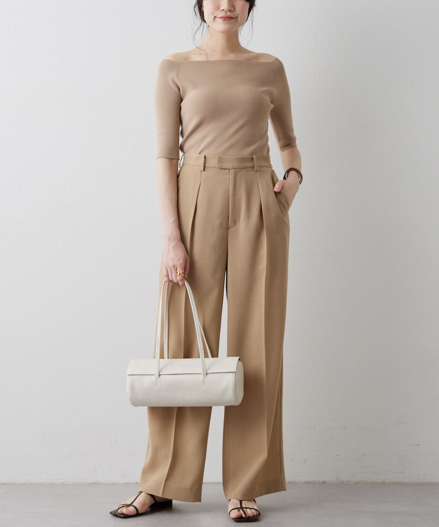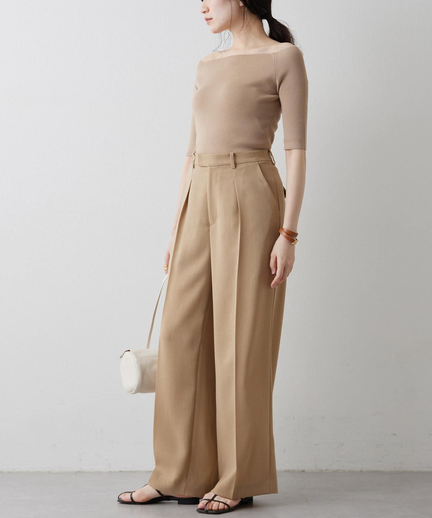 ■ボートネックとしてもオフショルダーとしても楽しめる2way仕様もポイント。