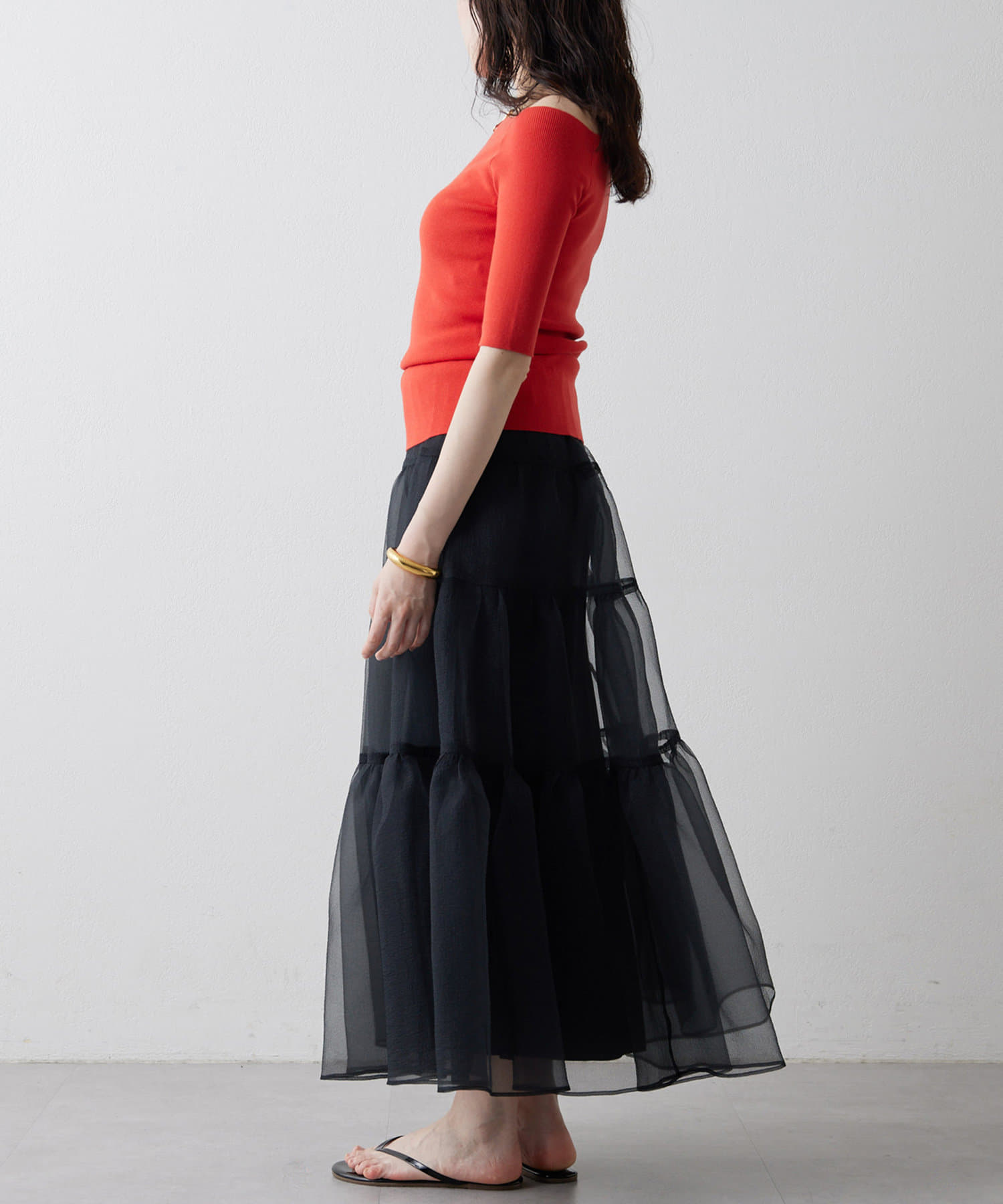 ■ストレッチ性がありフィットしつつも、体のラインを拾いすぎず着やすいのが◎。