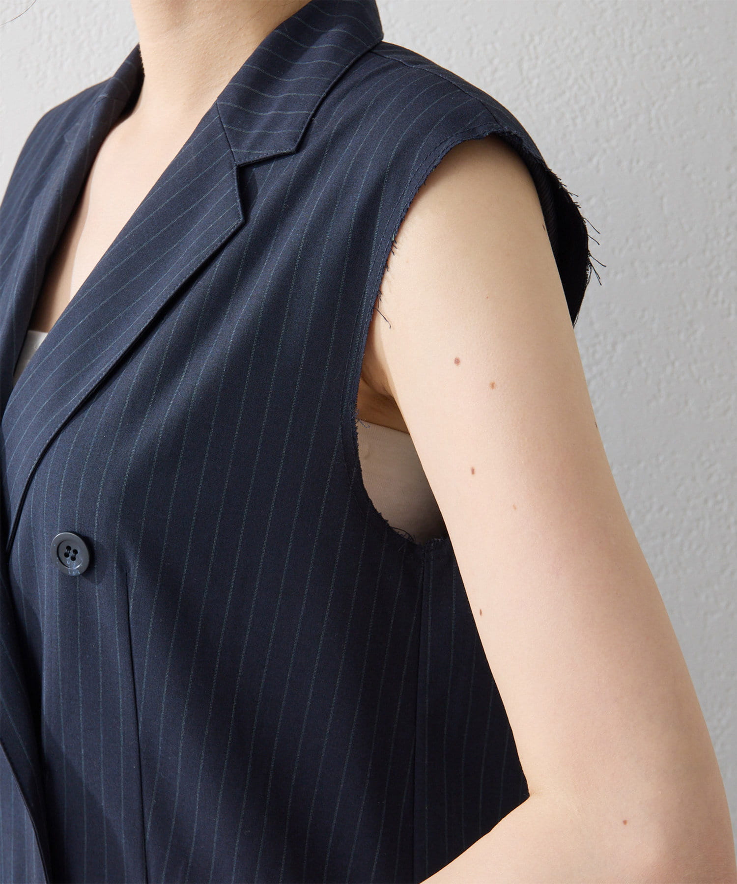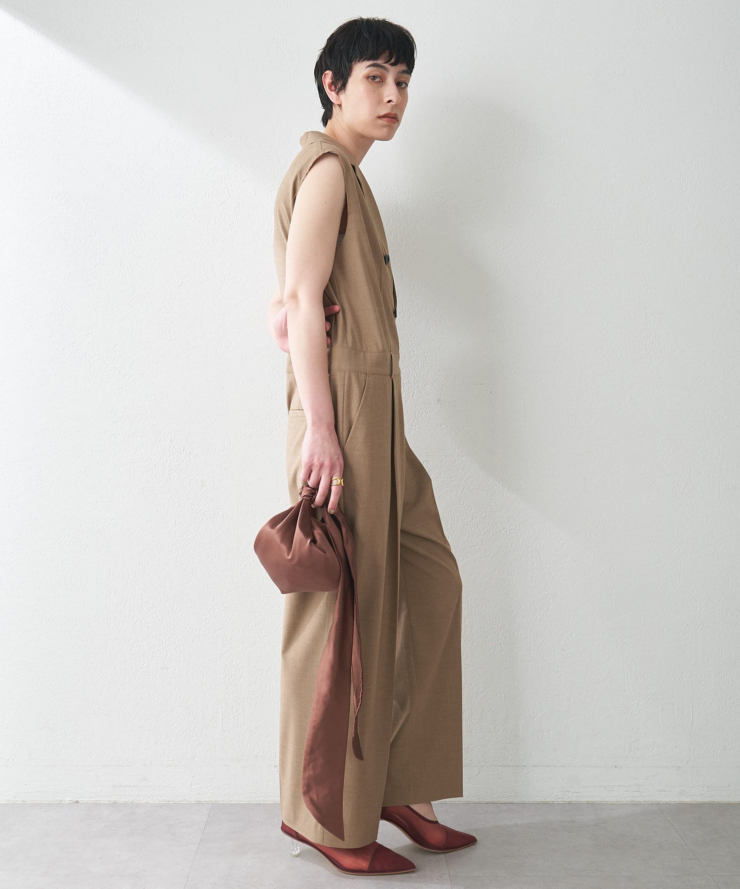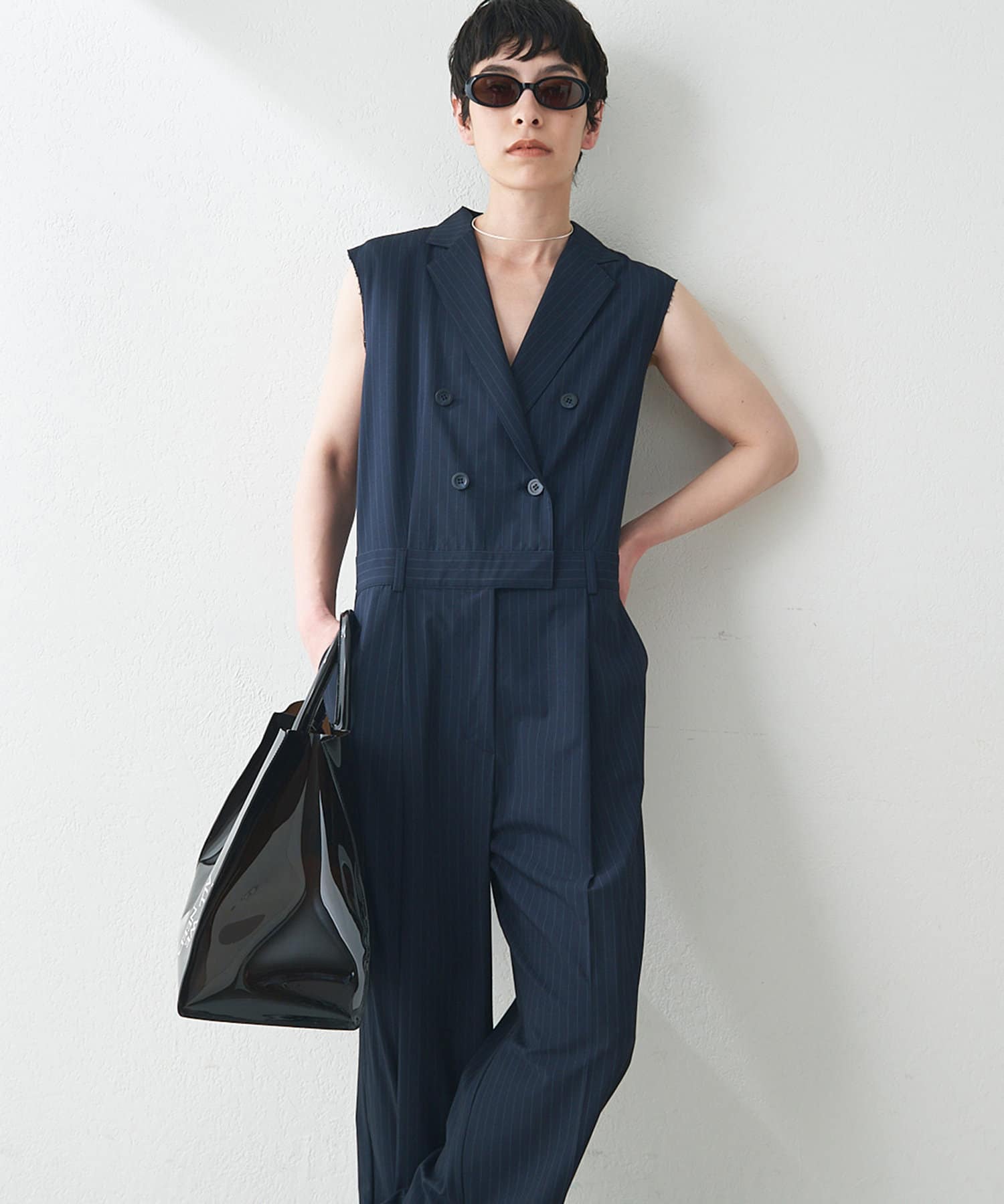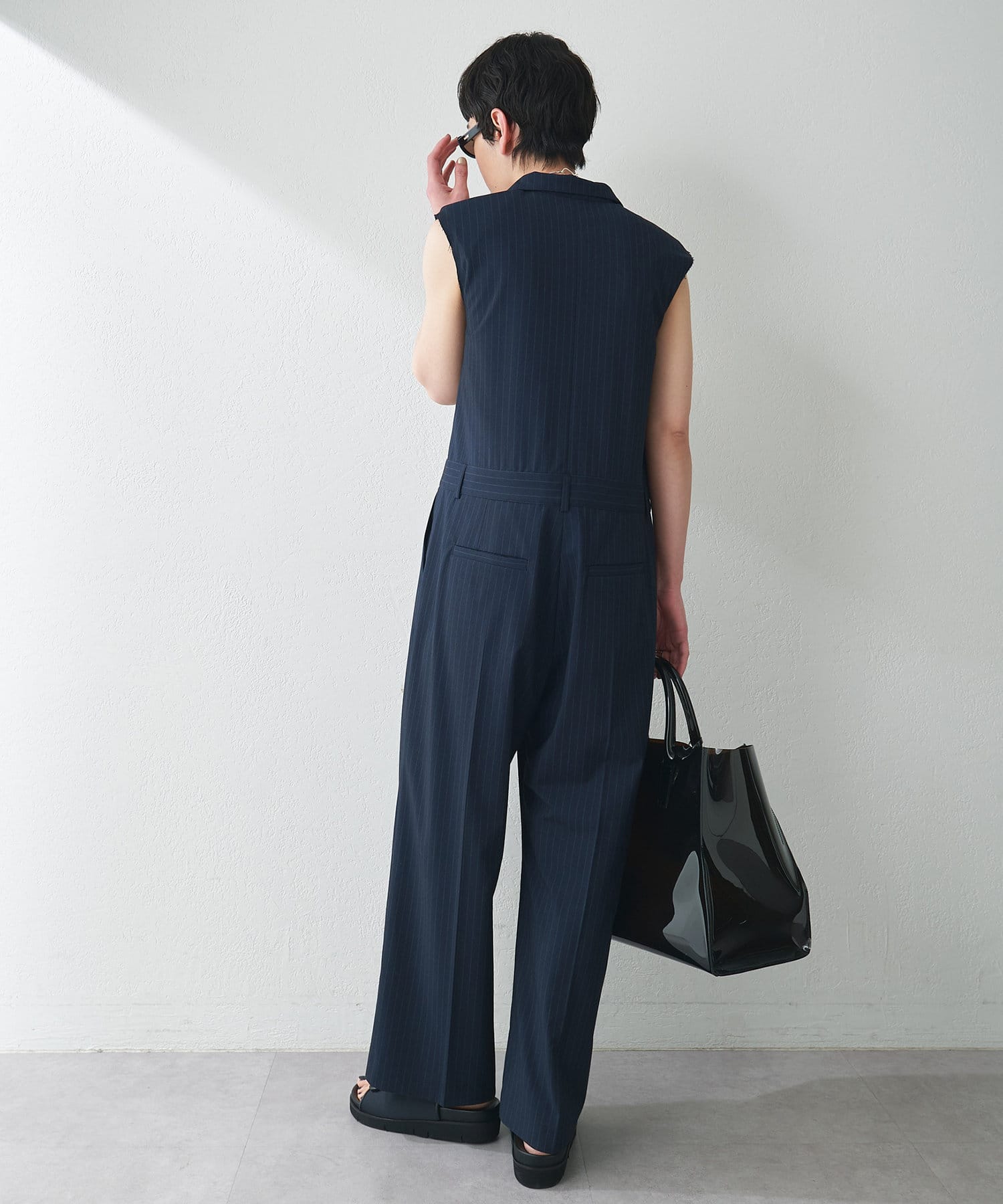 ■人気のテーラーカラージャンプスーツから、素材違いのノースリーブタイプが登場。
