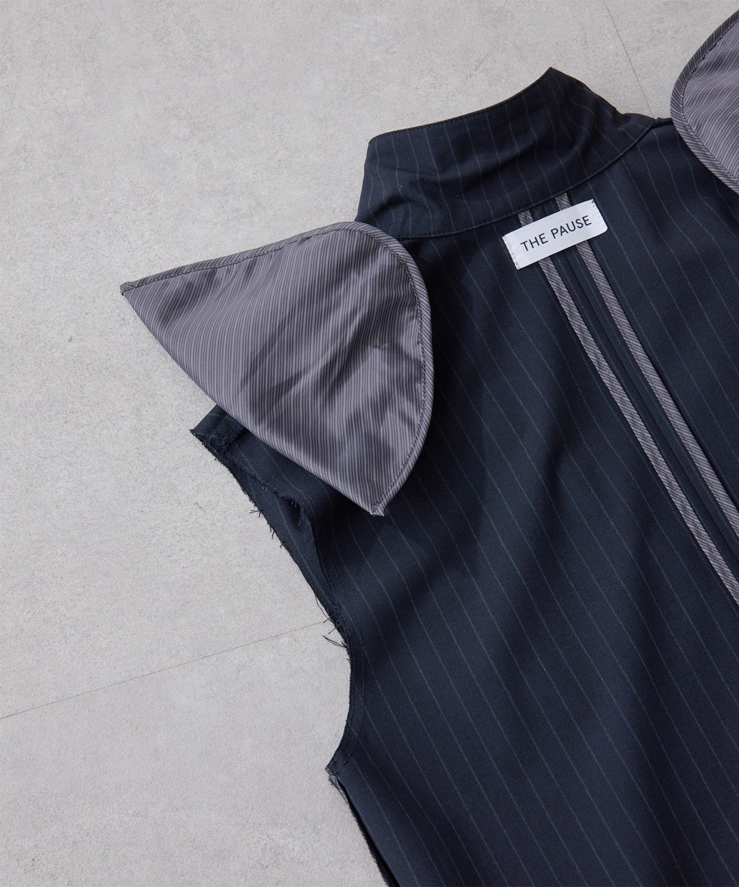 ■肩周りのシルエットがきれいに決まるよう肩パットを入れ、袖口の切りっぱなしデザインもアクセントに。