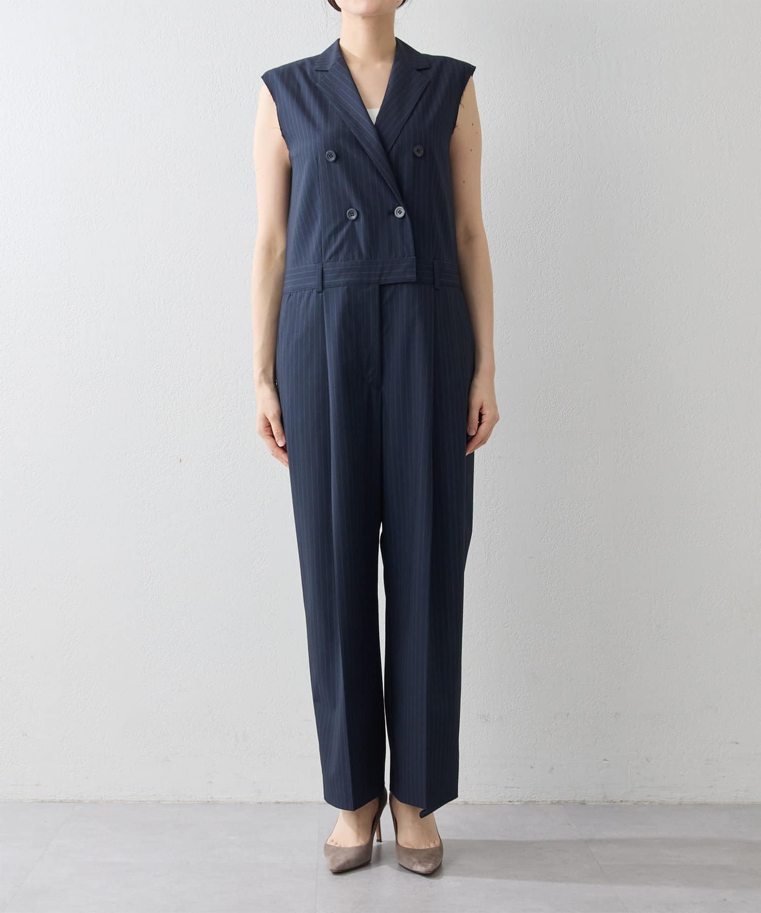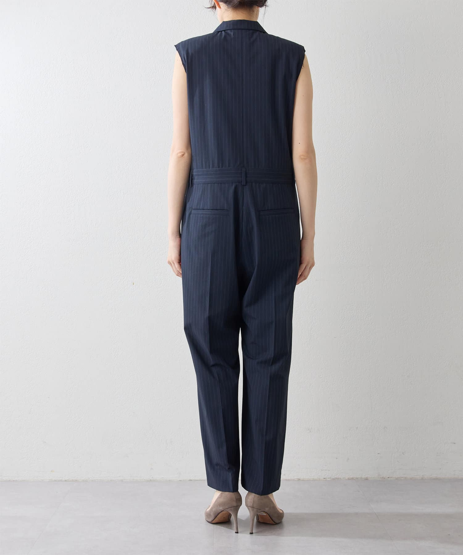 <インフルエンサーコラボ>【THE PAUSE】テーラーカラーノースリーブジャンプスーツ