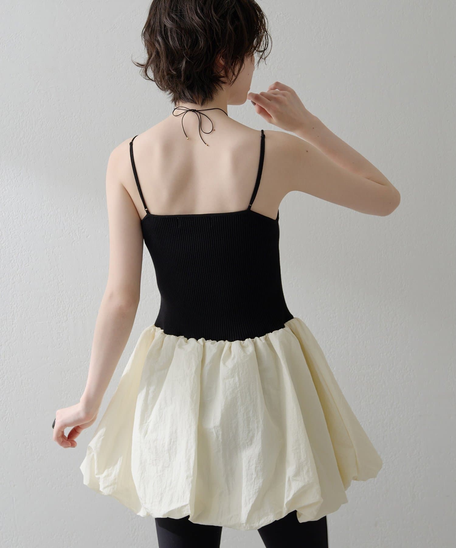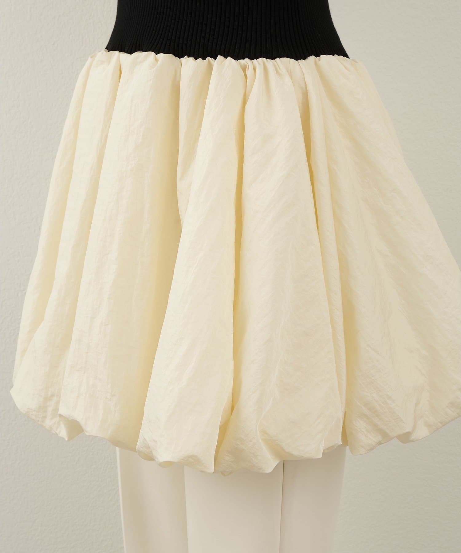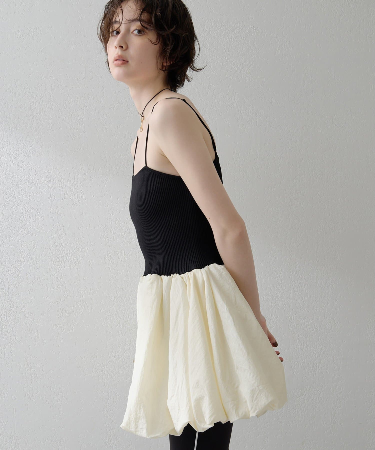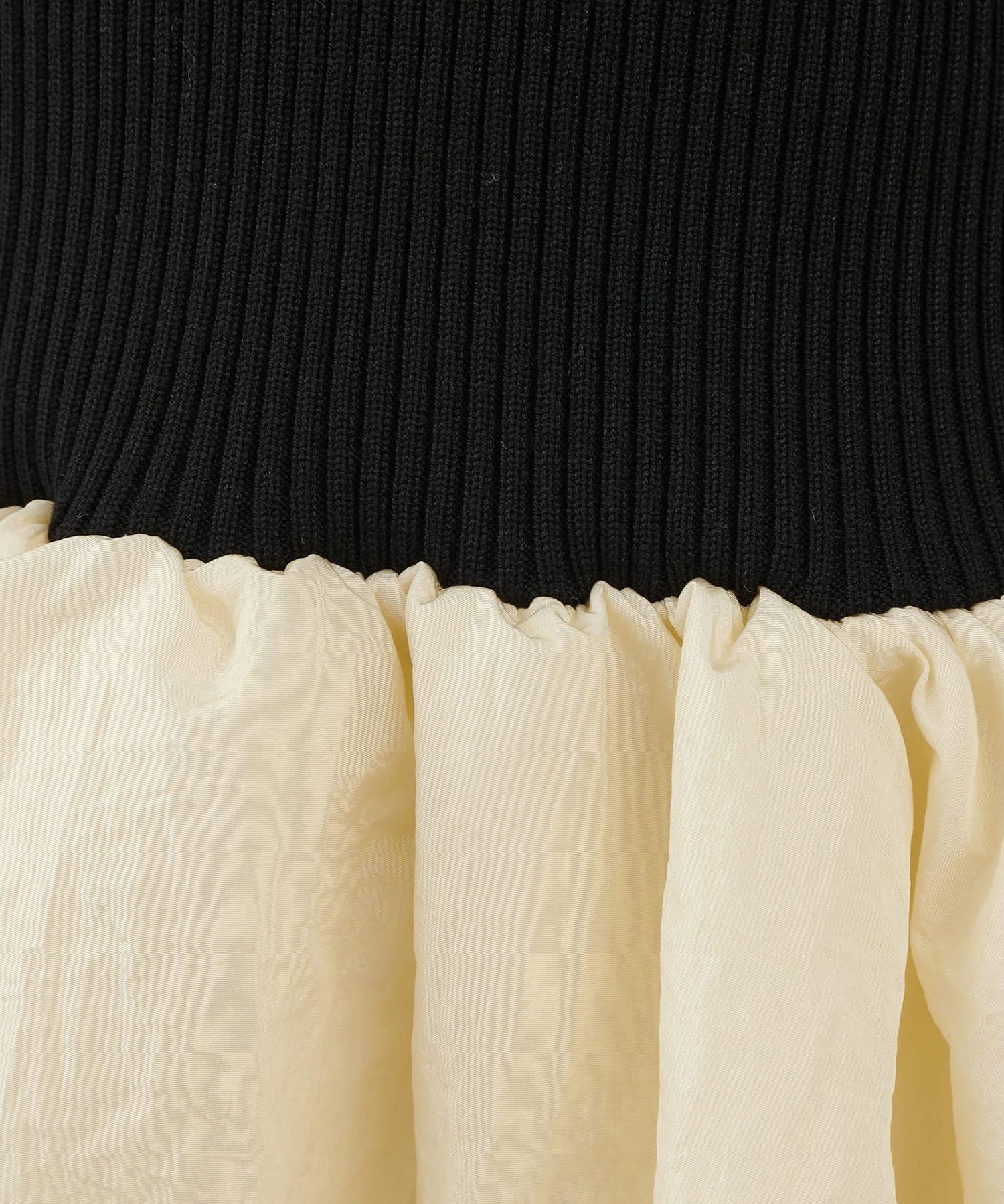 ■ニット部分はタイトに、タフタ部分は裾をバルーン仕様でボリュームを持たせたメリハリのあるデザイン。