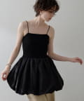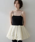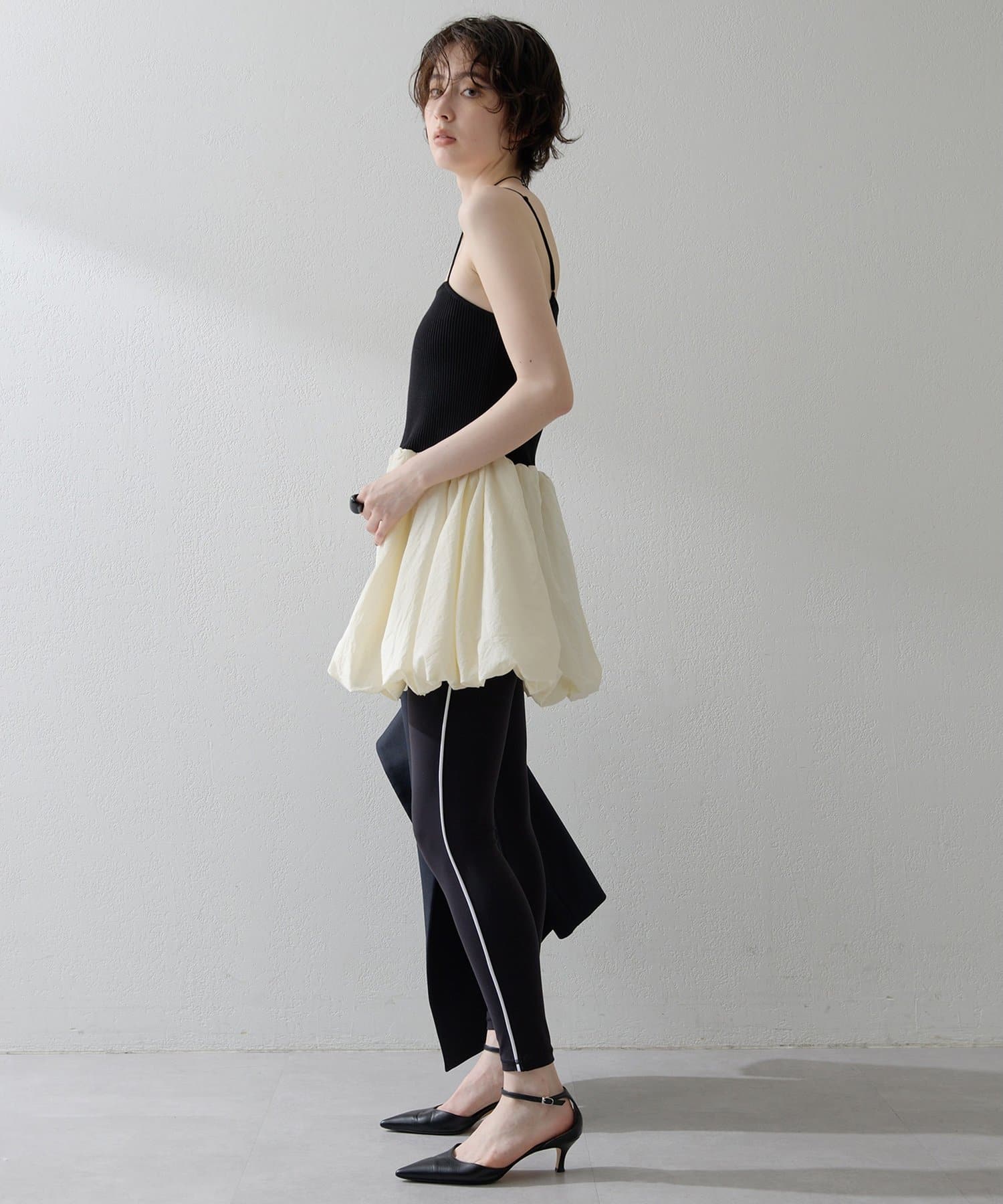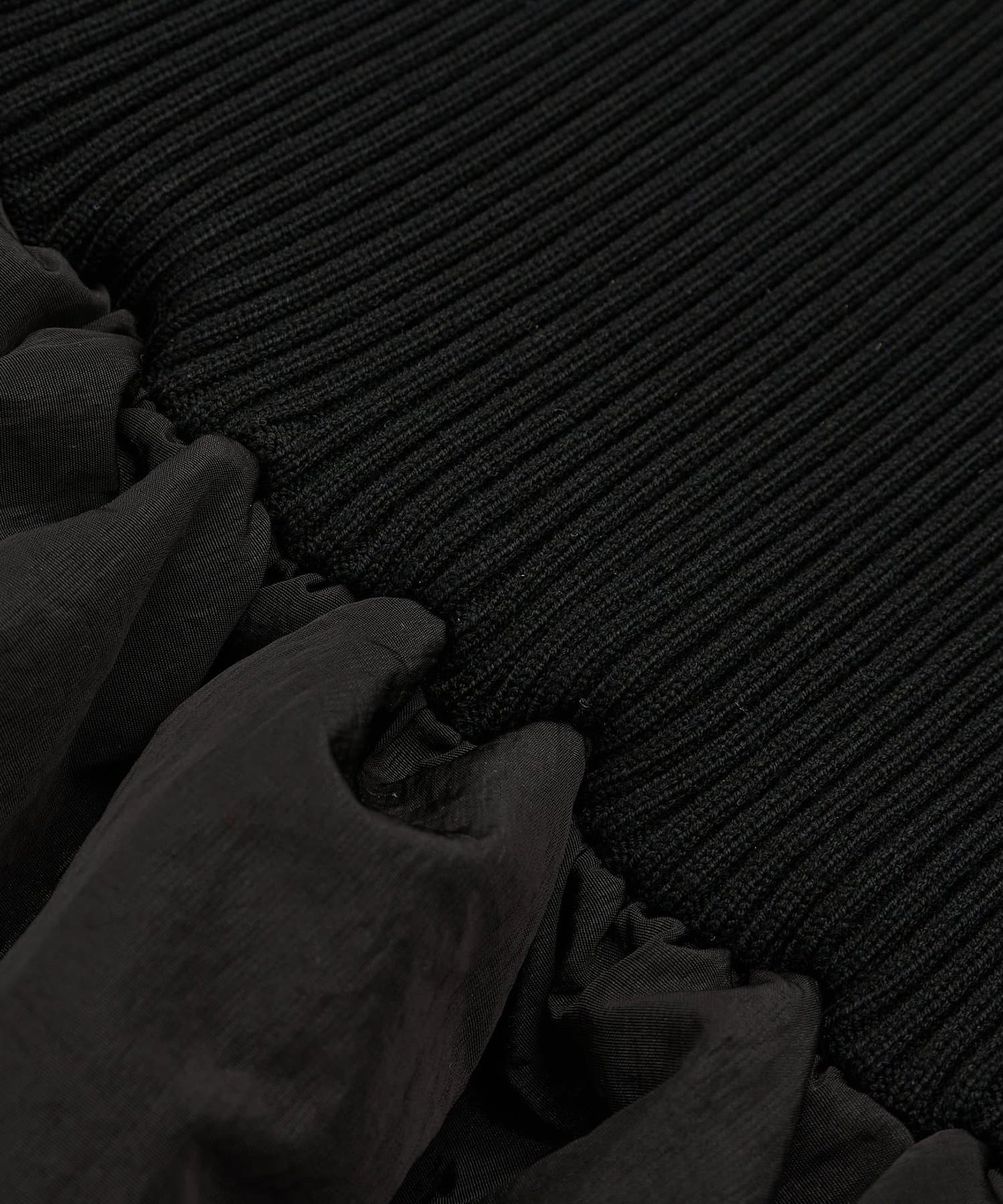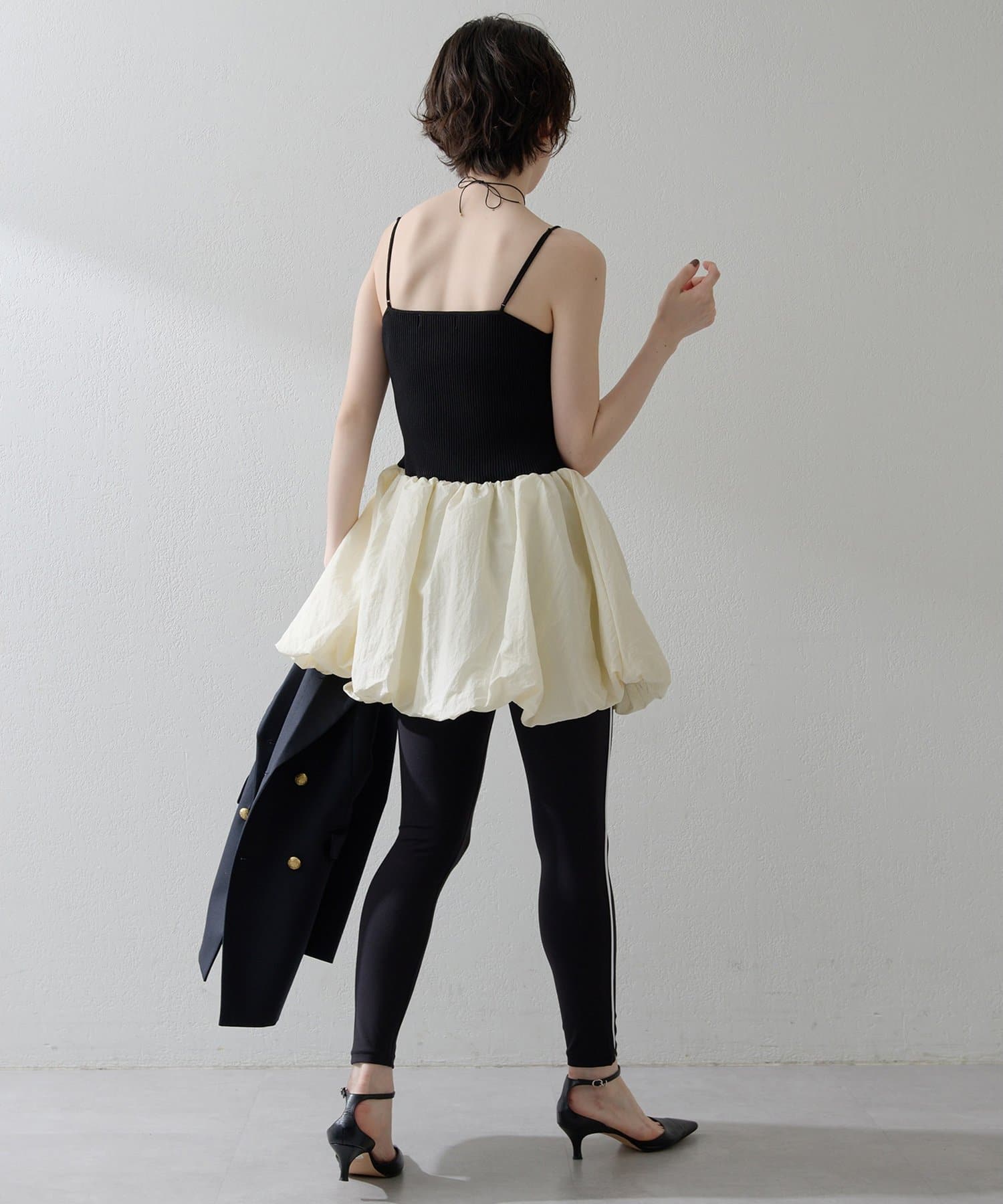 ■ニット部分はタイトに、タフタ部分は裾をバルーン仕様でボリュームを持たせたメリハリのあるデザイン。